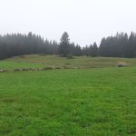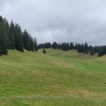 » la pluie du matin n’arrête pas le pèlerin » et nous avons un objectif qui est d’atteindre le Mont Sala où nous pourrons peut-être bénéficier d’un superbe point de vue sur le Mont Blanc et la Suisse.
