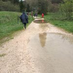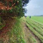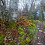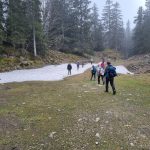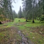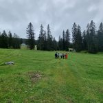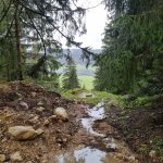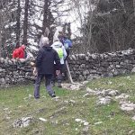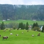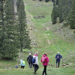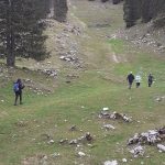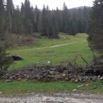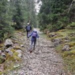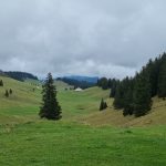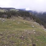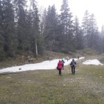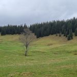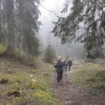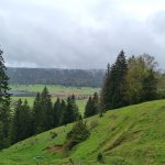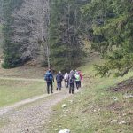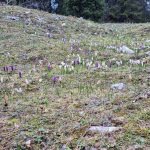 Nous cheminons sur les chemins caillouteux à travers les forêts de sapins, de pâturages d’un vert vif où les crocus en fleur tapissent le sol. La vigilance est de règle pour éviter les chutes car les racines qui sont à fleur de terre sont mouillées et glissantes.