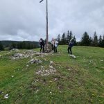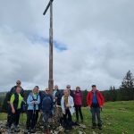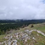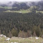 Arrivée au sommet du mont Sala (1510 m), nous avons atteint notre objectif. Un bref coup d’œil sur la vallée nous donne un aperçu sur le paysage mais le brouillard arrive à grands pas et nous incite à quitter les lieux un peu déçus. Rendez-vous une autre fois pour bénéficier de la vue sur la Suisse et les Alpes (c’était en option…)
