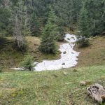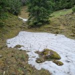 Nous rencontrons encore des plaques de neige et retour en enfance il nous faut marcher dedans, une bataille de neige était tentante mais l’arrivée était encore loin et l’heure du restaurant se rapprochait à grands pas.