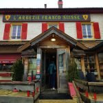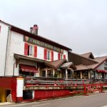 Le repas méridien est partagé au restaurant. Au menu, salade comtoise en entrée, tomme vaudoise poêlée sur lit de saucisse de Morteau, pomme de terre, sauce crème en plat de résistance et soupe de fruits rouges et sorbet en dessert (pour alléger un peu les plats précédents). Petite particularité : le restaurant étant situé à cheval sur la frontière franco-suisse, il valait mieux être en règle avec ses papiers d’identité pour circuler…