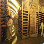 Après le repas nous gagnons le Fort des Rousses pour une visite des caves d’affinage de Jura Flore. Caves voutées uniques au monde qui valent le détour. Les anciens fromagers du groupe en ont eu plein les yeux dans cette cathédrale. 190 000 meules de comté sont chouchoutées entre 12 et 36 mois d’âge, une dégustation plus tard chacun a pu apprécier ce qui convenait le mieux à son palais et pour les non-initiés une bonne dose de parfum unique dans les caves de fromages.