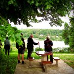 Et pour conclure dans la convivialité les quatre acteurs locaux : Christiane, Philippe, Patrick et Danièle ont eu la délicatesse de nous régaler sur le quai de l’ancienne coopérative laitière de Beauchemin/Saint-Ciergues transformé exceptionnellement en mini estaminet.