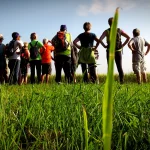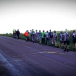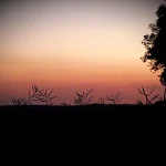 La lune qui se lèvera après minuit ne resplendit pas dans les cieux. Elle n’illumine pas la voûte céleste pour atténuer la noirceur de la nuit. C’est donc dans l’obscurité totale qu’on s’engouffre dans la forêt. Les bruits diurnes s’estompent et la moindre sonorité s’amplifie. Tout prend une autre dimension. Les repères s’en vont. Sans lampe, nous évoluons sereinement d’un pas apaisé. Nous marchons avec les subtilités de la nuit et déjouons les contraintes liées à l’obscurité. On se suit de très près, à petit pas, en file indienne. Parfois on se tient par la main. Tous nos sens sont en éveil. Dans les ténèbres les flaques d’eau résiduelles des dernières pluies sont comme des profonds miroirs qui reflètent la silhouette des arbres. Le tapis d’étoiles dans les cieux accepte de porter tous nos vœux à destination.