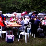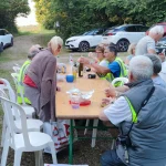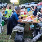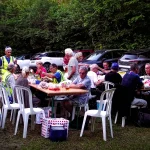 À 18 h 30 une première étape est lancée en direction du Bois des Pères. Après un périple de 6,5 Km nous rejoignons le point de départ pour partager en commun un pique-nique tiré du sac. C’est un instant très convivial et gustatif qui permet à chacun de partager ses spécialités apéritives et culinaires originales.