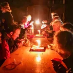 Il est 24 heures. L’astre blanc n’a pas éclairé notre route, mais nous avons retrouvé la cabane de chasse ! Notre cinquième sens est mis en alerte par l’odeur subtile et alléchante de la soupe à l’oignon. Gardée au frais depuis le 18 juin elle n’est que meilleure réchauffée. À la lueur des chandelles la dégustation ne se fait pas attendre. Les noctambules réunis autour des tables sont radieux d’avoir vécu cette expérience conviviale inoubliable.