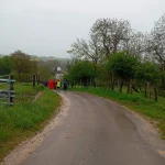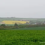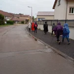 Notre parcours nous entraine au travers de la plaine entre les deux communes, de grandes surfaces jaunes de colza en fleur compensent du manque de soleil de ce jour. La pluie nous tient compagnie tout au long de notre rando, même si celle-ci nous perturbe quelque peu, elle fait le bonheur des agriculteurs qui attendait celle-ci avec impatience.