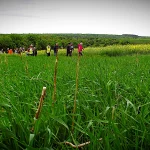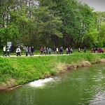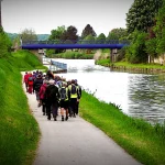 35 marcheurs se rassemblent sur le port du canal à Rolampont pour entreprendre une longue marche de 15 Km.
