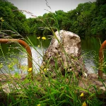 Nous arrivons dans le parc du château de Moiron agrémenté d’un grand étang. La paix qui règne dans cet écrin de verdure nous incite à garder le silence et à contempler le paysage qui se reflète dans le plan d’eau.