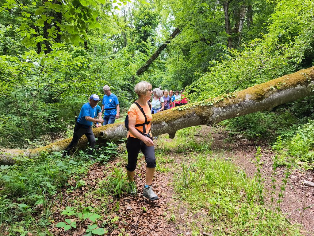 Notre parcours est particulièrement accidenté aujourd’hui. Une longue descente nous permet d’emprunter le GR 7 pour rejoindre la route forestière d’Allofroy. Mais à peine en bas, il faut déjà remonter par la route forestière de Dijon.