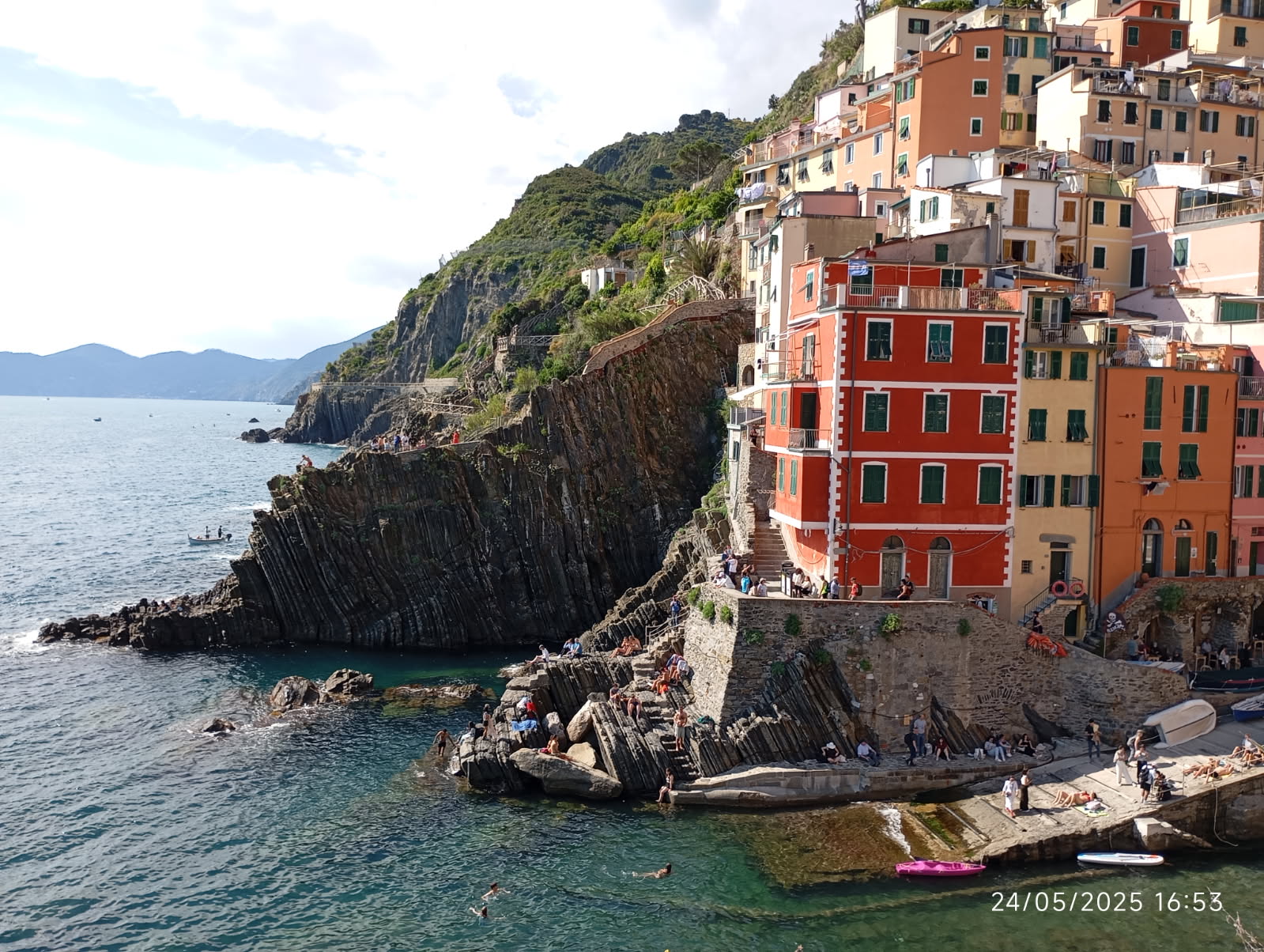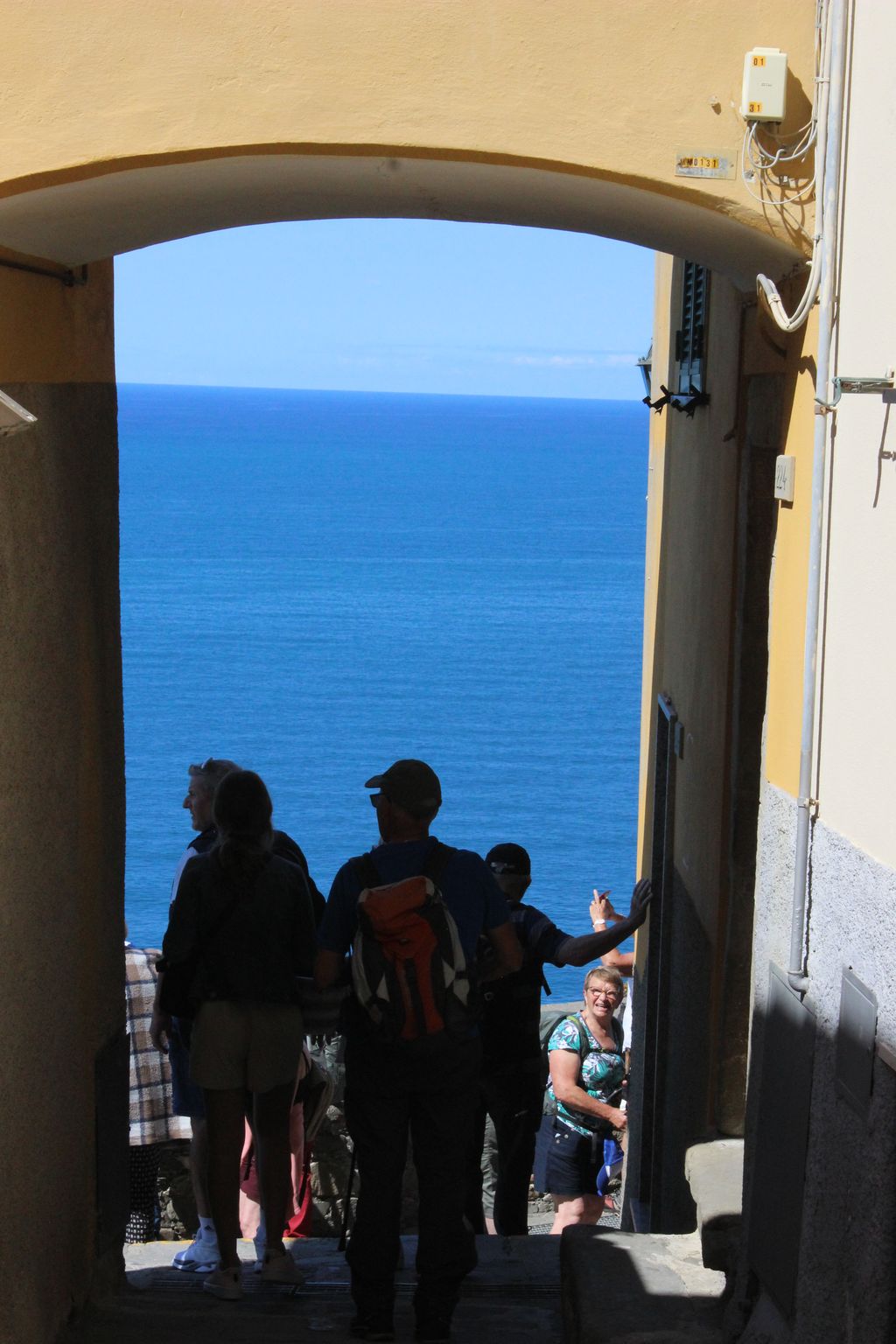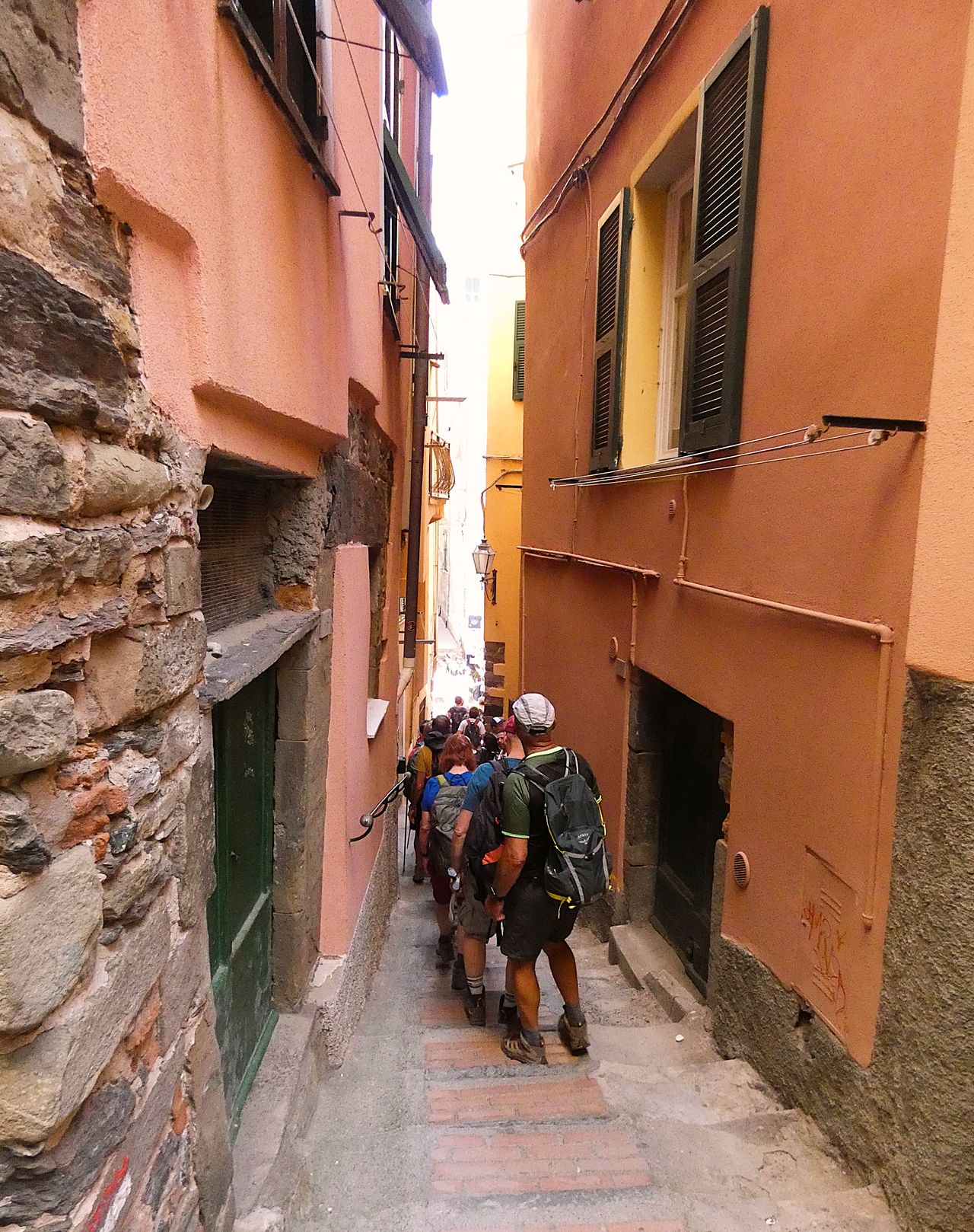 Notre point de départ de ce jour est Romaggiore, village de pécheurs construit au 8eme siècle par les Génois. Petit village niché dans une calanque. Les maisons empilées en cascade, collées les unes aux autres nous laissent sans voix. Toutes les maisons sont colorées de ton pastel (ocre, rouge, jaune et rose) et son origine permettait aux pécheurs de reconnaitre plus facilement leur maison lorsqu’ils étaient en mer.