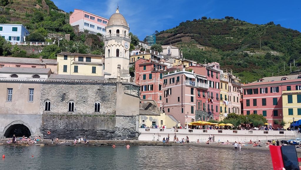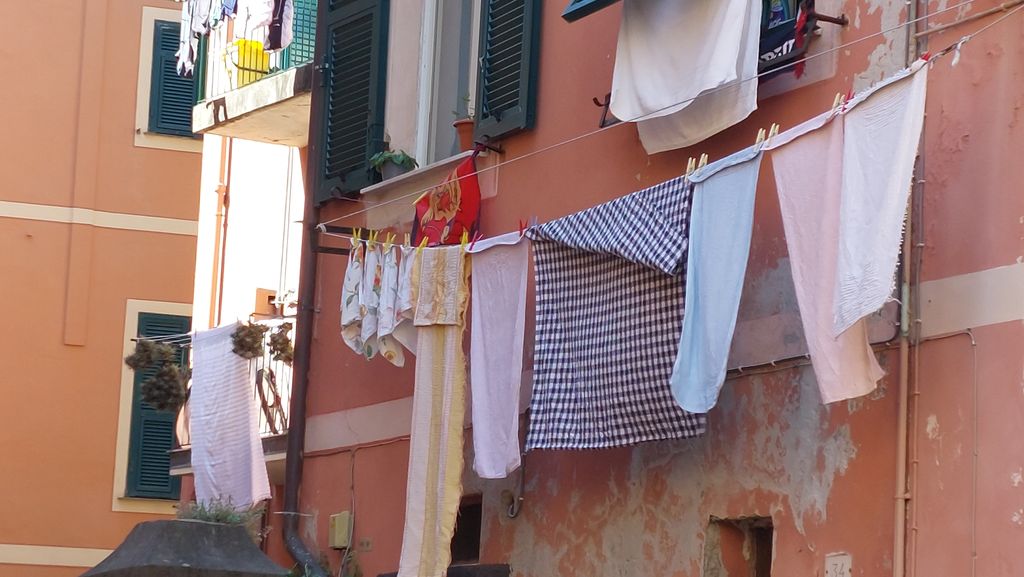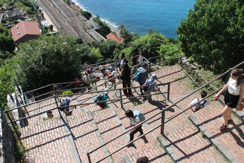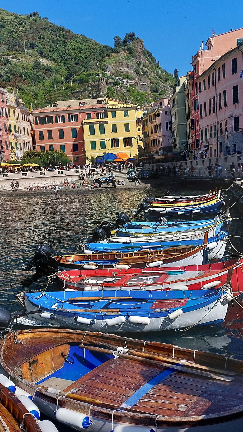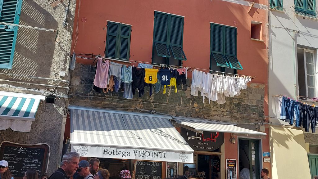 Notre point de départ de ce jour est Romaggiore, village de pécheurs construit au 8eme siècle par les Génois. Petit village niché dans une calanque. Les maisons empilées en cascade, collées les unes aux autres nous laissent sans voix. Toutes les maisons sont colorées de ton pastel (ocre, rouge, jaune et rose) et son origine permettait aux pécheurs de reconnaitre plus facilement leur maison lorsqu’ils étaient en mer.