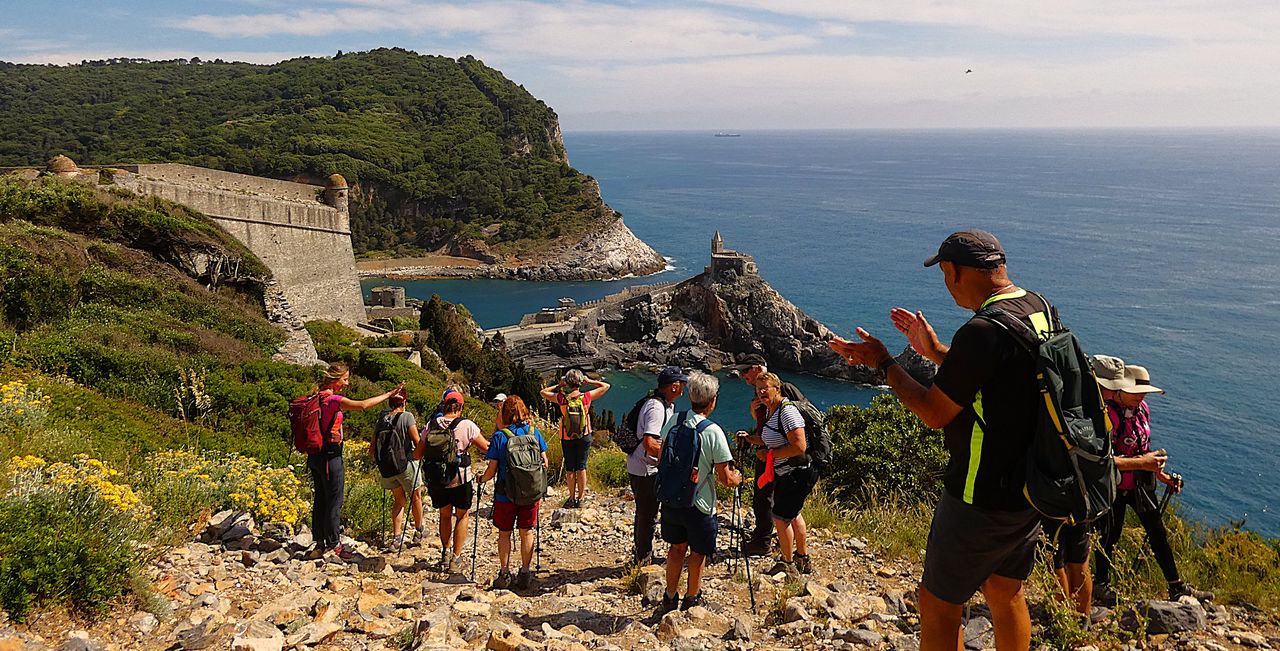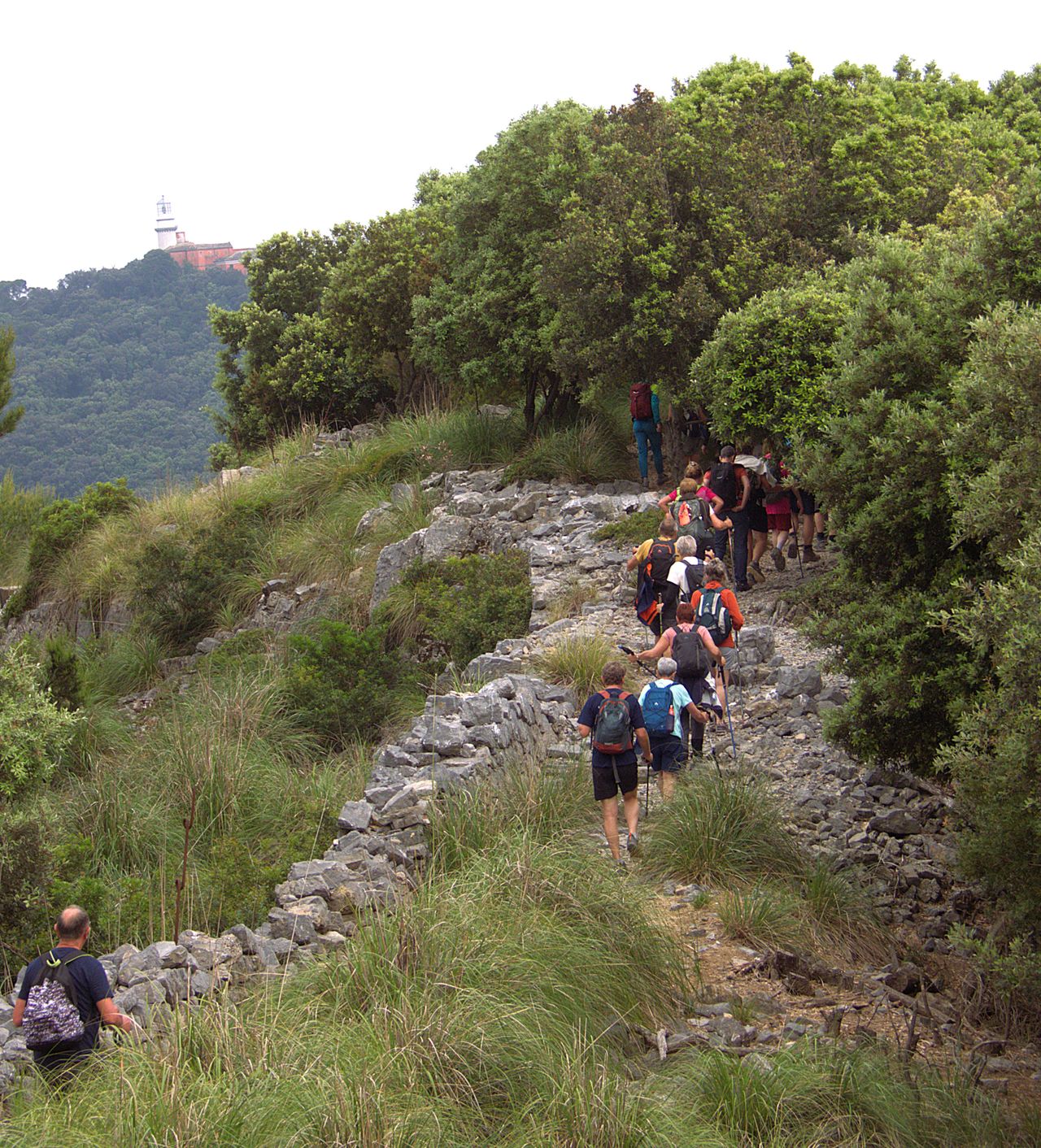Notre point de départ est en direction de La Spézia où nous prenons le bateau pour aller randonner sur l’ile de Palméria située en mer de Ligurie à l’extrémité occidentale du golfe de La Spézia. Cette ile faisait partie de la défense de La Spézia avec des anciens ouvrages militaires, dont un fort qui est toujours occupé par les militaires et un troupeau de chèvres. Celles-ci sont habituées au tourisme et emboitent le pas aux randonneurs pour bénéficier de quelques aliments et font leur show sur les tables de piquenique.