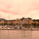 La carte postale comme on en rêve : la mer, les maisons colorées dans un espace réduit et en fond de tableau la montagne.