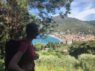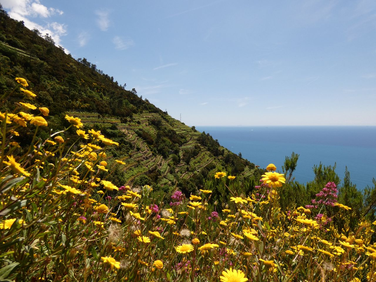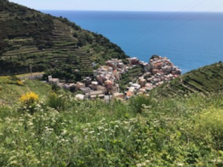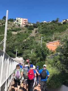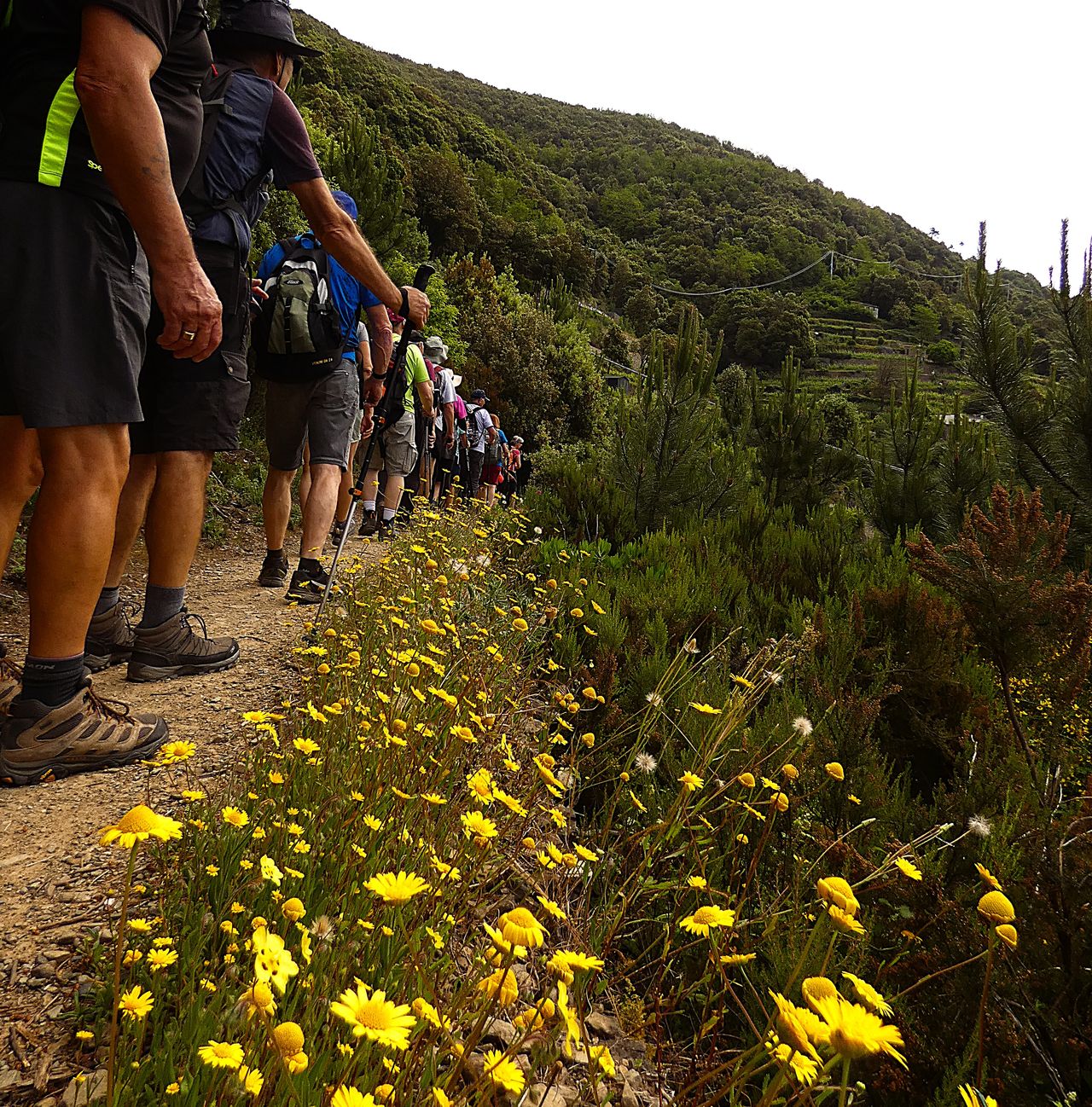 Au fil de notre progression nous découvrons des panoramas à couper le souffle sur la mer et les villages au pied de la montagne. Les trois groupes formés par nos guides prennent des parcours différents pour redescendre vers Corniglia et pour le groupe des « super Gazelle » entrainé par Laura, a pris la direction de Manarola.