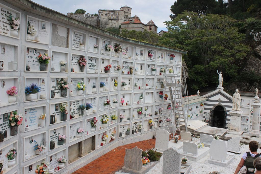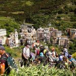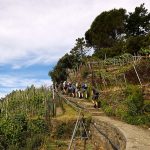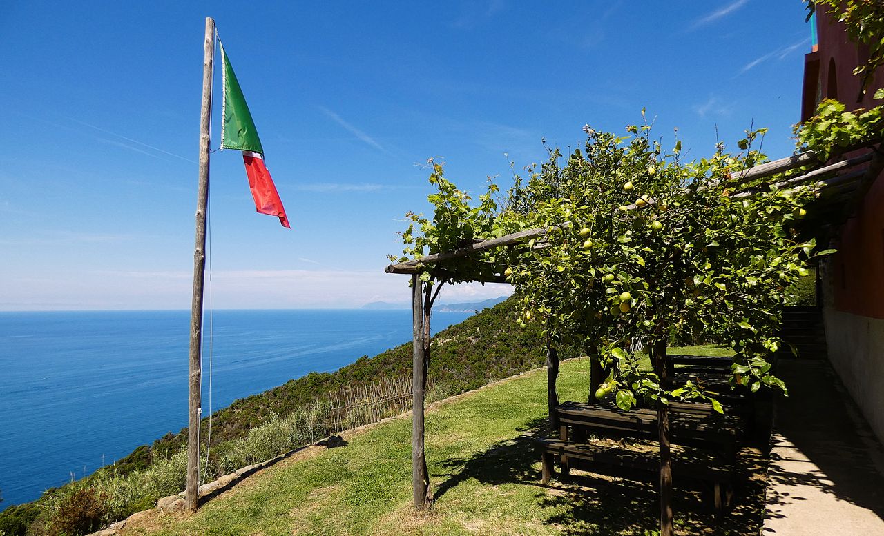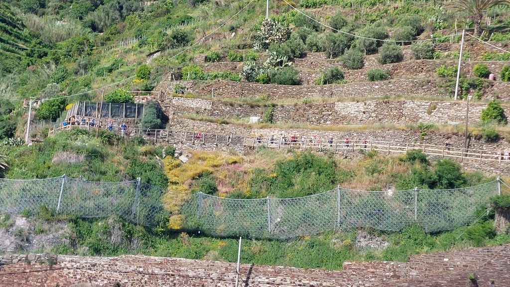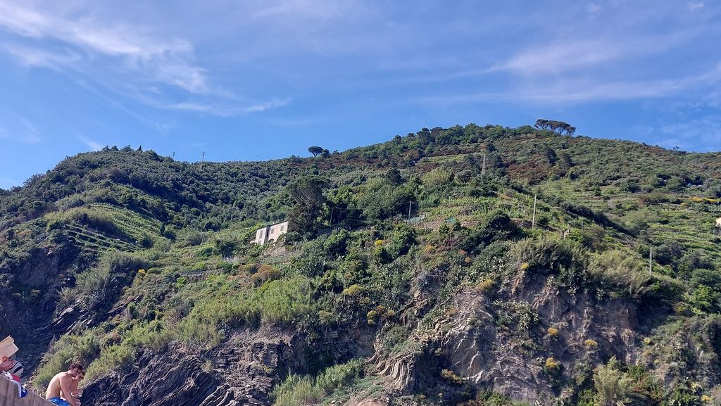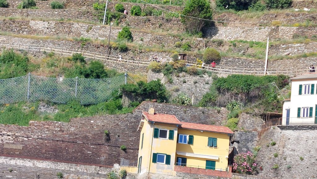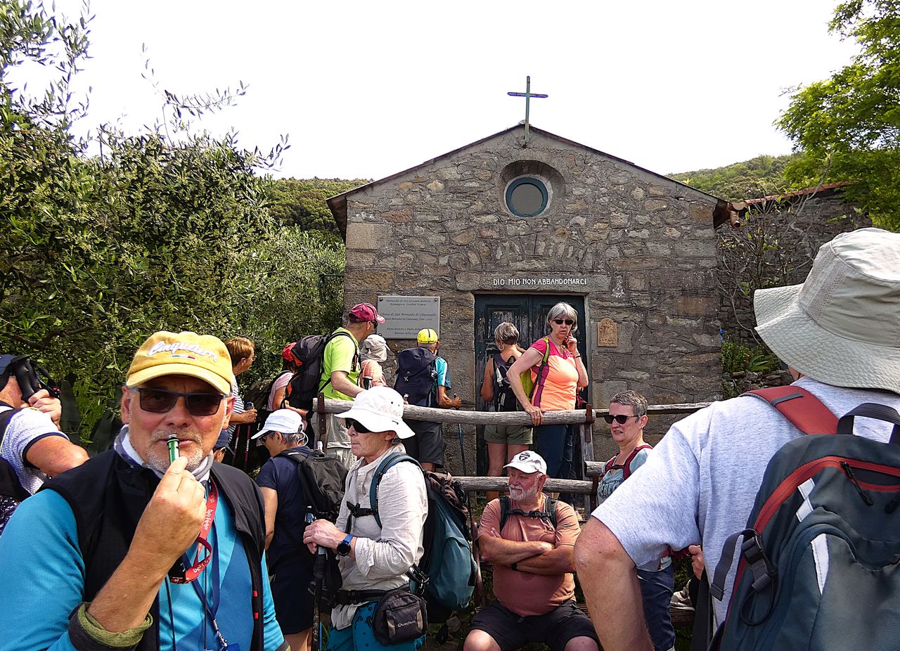 Direction Riomaggiore pour aller à la chapelle ND de Monte Nero connu sous le nom de sanctuaire de Montenero après une pente assez raide nous atteignons ce sanctuaire. Ce sanctuaire a été fondé à la suite de la découverte au 14 -ème siècle d’une icône byzantine. Nous prenons ensuite la direction du télégraphe et on constate la remise en culture et en état des terrasses à la suite d’un incendie en 2008 du maquis, la région incite depuis 2018 les personnes qui le souhaitent à remettre en état les fermettes et les terrains en culture. Tout en sachant que l’approvisionnement des matériaux doit se faire par hélicoptère et ensuite transport à la main.