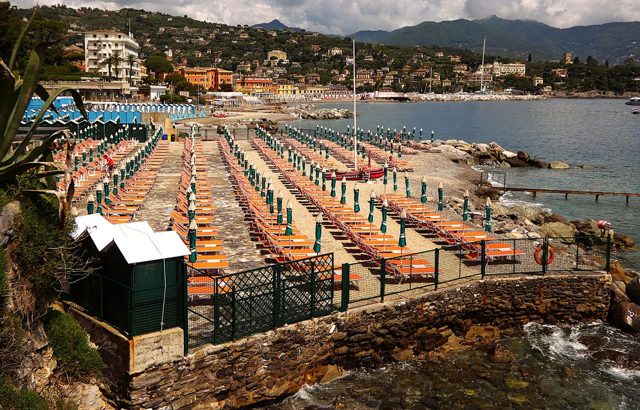 A l’issue de la visite de Recco, nous partons en direction de Porto Fino en longeant la mer. Les plages de galets sont en grande partie privatisées.