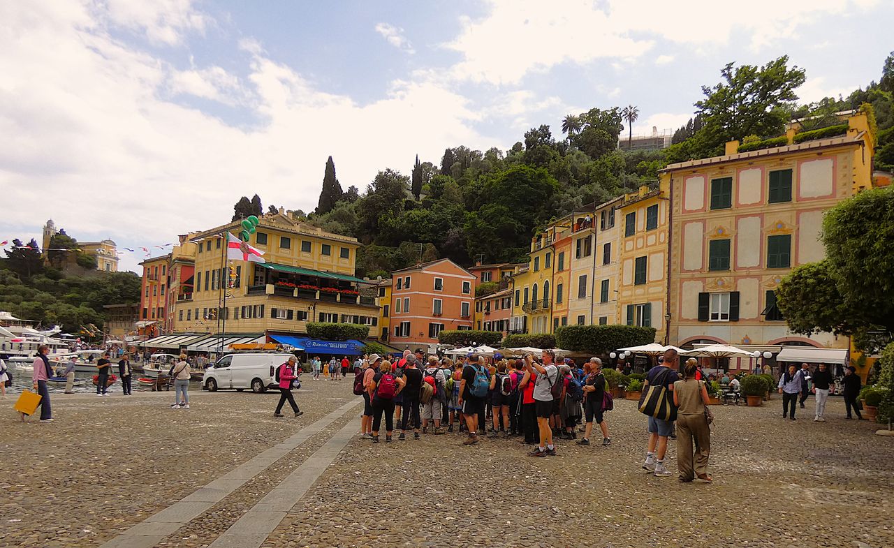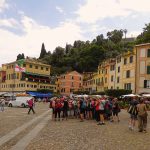 Portofino est un village de 350 habitants Au moment de la Dolce Vita L’aristocratie anglaise a fait la réputation de ce petit port qui est très prisé par la jet-set et les grands noms. C’est le Saint Tropez de la riviera italienne. Le nombre de bateaux dans la crique est limité et le coût pour une nuit est de 20 à 25 000€/nuit