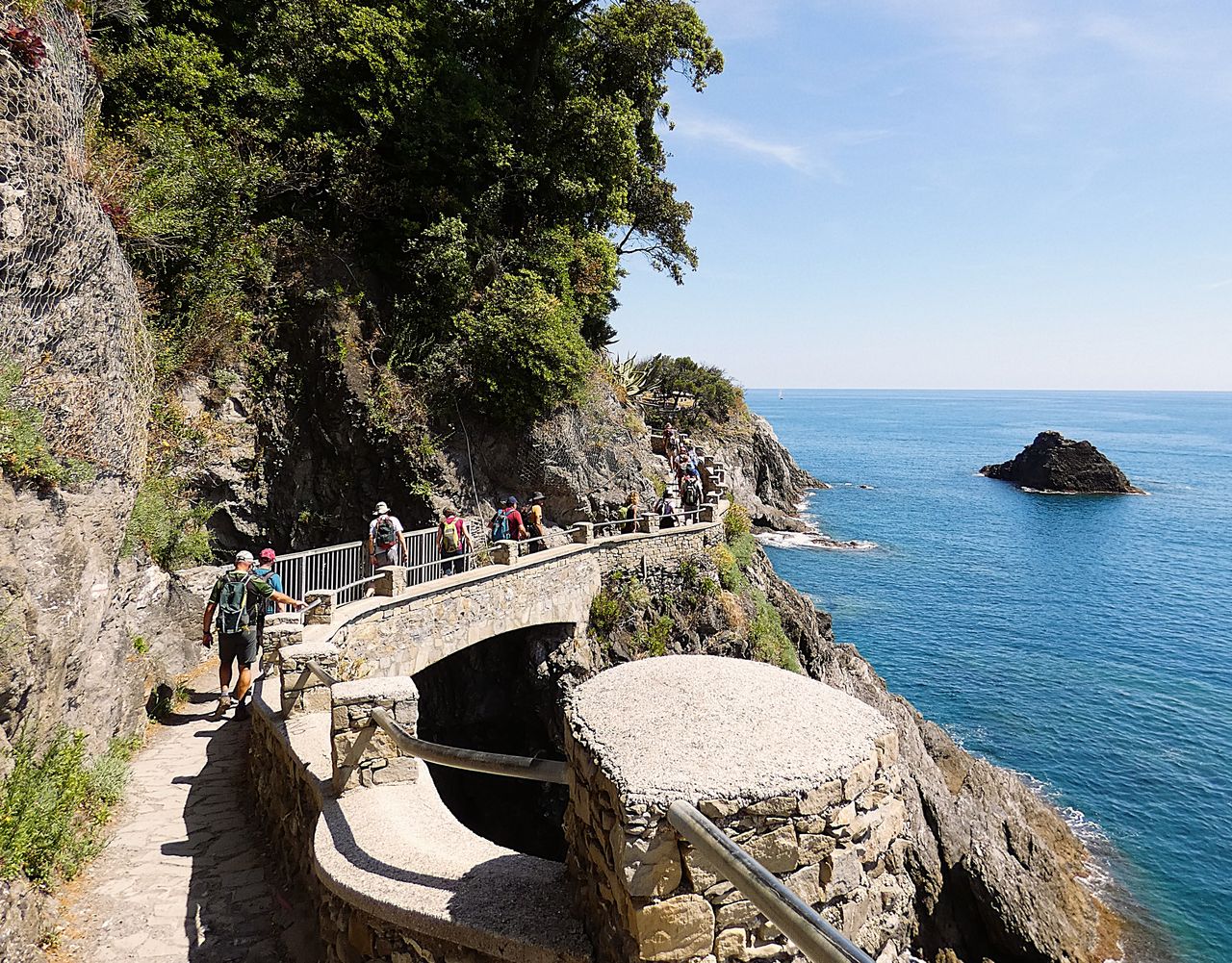 De très nombreux circuits pédestres traversent ce territoire. Le Parc National des Cinque Terre possède plus de 120 kilomètres de sentiers le long de la côte (48 sentiers). Les sentiers sont payants, les randonneurs paient un droit d’utilisation pour en assurer l’entretien.
