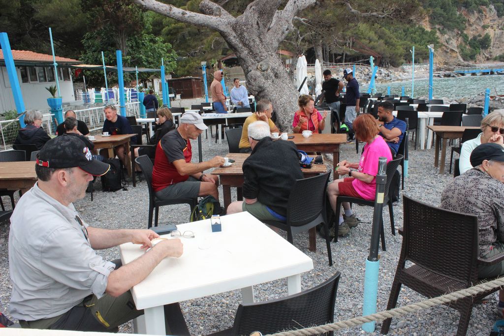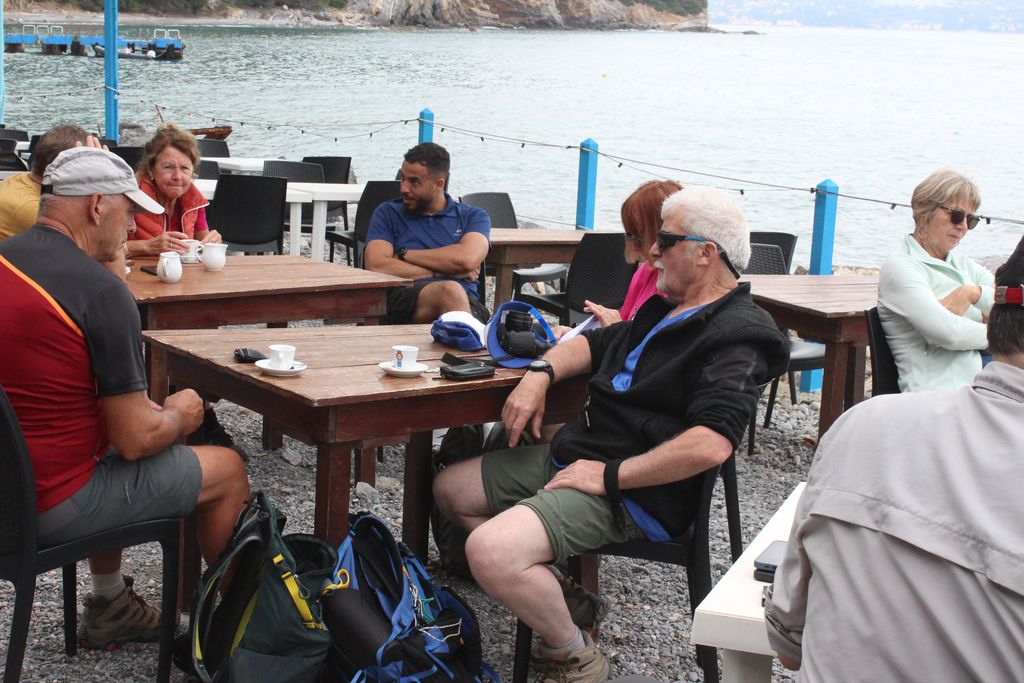 L’arrêt pour le repas de midi se fait dans un cadre idyllique avec vue plongeante sur la mer.