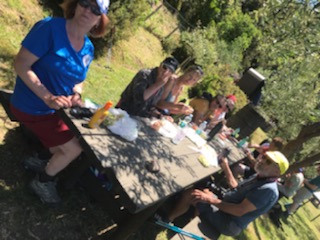 Pendant qu’une partie du groupe faisait du tourisme, les « super gazelles » entrainées par Laura gambadaient dans la nature avec un parcours très technique et 400m de dénivelé pour 12km de randonnée. A l’arrivée la bière ou une glace furent les bienvenus pour nos valeureux marcheurs un peu épuisés mais heureux d’avoir réussi ce parcours. Ils n’ont pas oublié Sylvie avec quelques pierres ramassées le long du parcours.