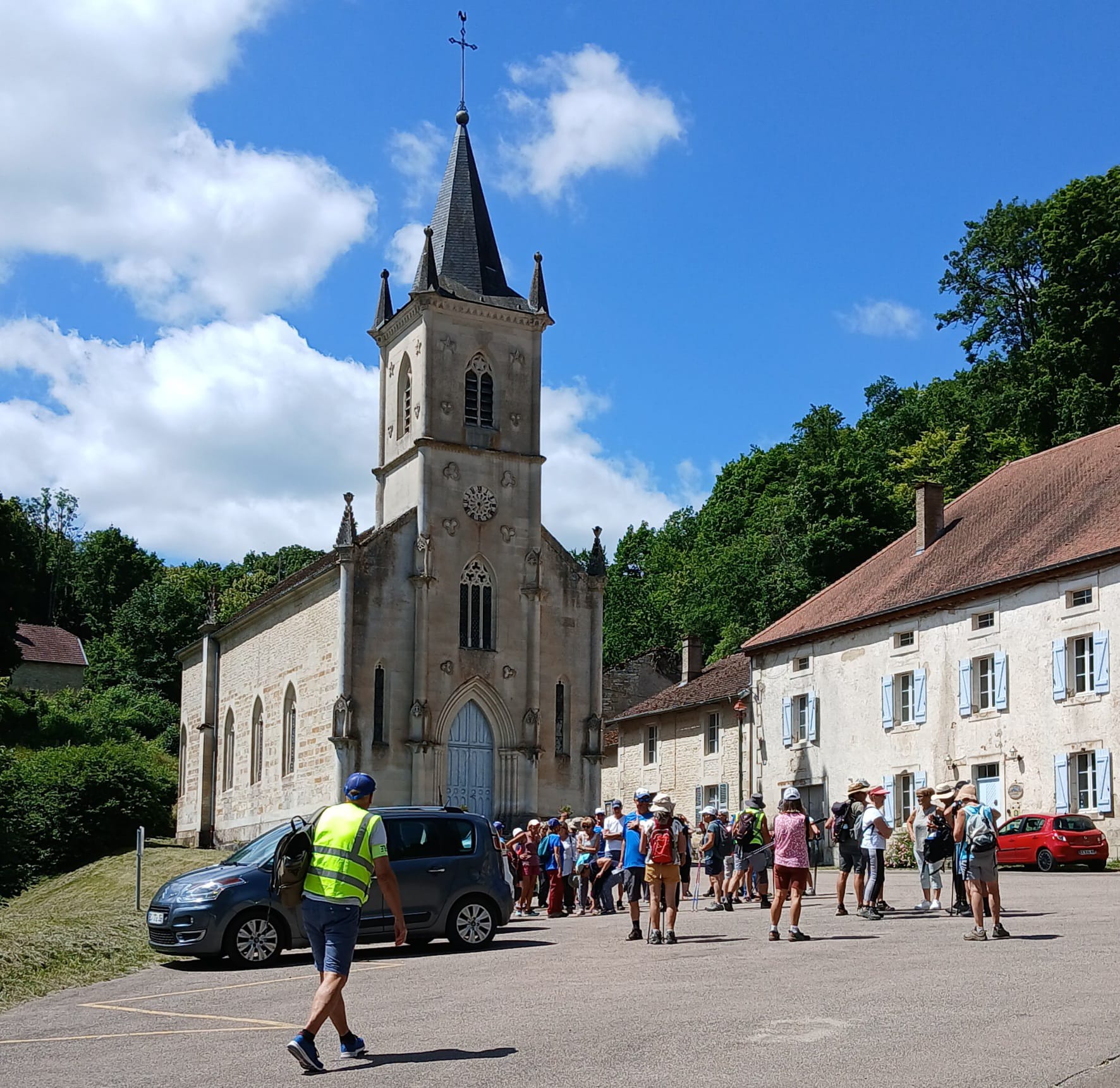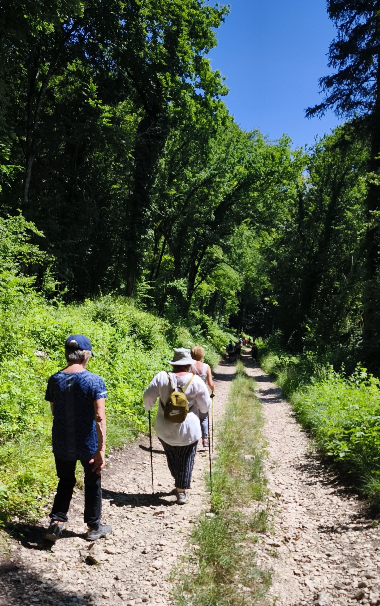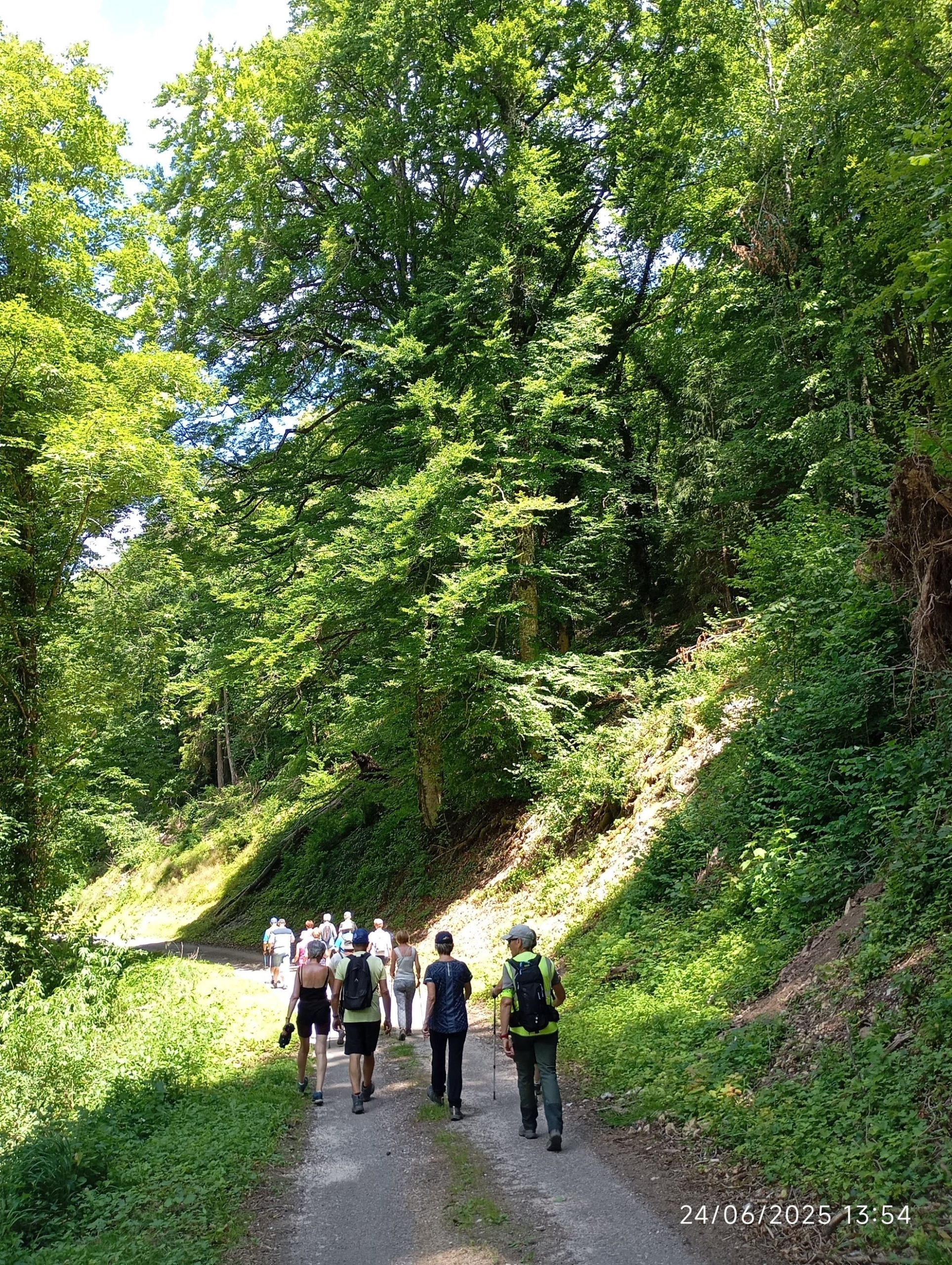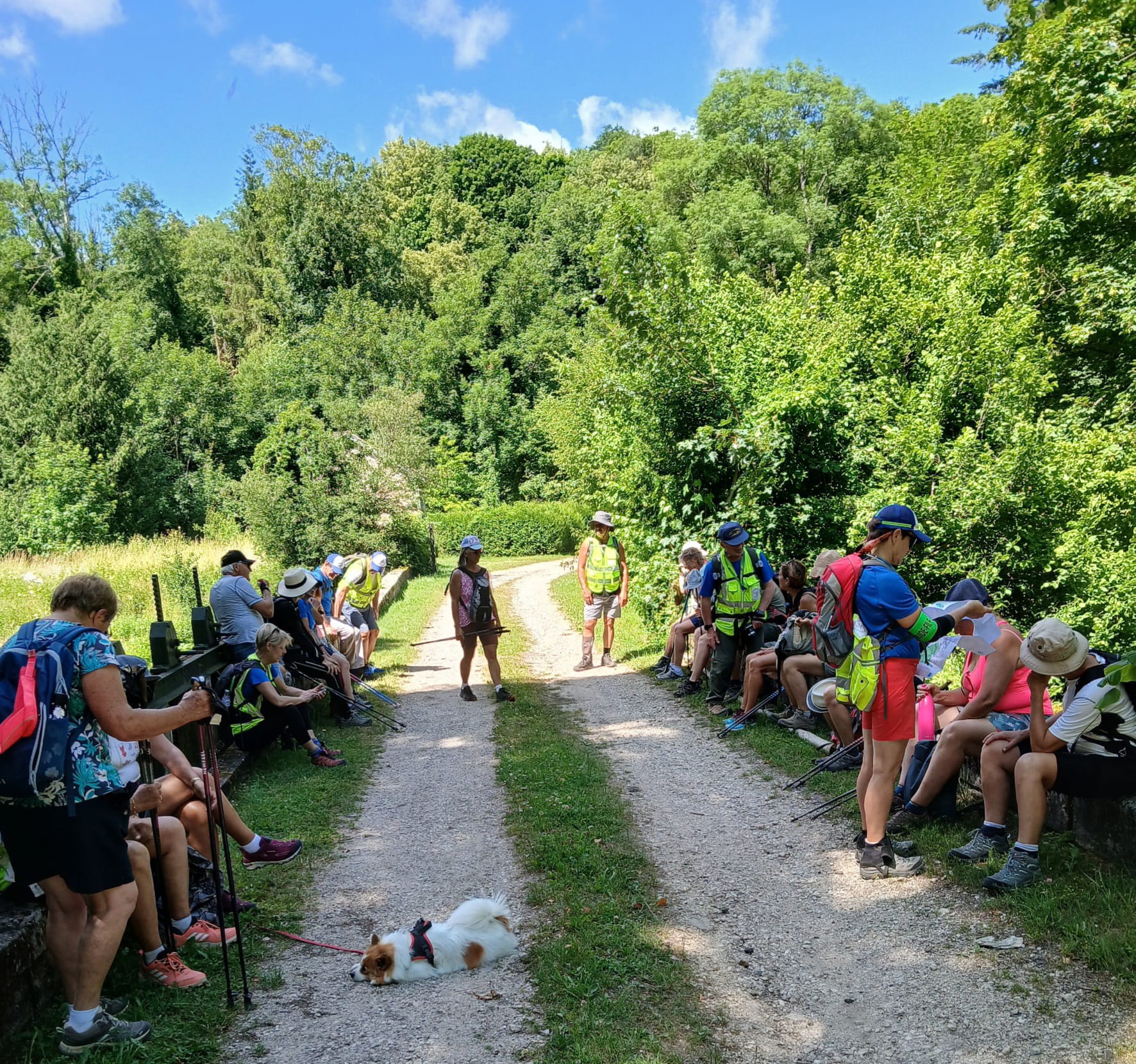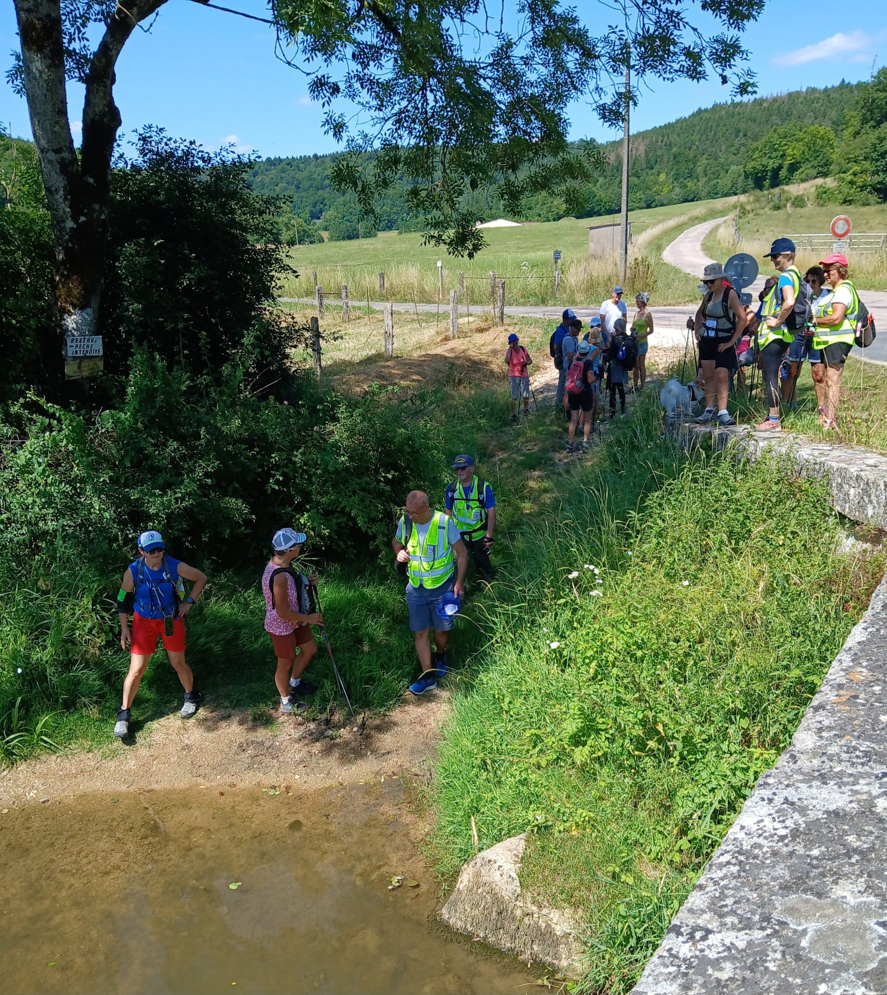 C’est en plein milieu des bois que le groupe parti de bon matin croisait le chemin d’un deuxième groupe parti une heure plus tard. Cette joyeuse troupe ainsi constituée prenait ensuite la direction du joli village d’Ecot la combe pour rejoindre le troisième groupe « des flâneurs » pour un pique-nique partagé ensemble. Tout ça, avec une coordination digne d’une horloge suisse.