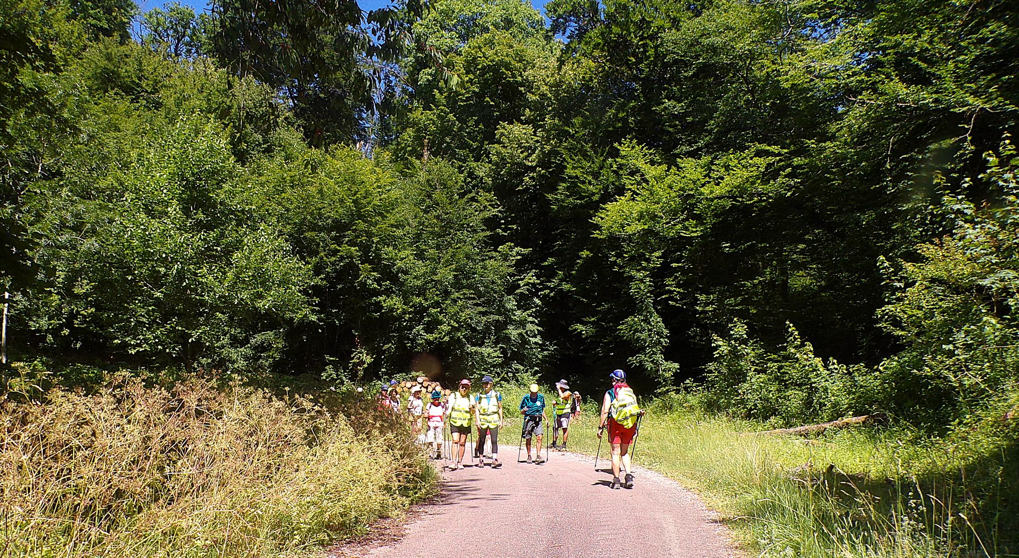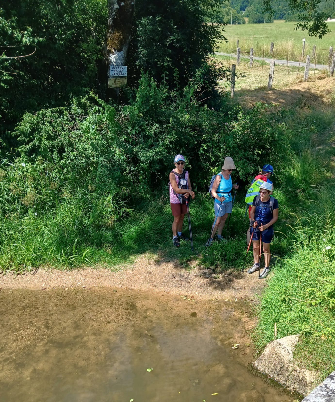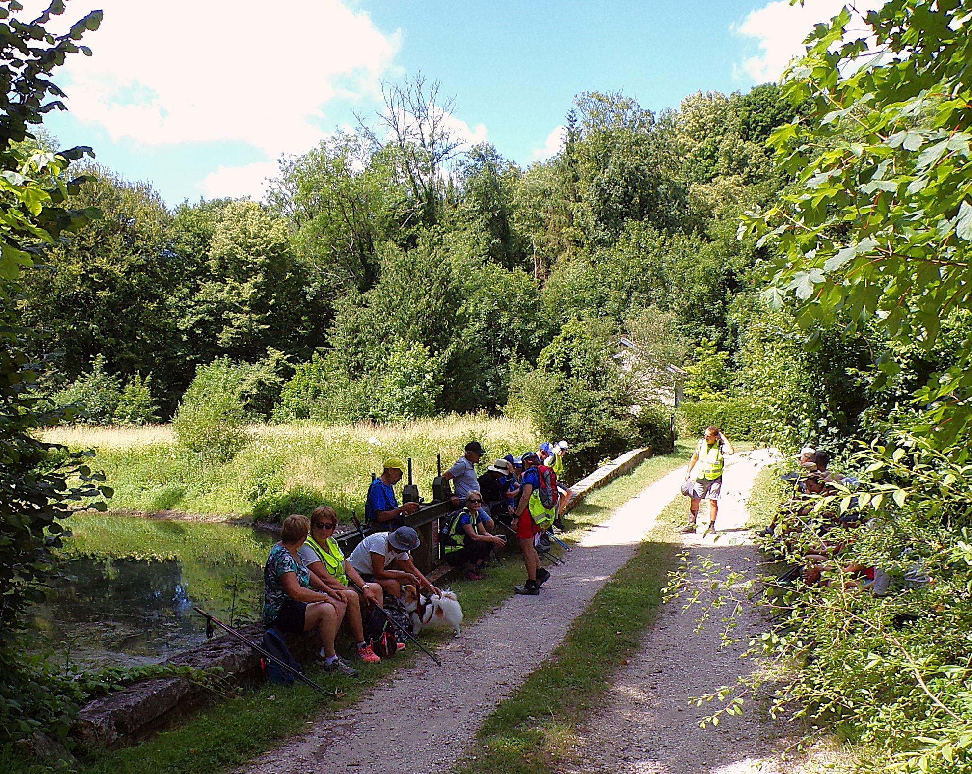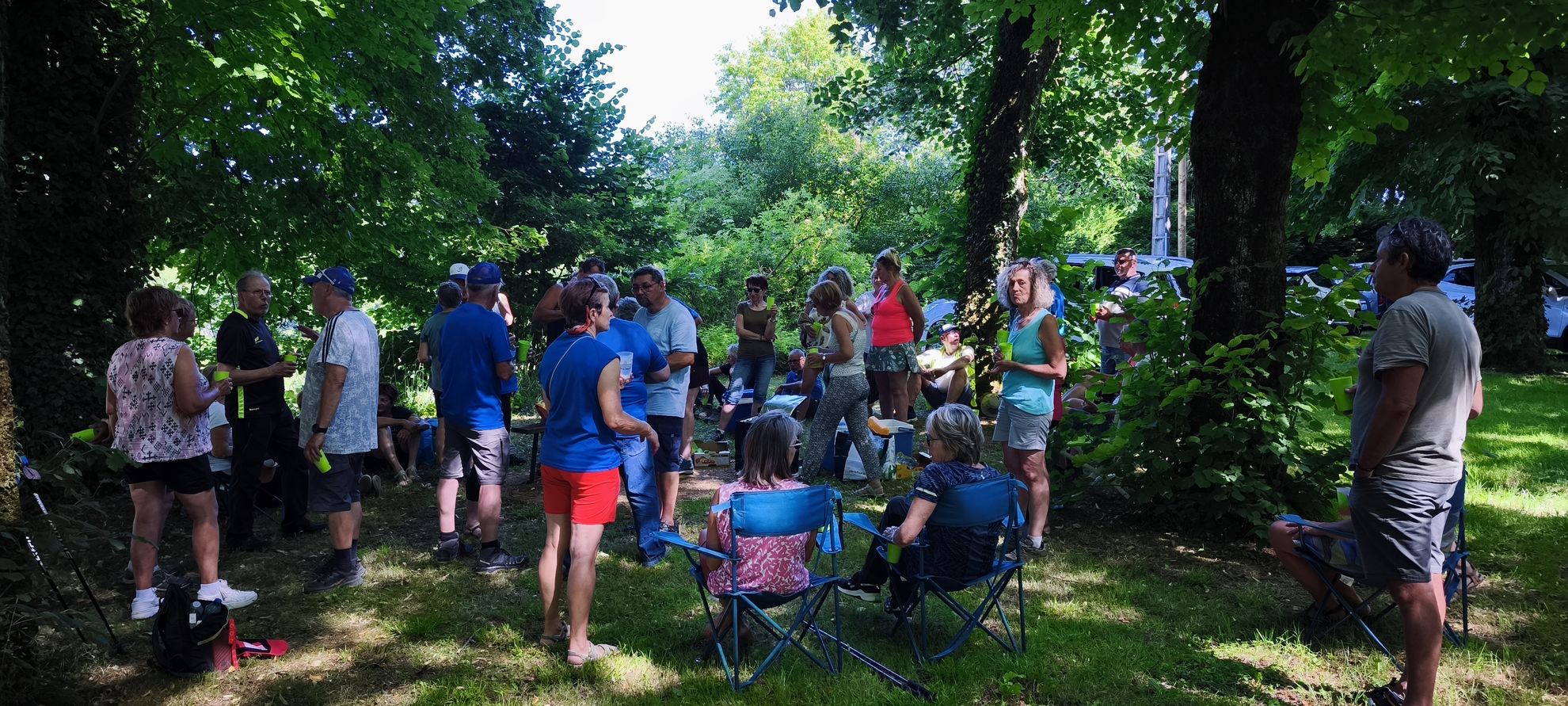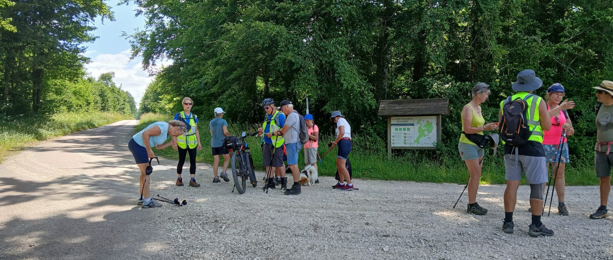 C’est en plein milieu des bois que le groupe parti de bon matin croisait le chemin d’un deuxième groupe parti une heure plus tard. Cette joyeuse troupe ainsi constituée prenait ensuite la direction du joli village d’Ecot la combe pour rejoindre le troisième groupe « des flâneurs » pour un pique-nique partagé ensemble. Tout ça, avec une coordination digne d’une horloge suisse.