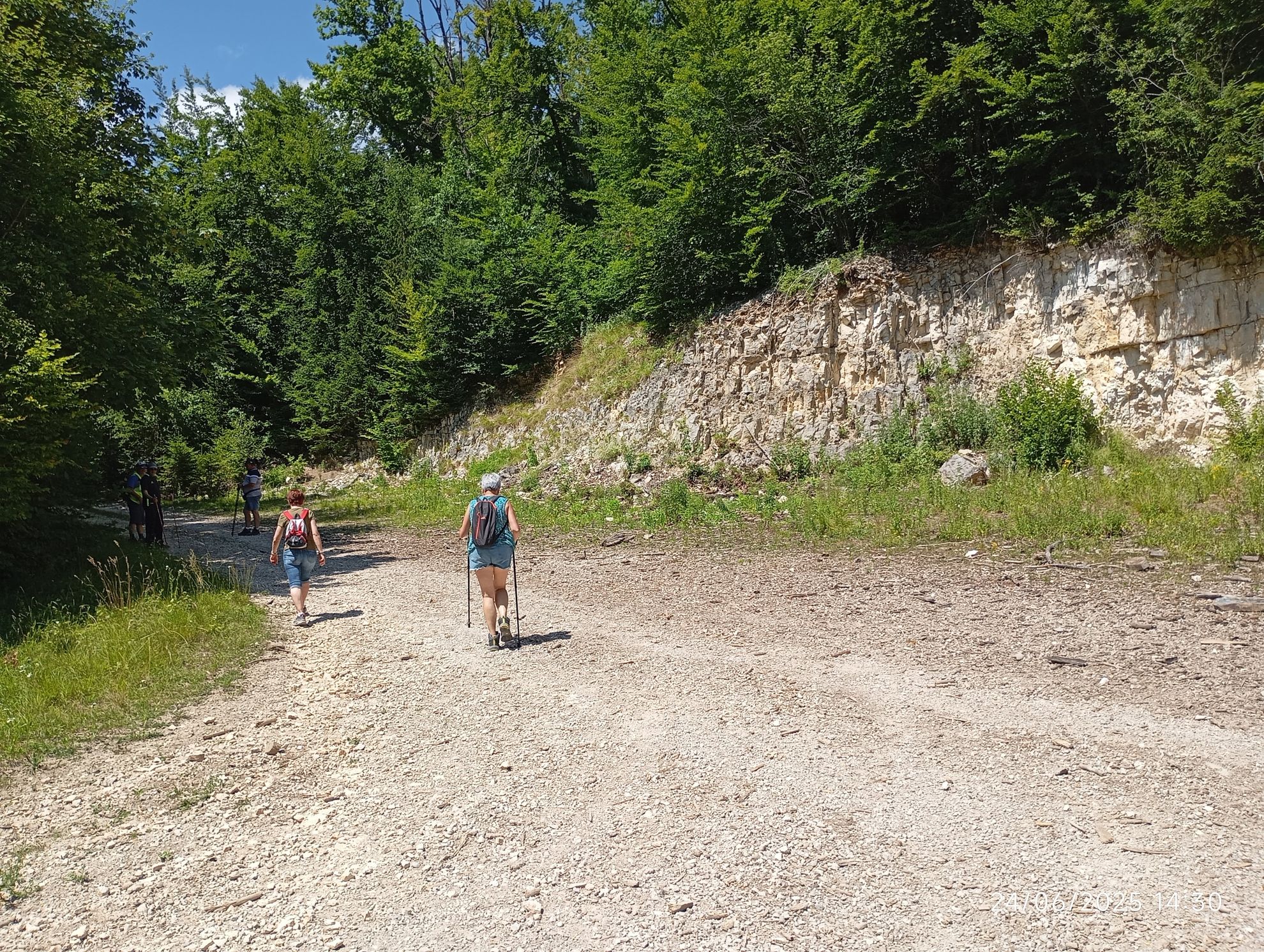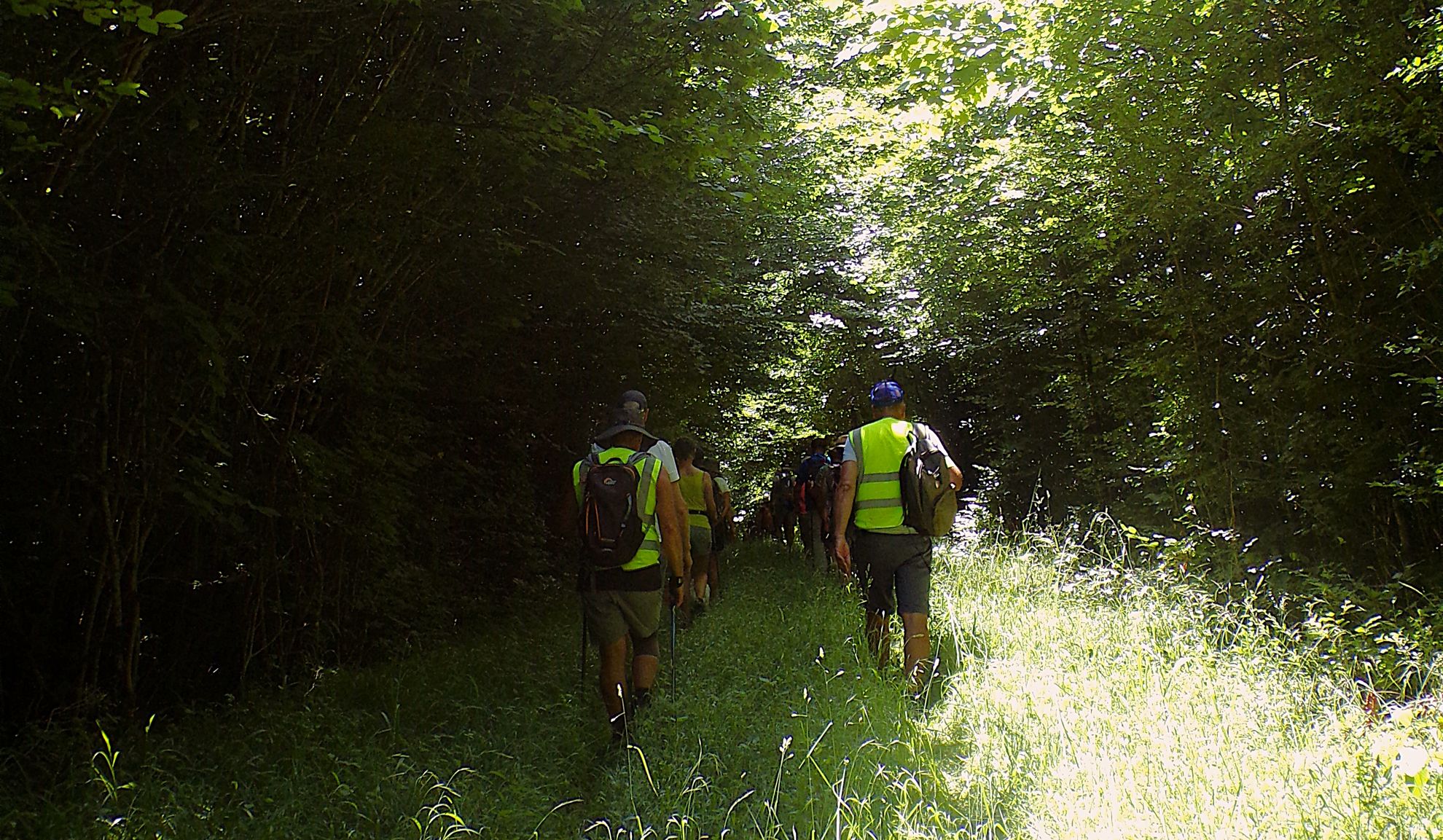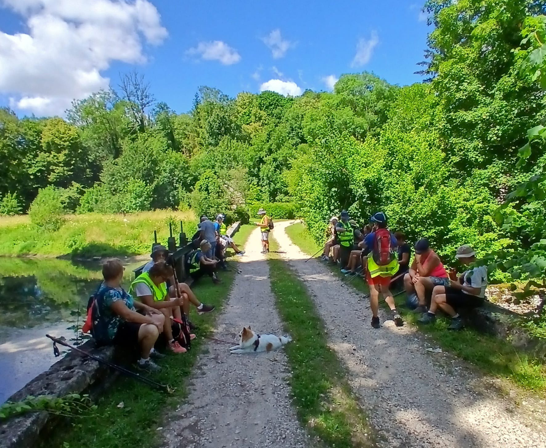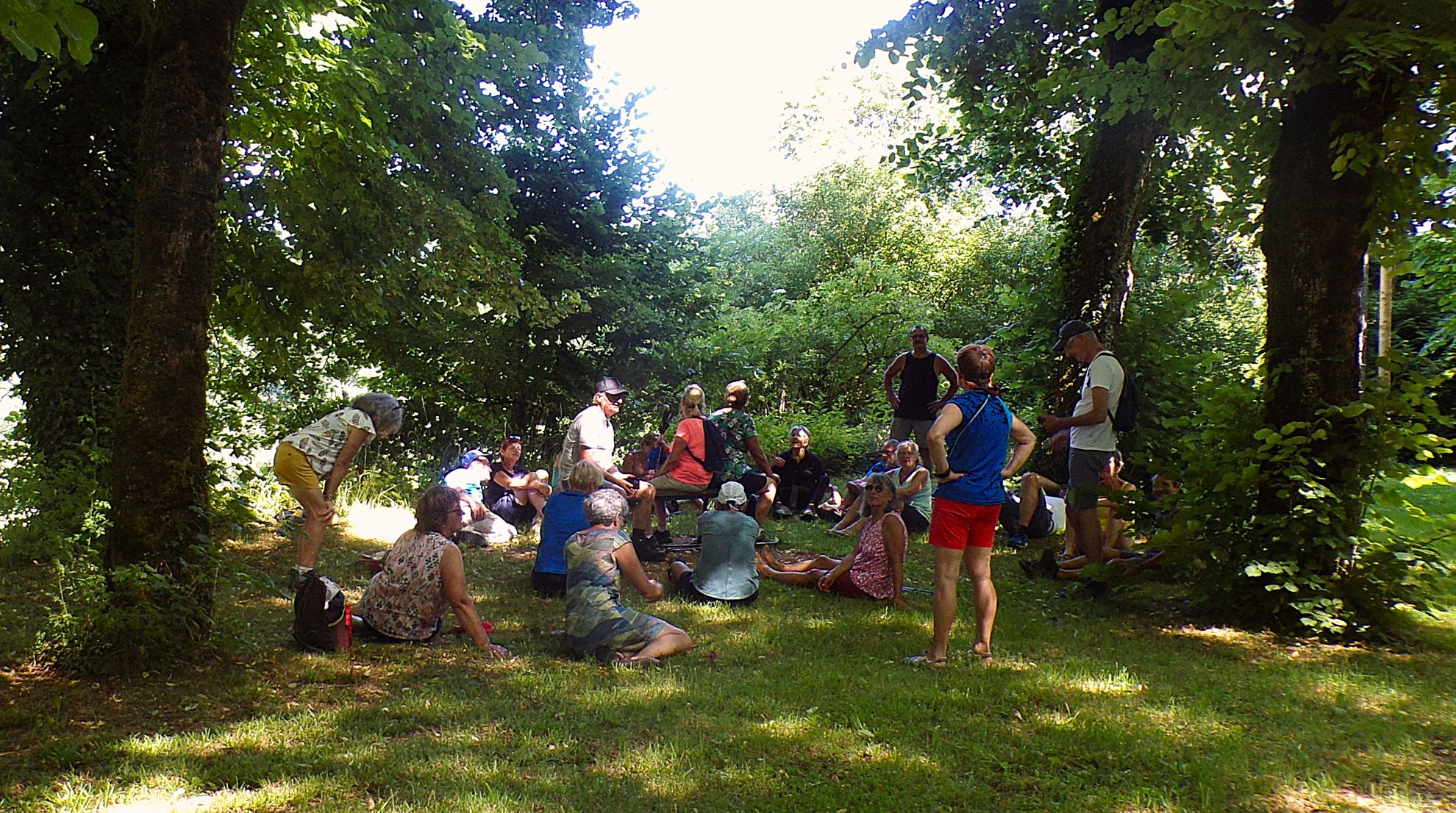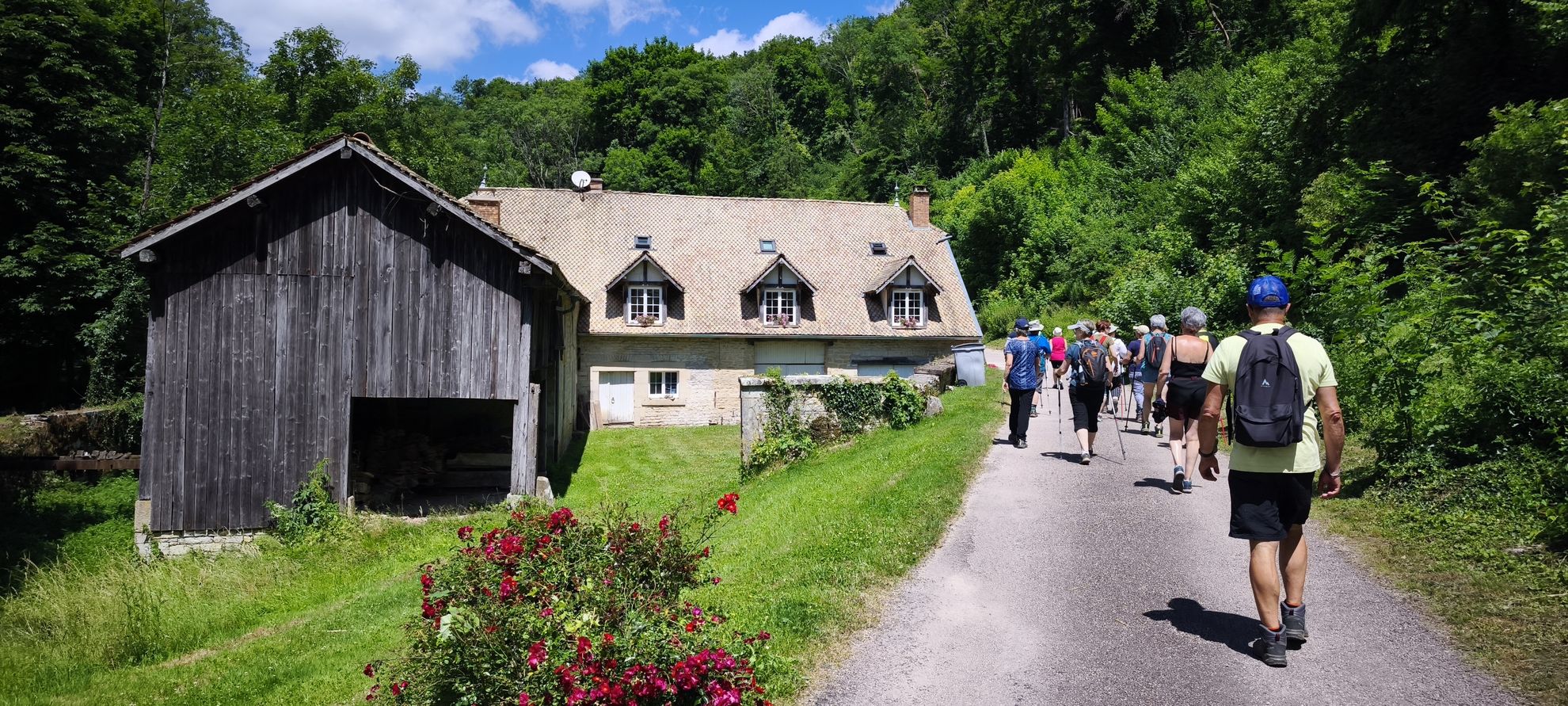 C’est en plein milieu des bois que le groupe parti de bon matin croisait le chemin d’un deuxième groupe parti une heure plus tard. Cette joyeuse troupe ainsi constituée prenait ensuite la direction du joli village d’Ecot la combe pour rejoindre le troisième groupe « des flâneurs » pour un pique-nique partagé ensemble. Tout ça, avec une coordination digne d’une horloge suisse.