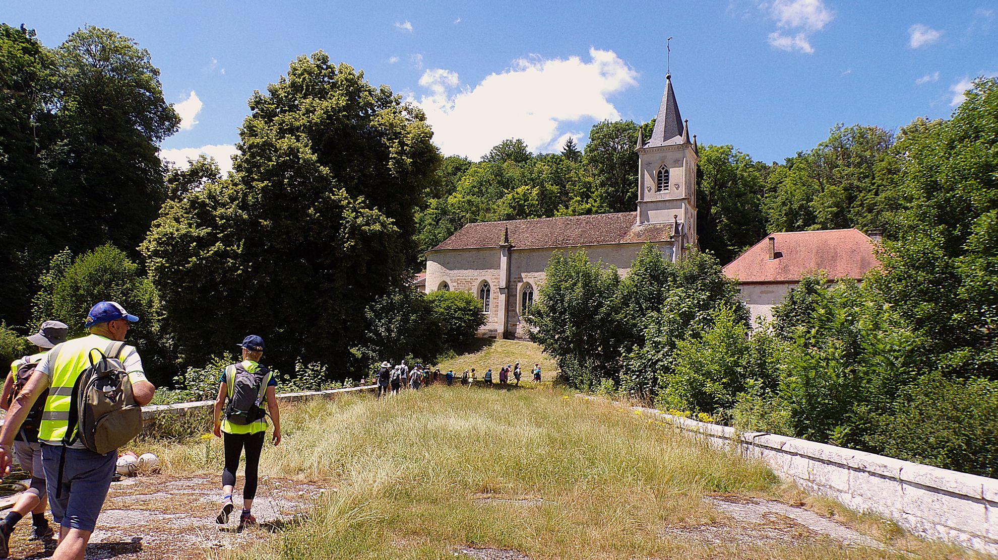 Comme dit la chanson, « un kilomètre à pied, ça use, ça use, ça use les souliers ». Penser que les quasi 22 km qui attendaient la première vague de randonneurs allaient leur donner du fil à retordre ? Que nenni, après une bonne montée juste après le départ de Bourdon sur Rognon, façon de se mettre en condition, direction la forêt ombragée et un passage par l’ancienne abbaye de la Crête, en cours de restauration.