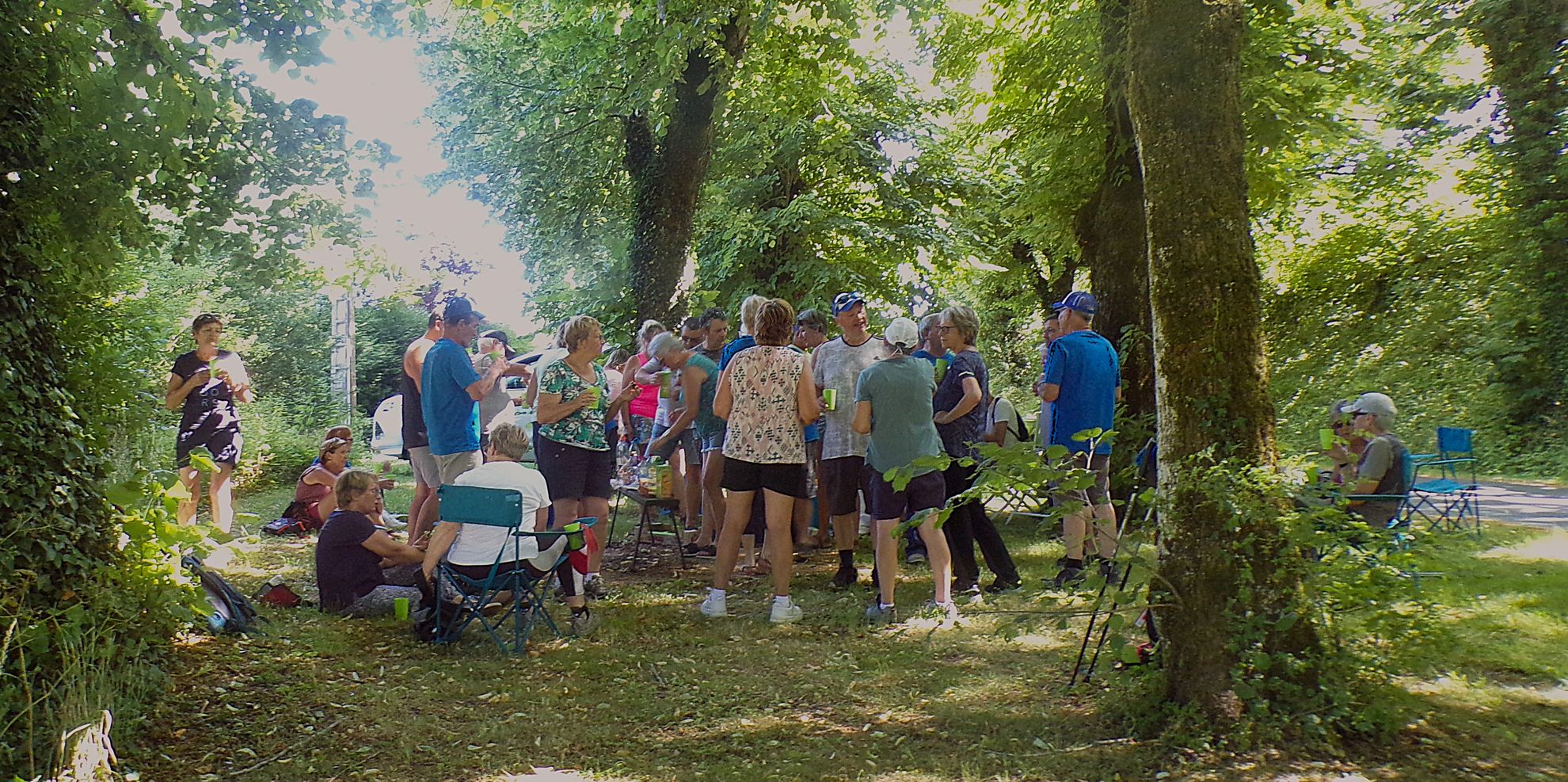 Après 2 heures d’efforts consentis, tout ce petit monde quittait le village d’Ecot la Combe, qui, grâce à l’ASL, avait doublé sa population pendant quelques heures. Objectif : retrouver et regrouper l’ensemble des randonneurs afin de partager un dernier verre « bien frais » sous les tilleuls du village.