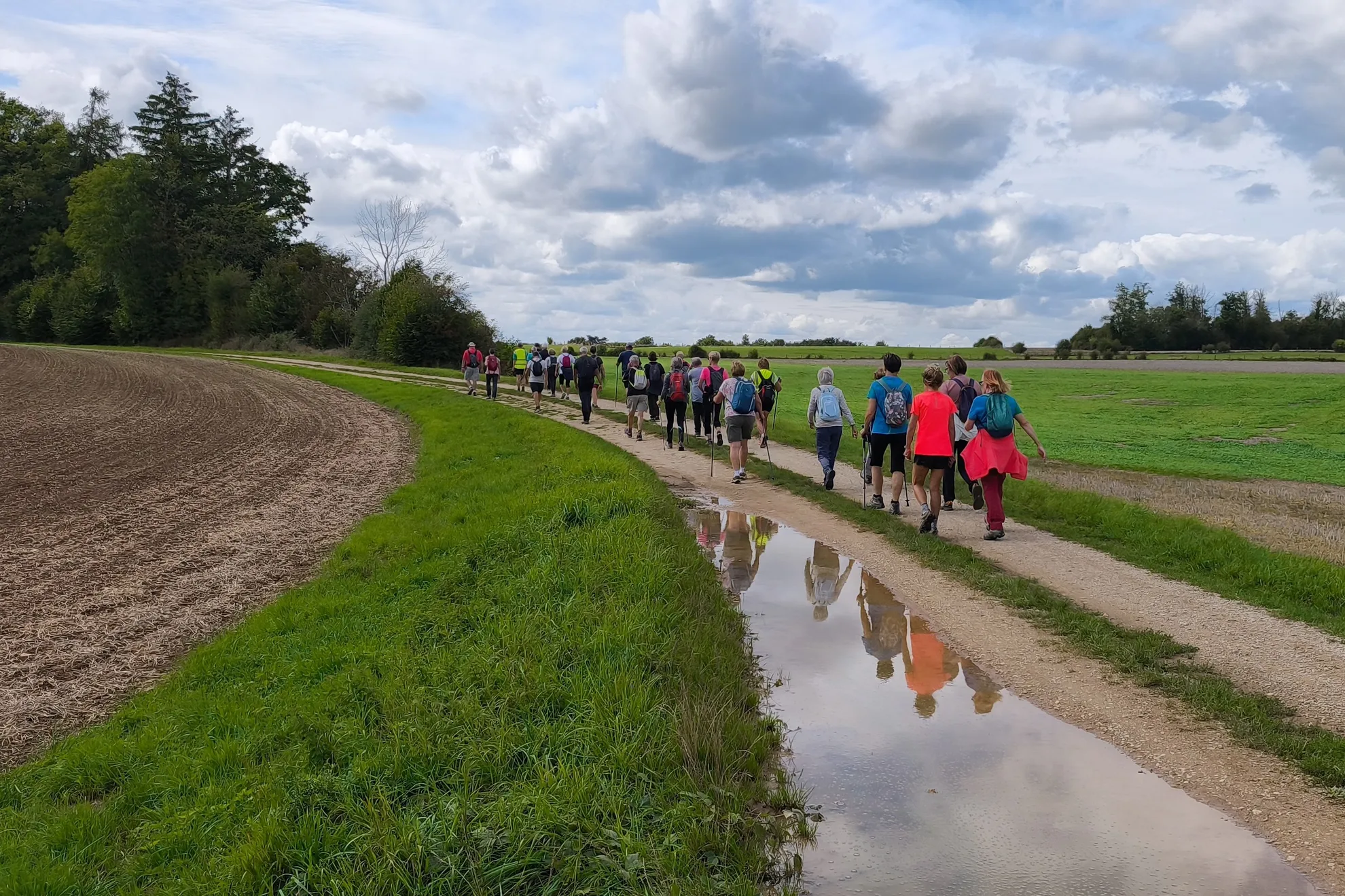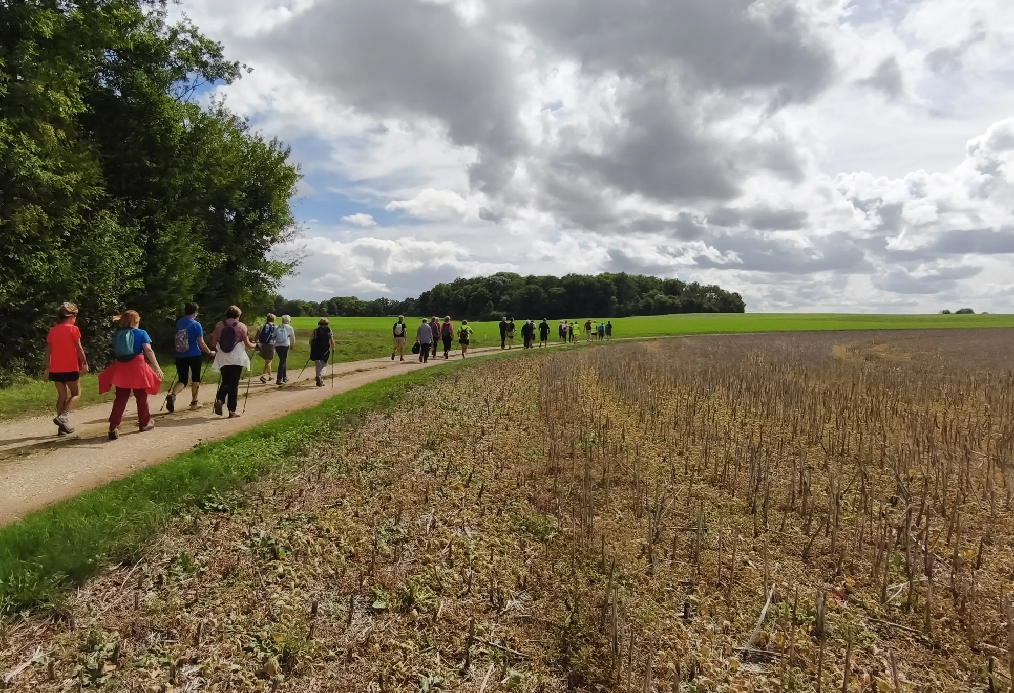 Pour cette rentrée, rien de tel qu’une bonne marche tonique pour se remettre en mouvement et partager un moment ensemble. C’est sous un ciel plutôt clément et une température aux alentours des 19°C, que le groupe de 41 personnes se retrouve.