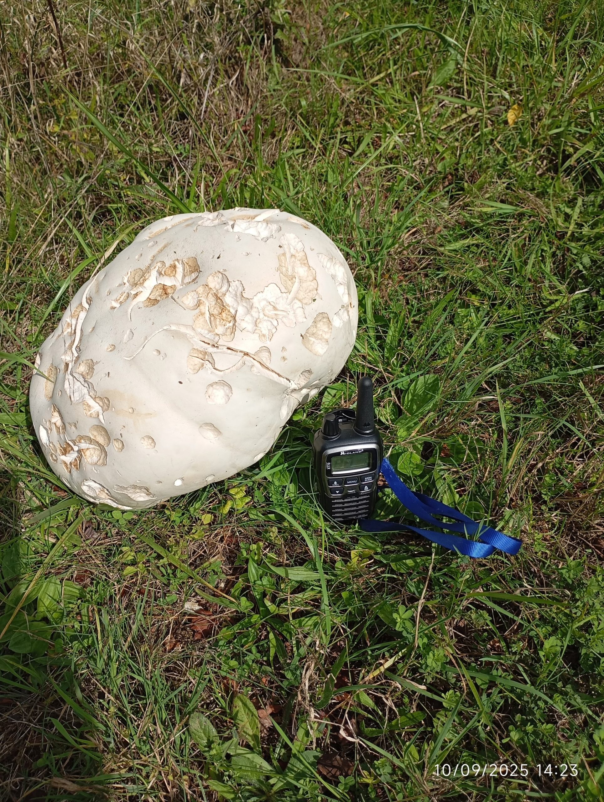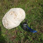 Nous constatons que les pluies de ces deux dernières semaines ont permis à la végétation de reprendre de la vigueur y compris le feuillage des arbres à ce jour on a l’impression d’être au printemps tant les herbages sont verts. Cette pluie a été bénéfique à la pousse des champignons, nous sommes surpris de trouver des Lycoperdons de belle taille (grosseur d’un ballon de foot…) qui signifie littéralement « pet de loup » plus connu dans notre région comme vesse de loup. Vu sa taille nous aurions pu faire une belle omelette, mais celles-ci sont beaucoup moins gouteuses que les ceps ramassés mardi dans la forêt de Corgirnon. (Ah zut… fallait pas dire où !)