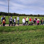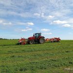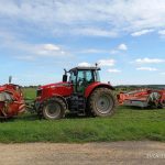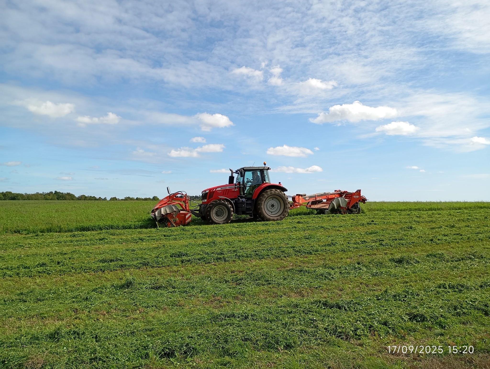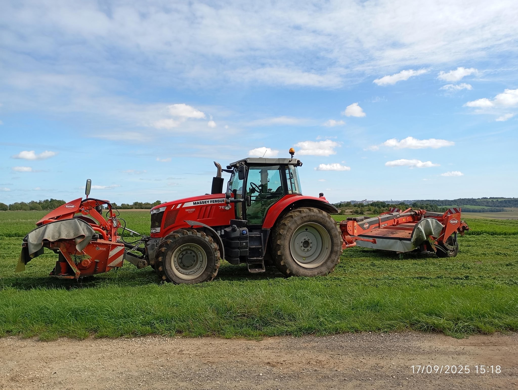 À la sortie du bois, un marcheur du mardi nous fait une démonstration de fauchage de luzerne avec son gros tracteur.