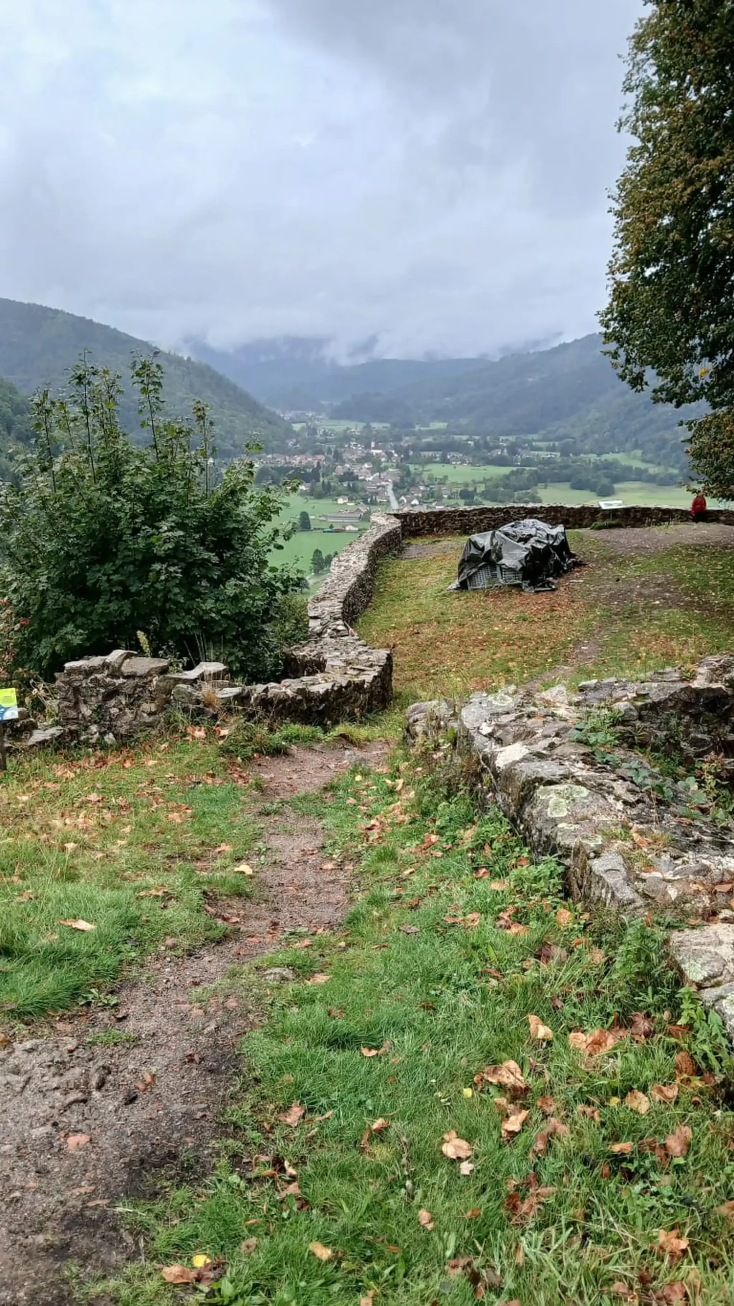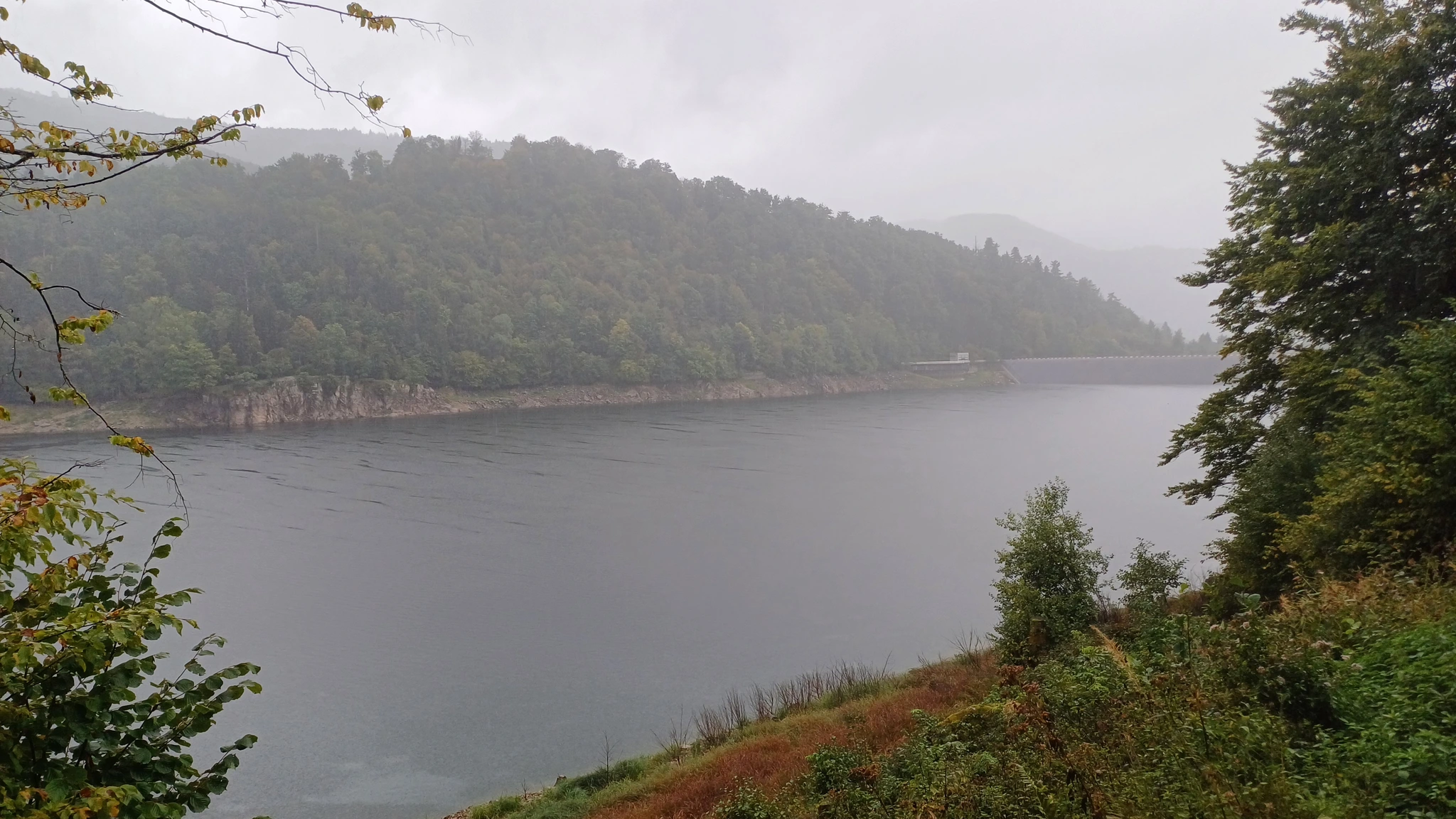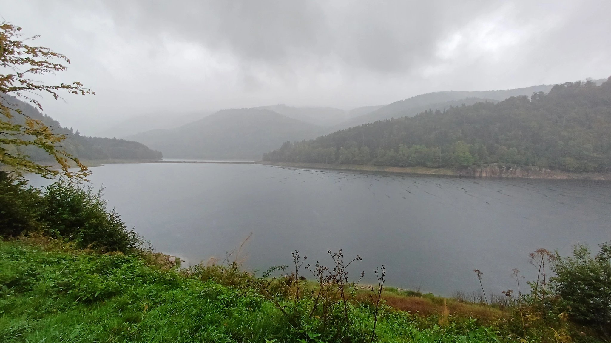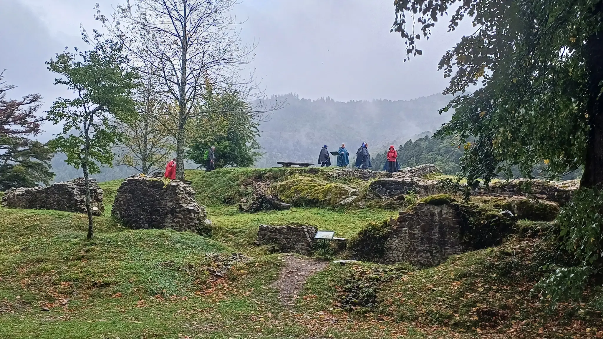 • Jour 1 : lac de Kruth et château de Wildenstein au Schossberg : À peine arrivé à destination, direction le chalet des places pour un pique-nique « au sec » avant de se rendre au bord du lac de Kruth pour une première randonnée. Les premiers paysages, même sous la brume, nous ont rappelé la beauté sauvage de cette région. Une bonne grimpette le long de la cascade du Bockloch pour se mettre en condition, ensuite un long sentier nous ramenant vers le barrage du lac pour ensuite grimper et découvrir les ruines du château de Wildenstein datant du 14ᵉ siècle. Le tout avec une météo contrastée entre nuages et averses « conséquentes ». Pas suffisant pour rafraîchir nos ardeurs et anticiper la randonnée du jour suivant devant un bon repas.