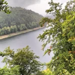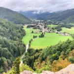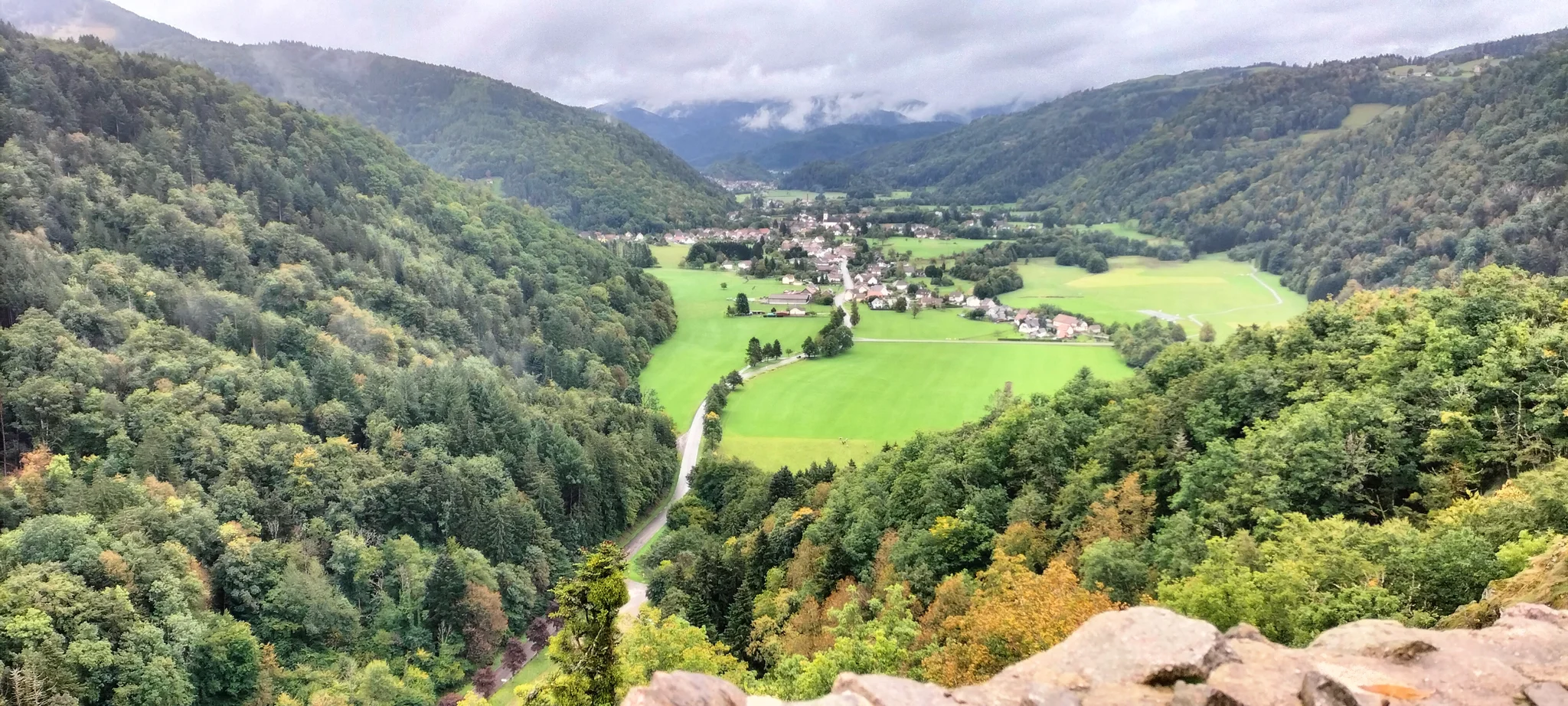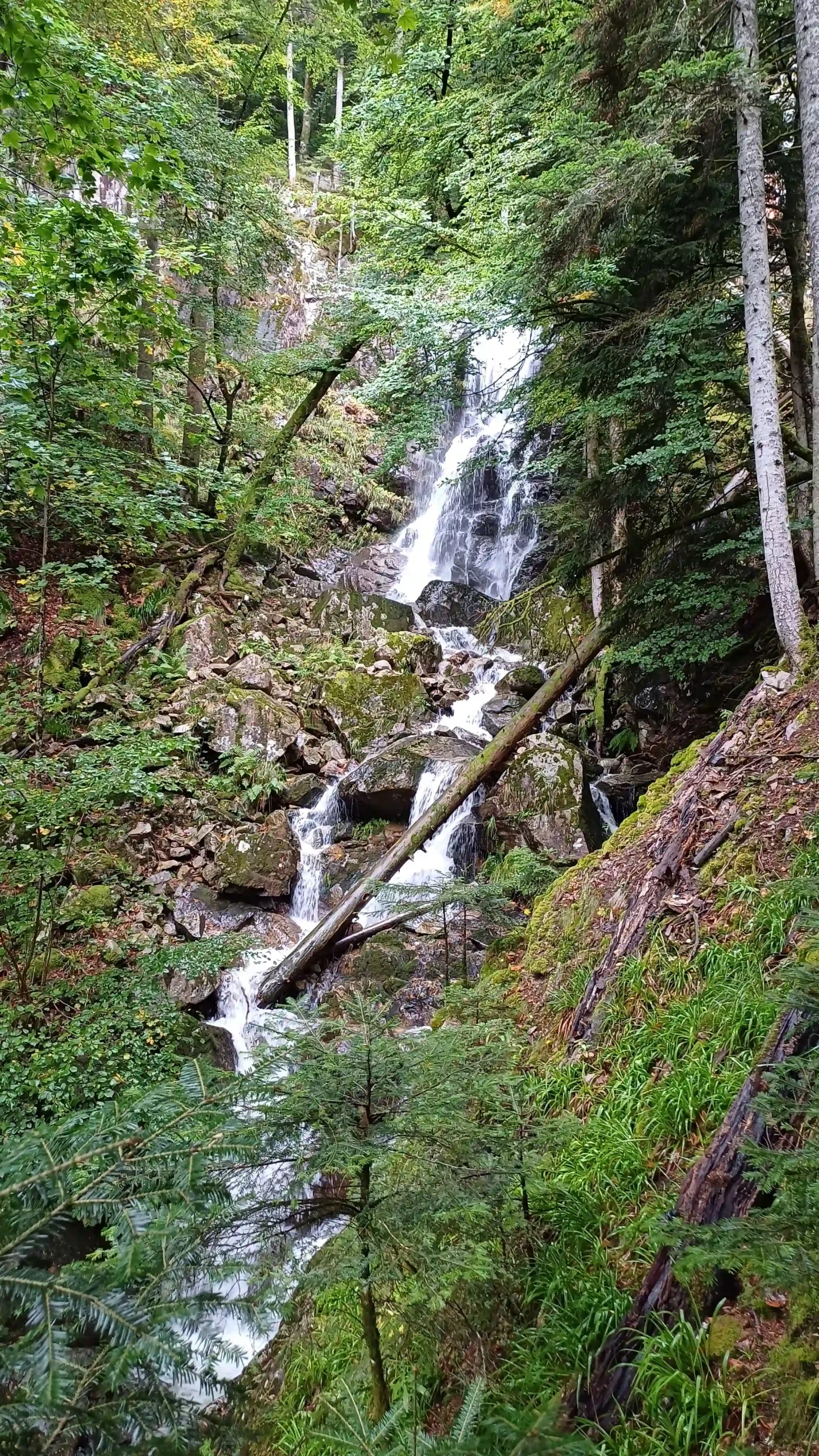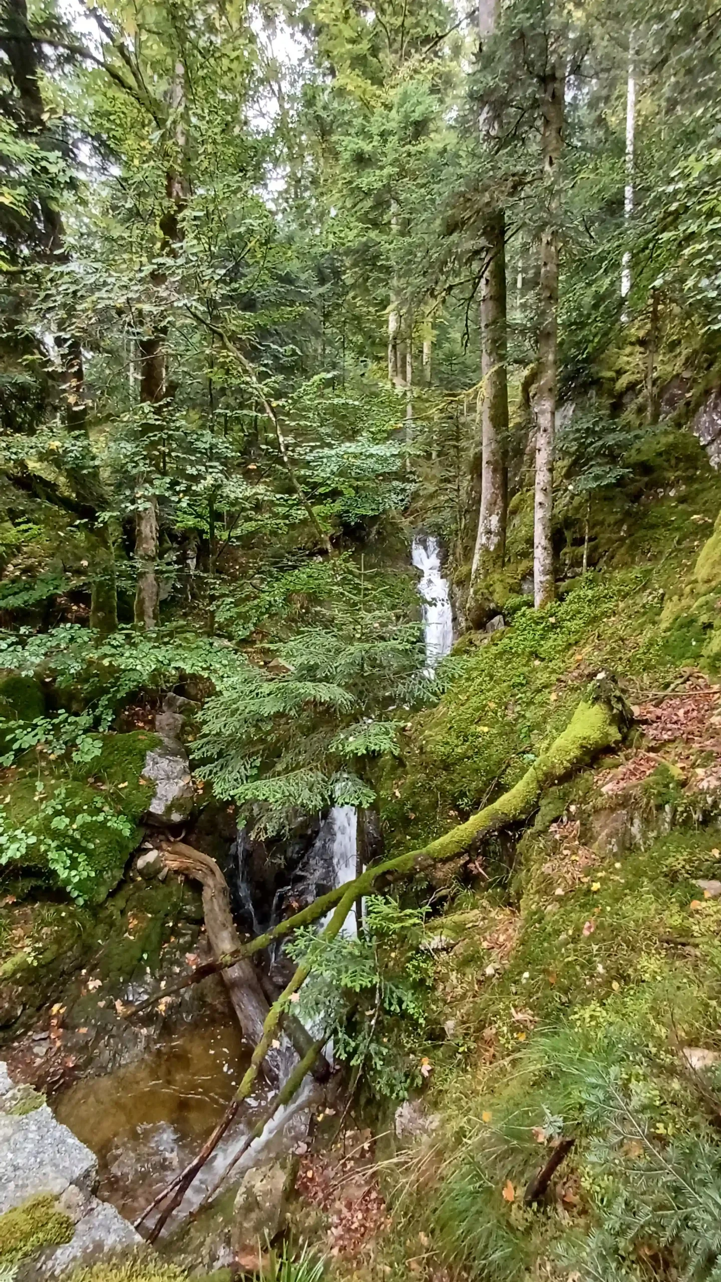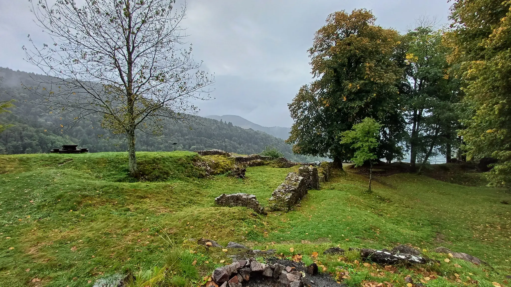 • Jour 1 : lac de Kruth et château de Wildenstein au Schossberg : À peine arrivé à destination, direction le chalet des places pour un pique-nique « au sec » avant de se rendre au bord du lac de Kruth pour une première randonnée. Les premiers paysages, même sous la brume, nous ont rappelé la beauté sauvage de cette région. Une bonne grimpette le long de la cascade du Bockloch pour se mettre en condition, ensuite un long sentier nous ramenant vers le barrage du lac pour ensuite grimper et découvrir les ruines du château de Wildenstein datant du 14ᵉ siècle. Le tout avec une météo contrastée entre nuages et averses « conséquentes ». Pas suffisant pour rafraîchir nos ardeurs et anticiper la randonnée du jour suivant devant un bon repas.