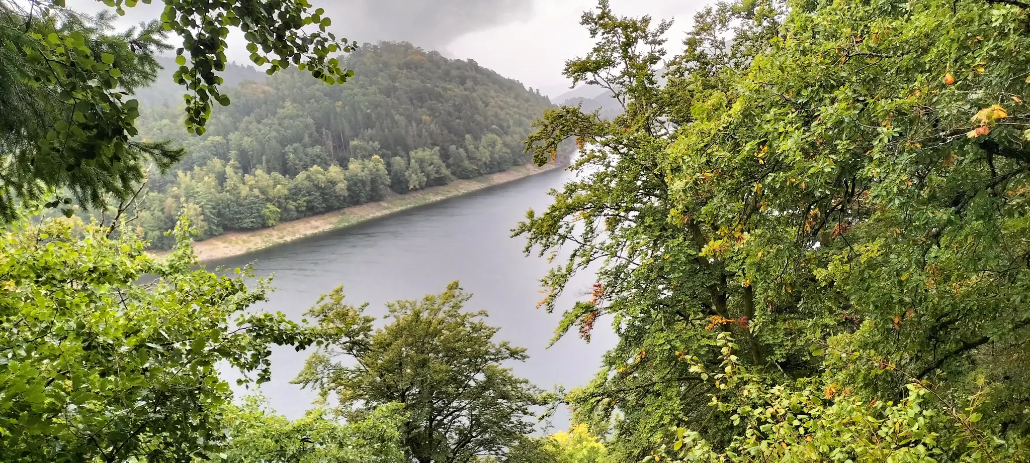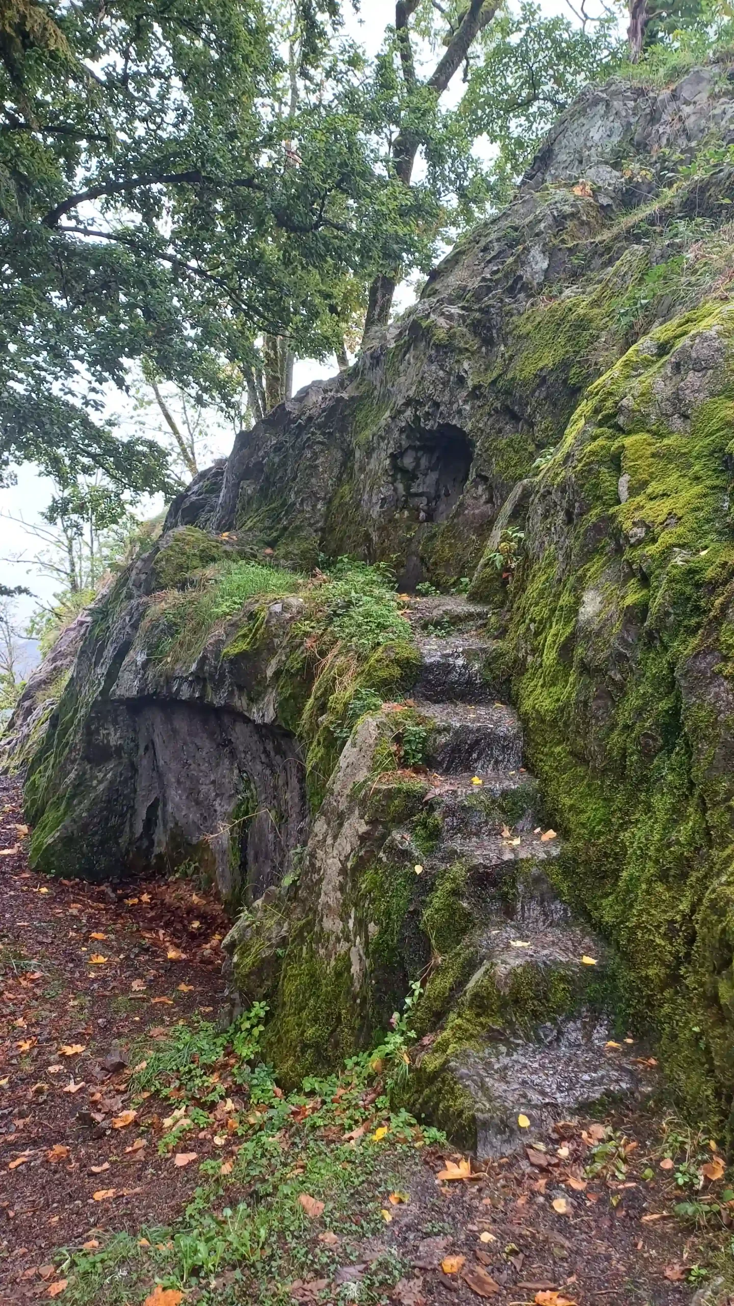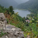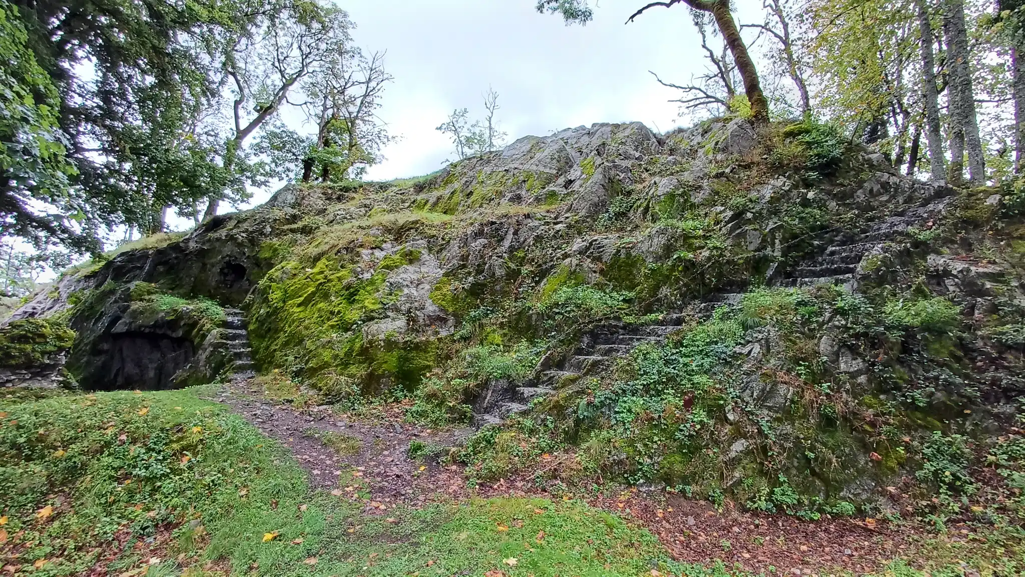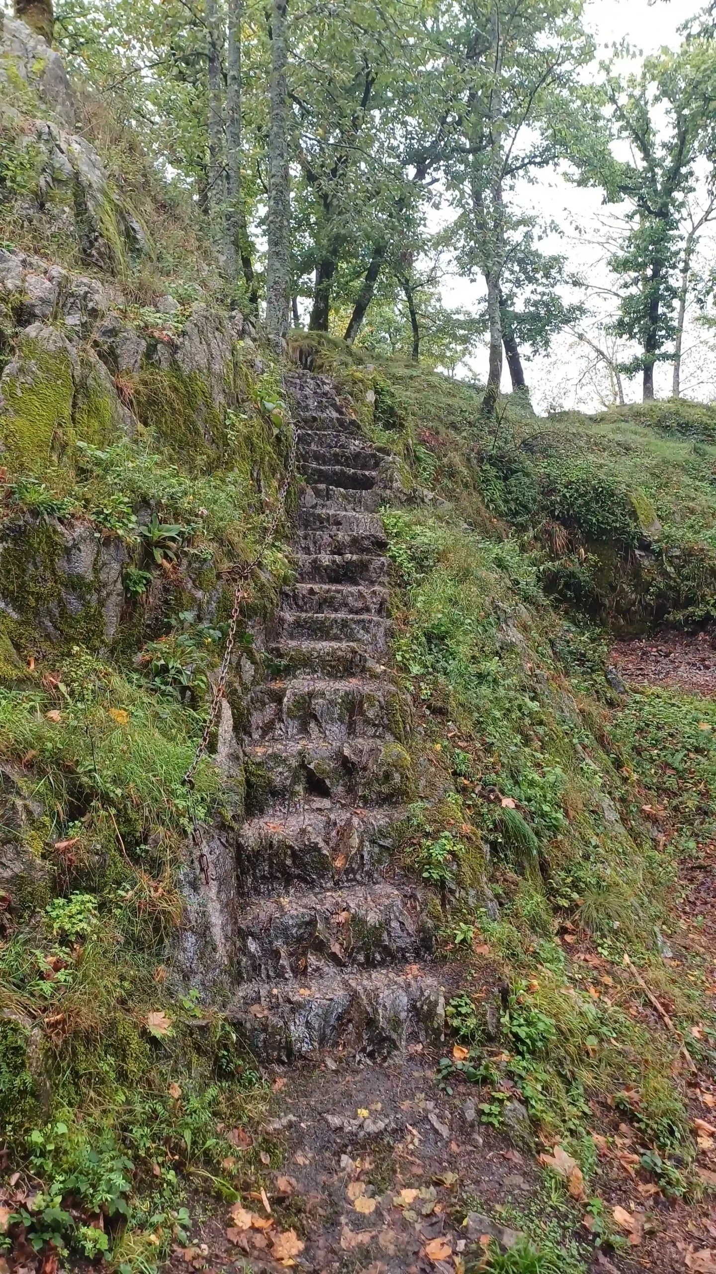 • Jour 1 : lac de Kruth et château de Wildenstein au Schossberg : À peine arrivé à destination, direction le chalet des places pour un pique-nique « au sec » avant de se rendre au bord du lac de Kruth pour une première randonnée. Les premiers paysages, même sous la brume, nous ont rappelé la beauté sauvage de cette région. Une bonne grimpette le long de la cascade du Bockloch pour se mettre en condition, ensuite un long sentier nous ramenant vers le barrage du lac pour ensuite grimper et découvrir les ruines du château de Wildenstein datant du 14ᵉ siècle. Le tout avec une météo contrastée entre nuages et averses « conséquentes ». Pas suffisant pour rafraîchir nos ardeurs et anticiper la randonnée du jour suivant devant un bon repas.