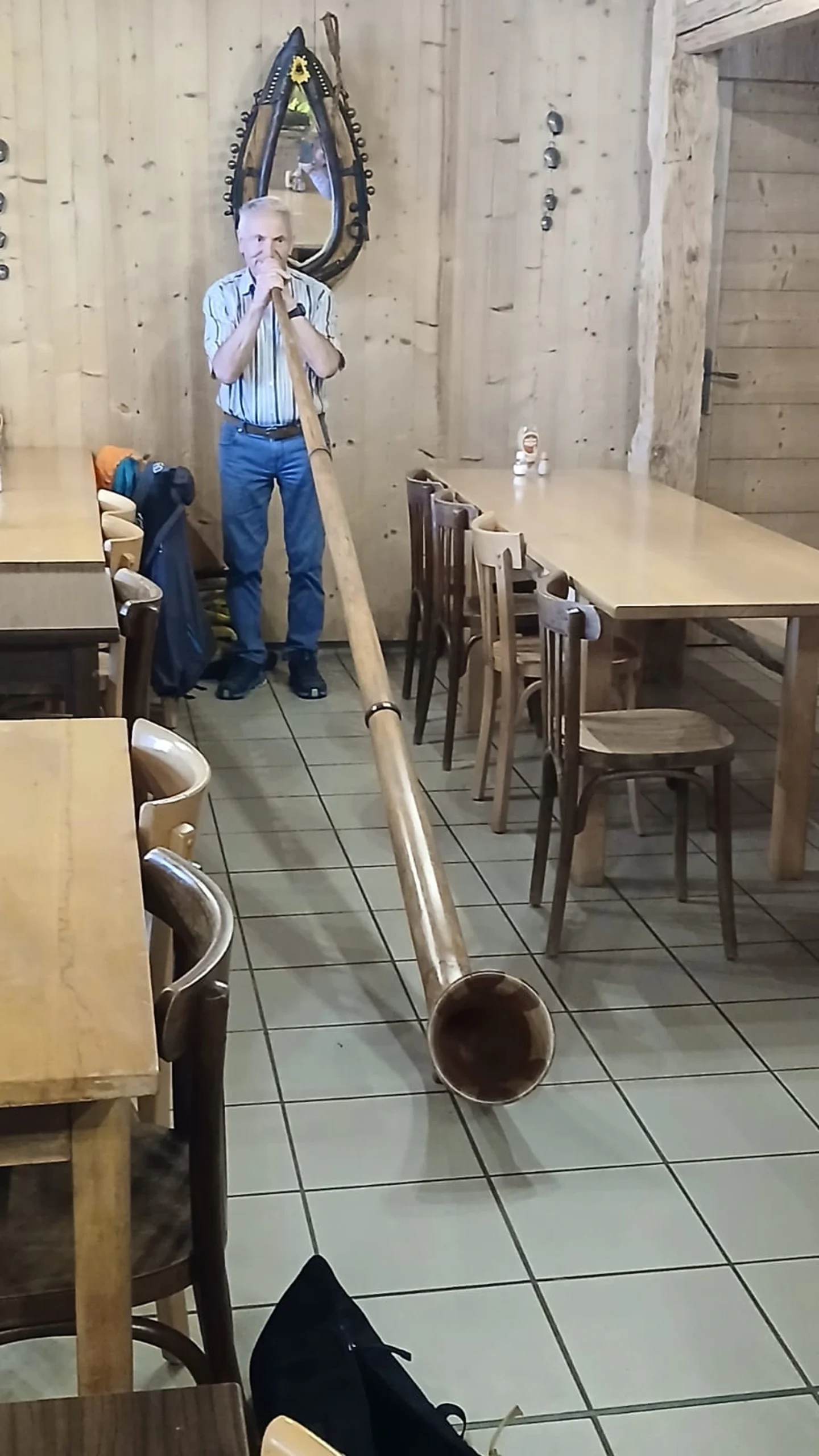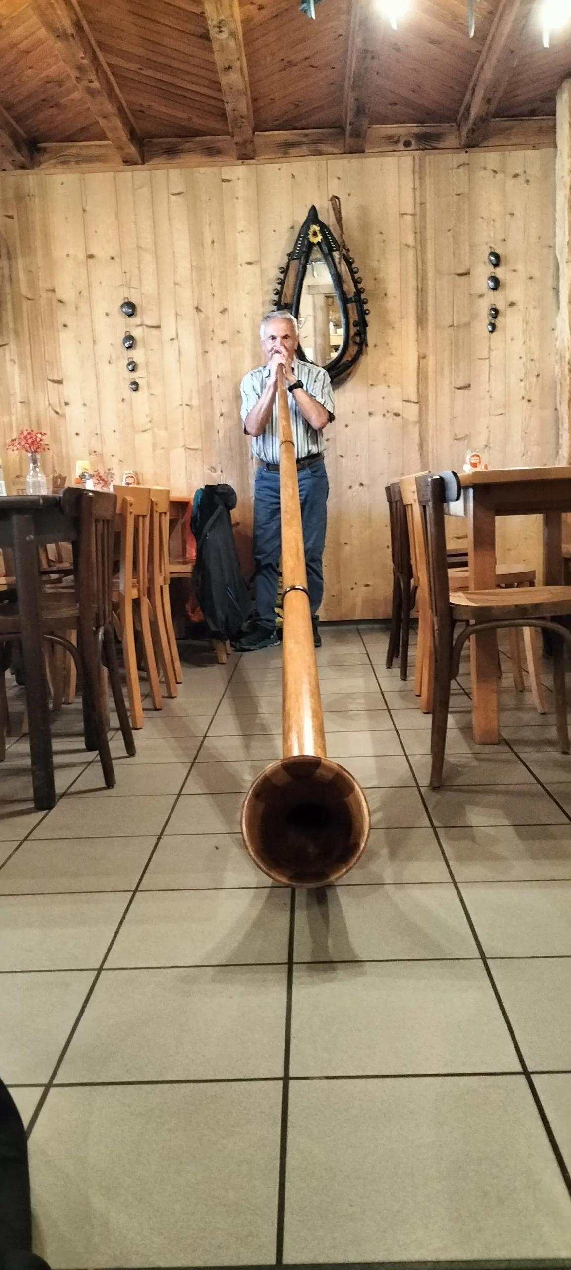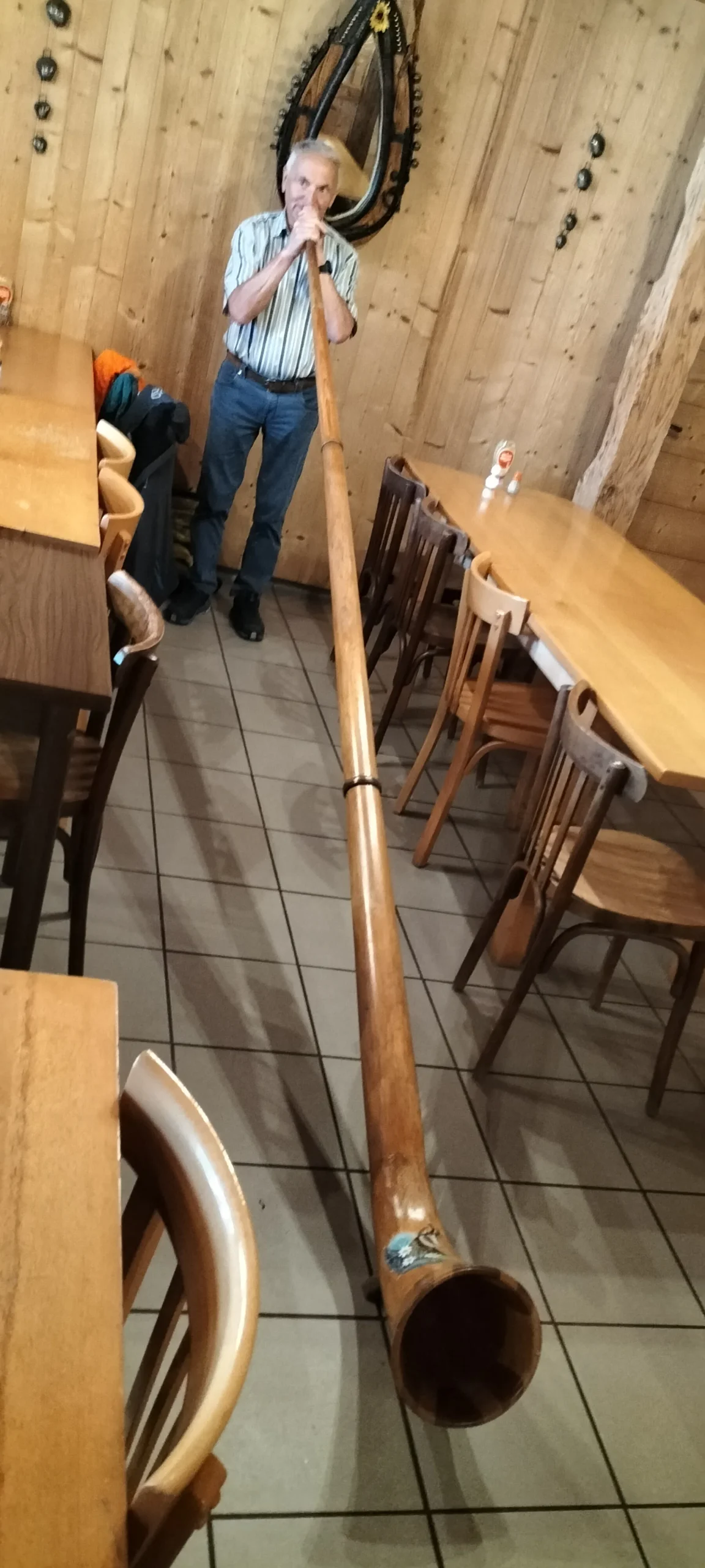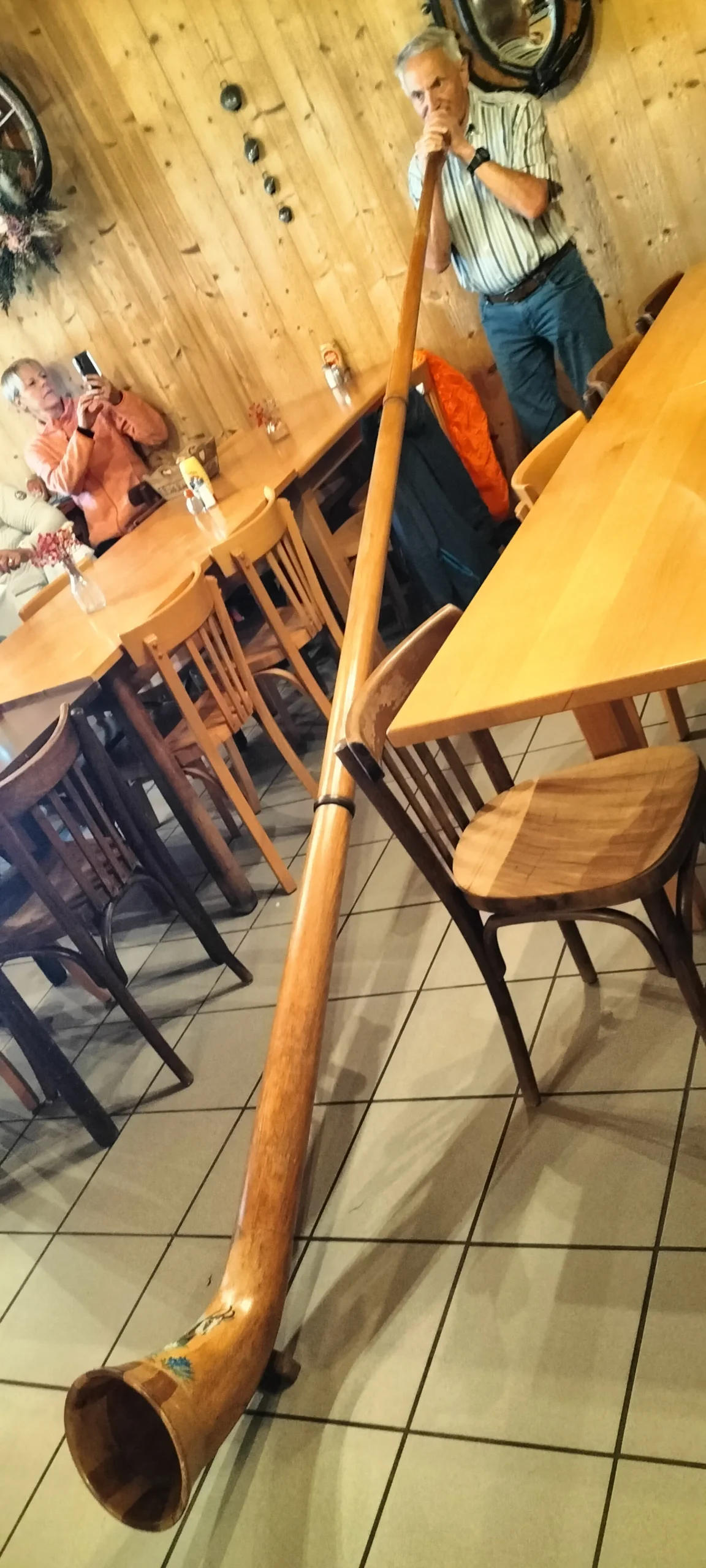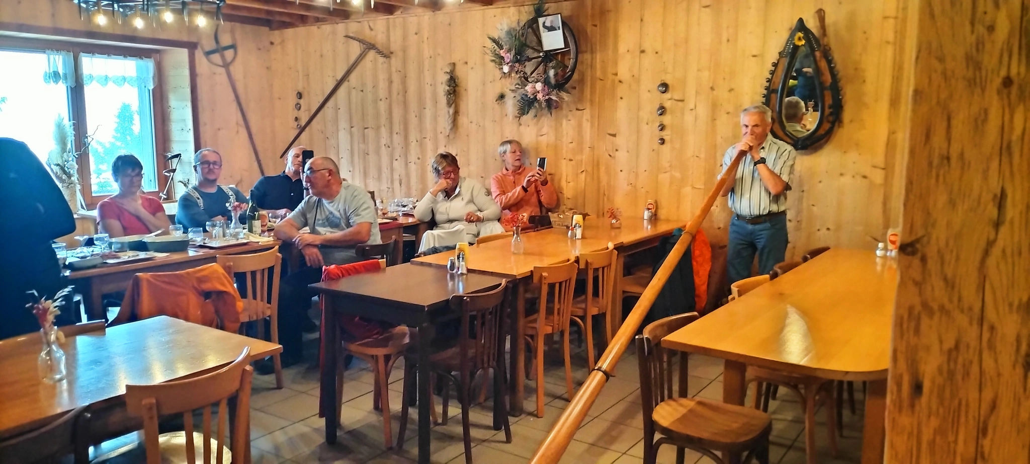 Pour les plus courageux, c’est mon ami « Joël » qui s’est chargé d’emmener le groupe complété par quelques membres du club Vosgien, tout aussi motivé. Pour le reste, une visite de l’atelier de Gérard, passionné de restauration de limonaires et d’appareils de musique mécanique, a émerveillé les personnes présentes. Le midi, un excellent et copieux repas vosgien a permis à chacun de se retrouver au sommet du Drumont dans la ferme auberge du même nom. Petite surprise, puisque Gérard nous a fait une petite démonstration du cor des Alpes avec ses sonorités si particulières.