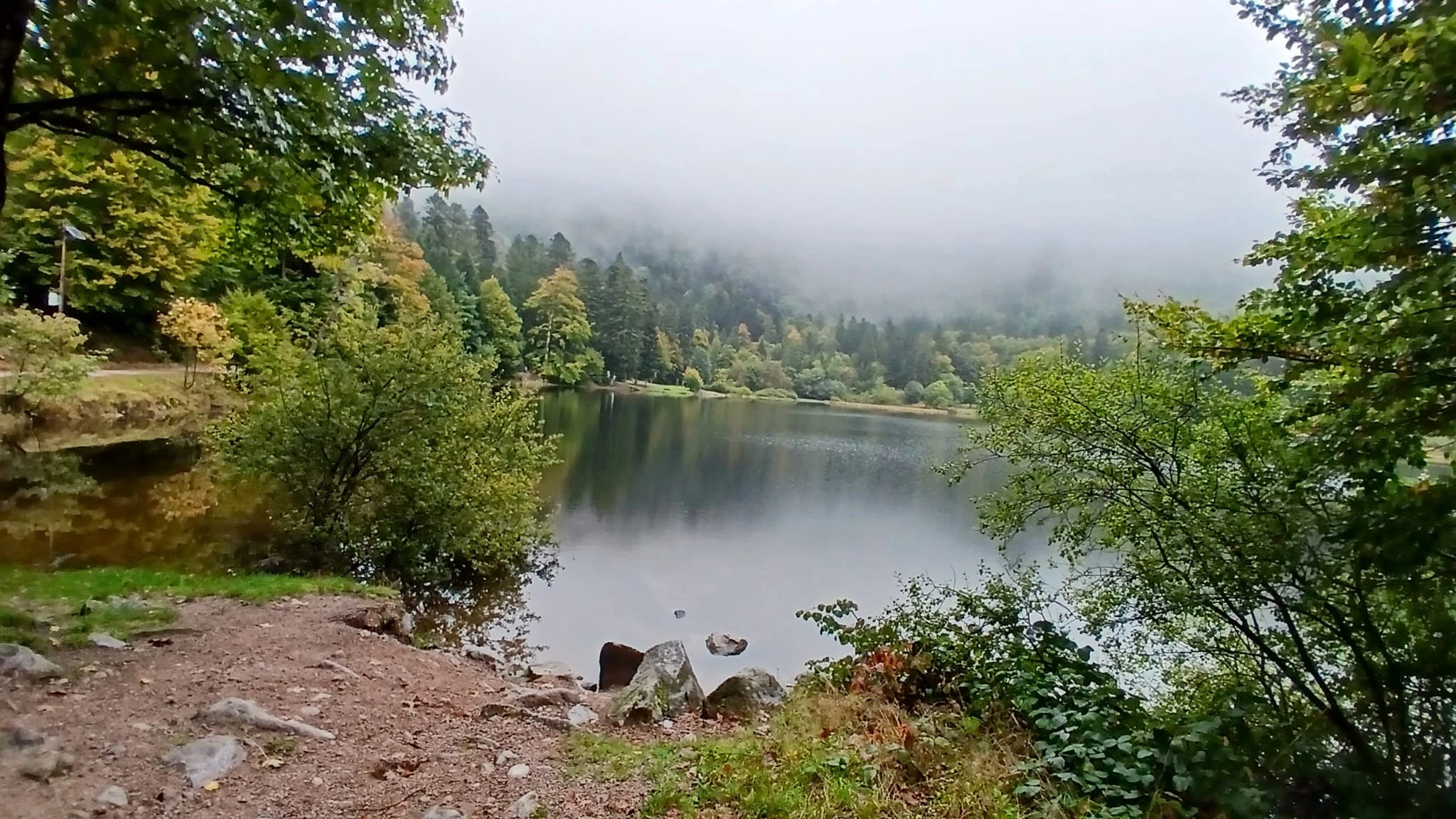 • Jour 3 : entre balade forestière et achats gourmands : Côté météo, cette dernière journée nous a laissé un peu de répit. Tout du moins, le matin. Direction le lac de Blanchemer pour une dernière randonnée d’un peu plus de 2 heures à travers une magnifique forêt, le long d’un petit torrent bien agité en cette période pluvieuse et surtout, un lac donnant à cet endroit une ambiance ressemblant aux paysages emblématiques du Canada. Le silence, uniquement troublé par le bruit de l’eau, a donné à cette randonnée une sensation de plénitude toute particulière, renforcée par les premières couleurs d’automne.