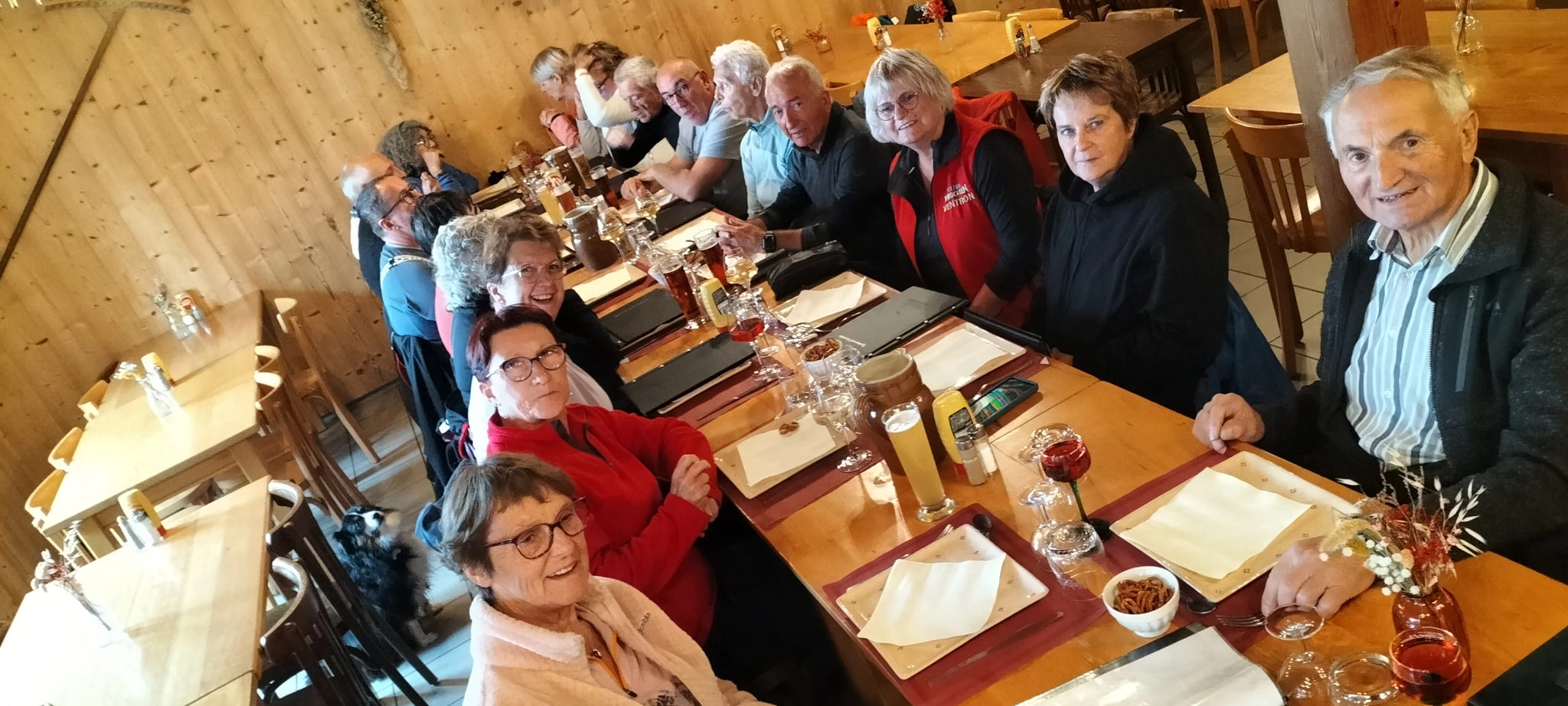 Suite à cette journée chargée, la soirée s’est poursuivie avec un repas pris en commun avec nos amis du Club Vosgien de Ventron au chalet des Places bien chauffé pour l’occasion.