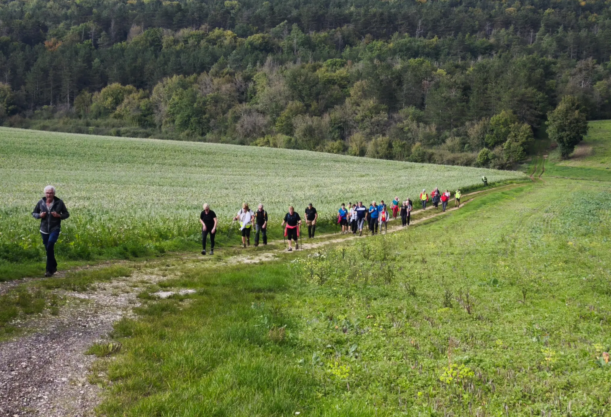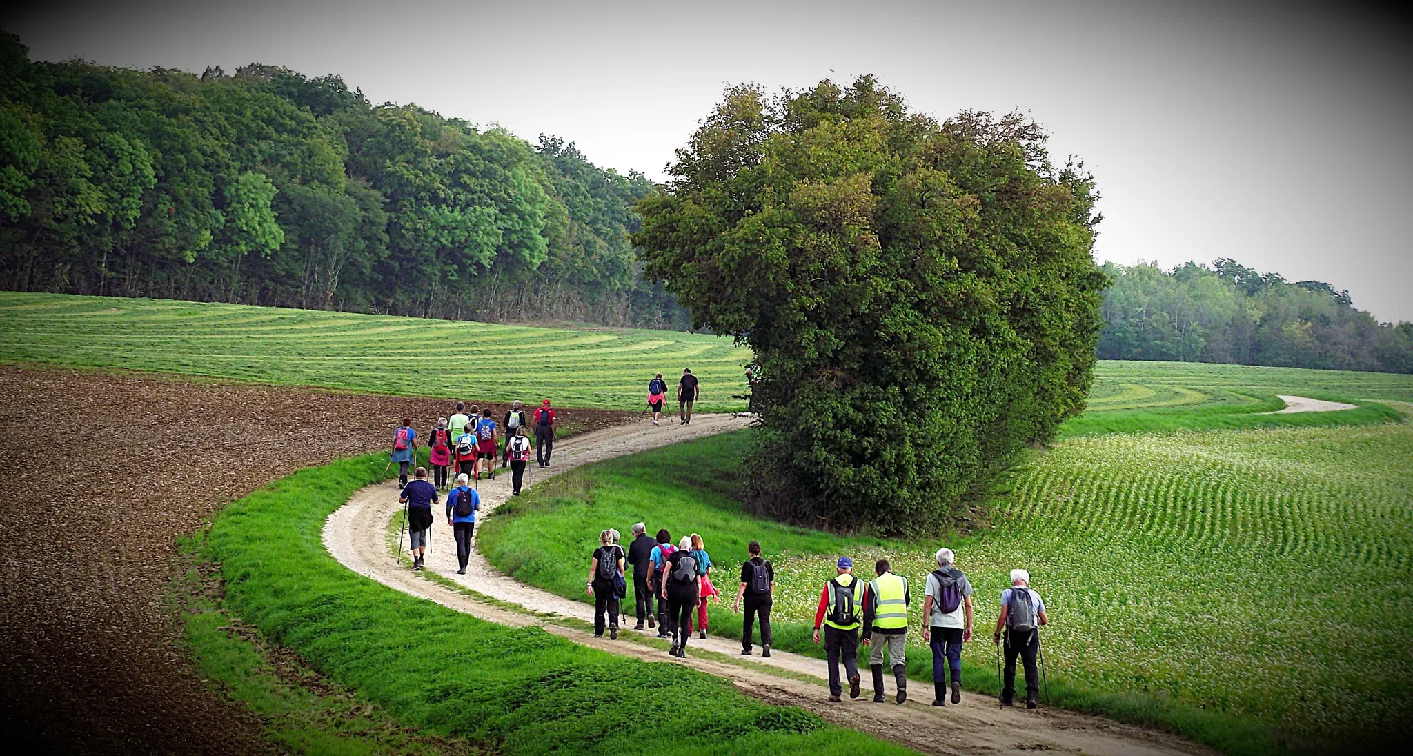 Un chemin de campagne nous conduit jusqu’au Bois de Lardigny. Plus loin dans la forêt domaniale de Marsois un passage encombré par végétation basse ralentit notre progression. Notre circuit se poursuit sur sentiers vallonnés très agréables à parcourir. L’arrivée sur les hauteurs de Thivet nous offre une belle vue panoramique sur le village et la vallée de la Marne.
