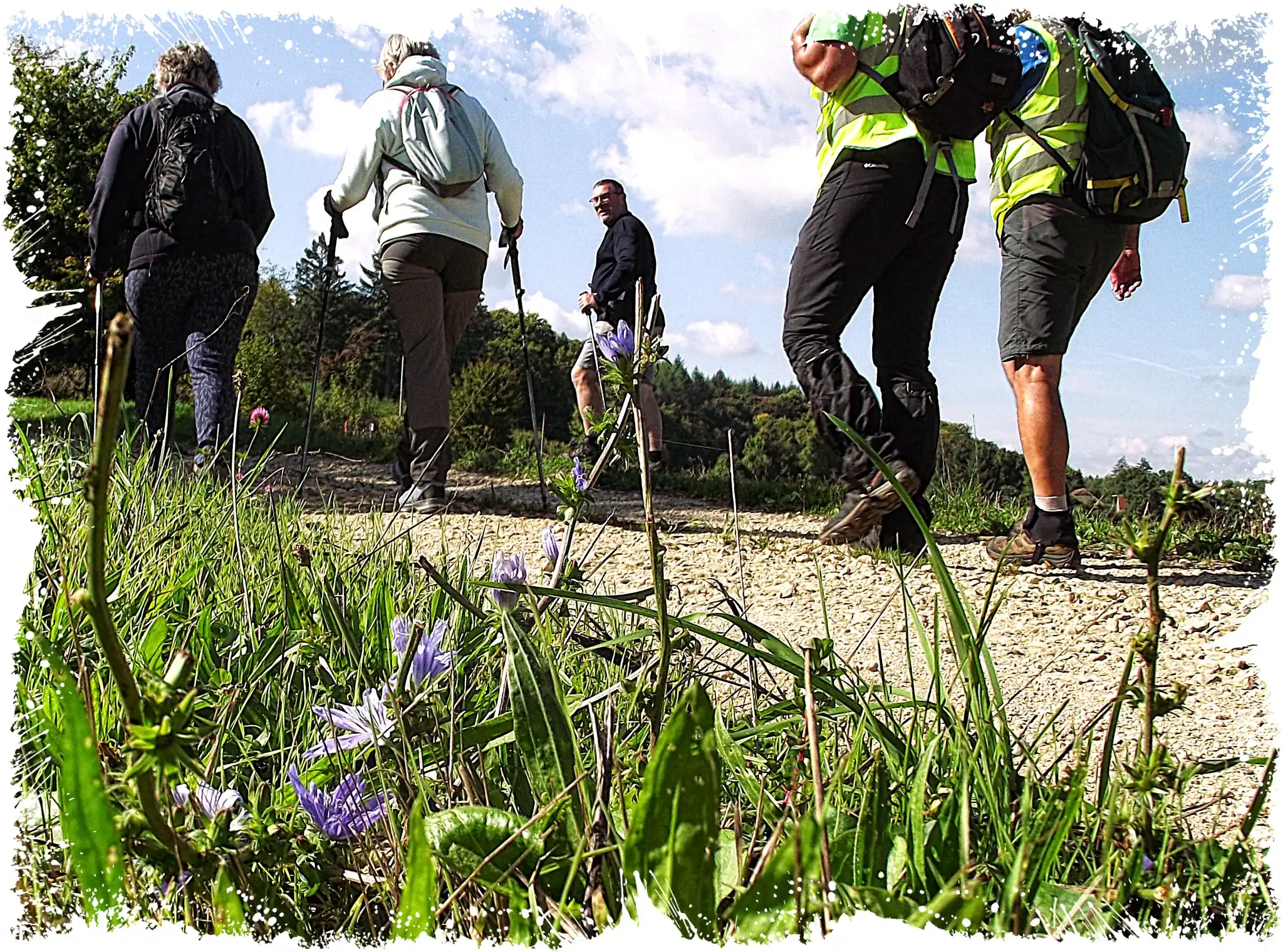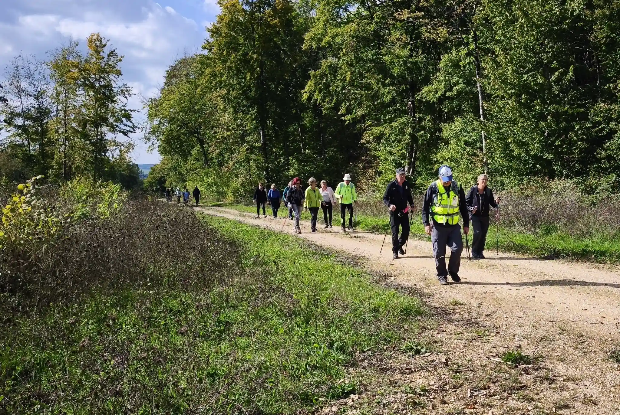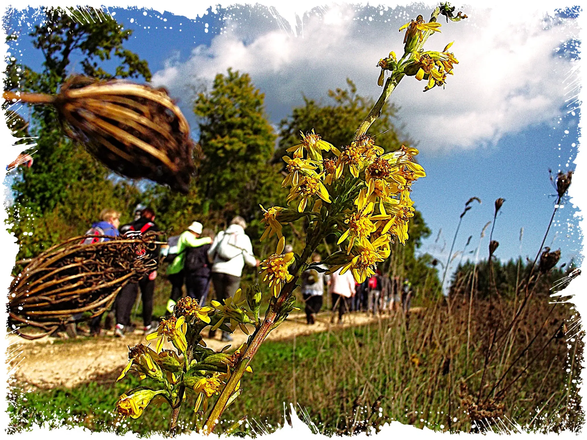 Le groupe s’est élancé sur les sentiers bordés de champs et de haies, profitant des couleurs qui commencent doucement à se transformer. Les rayons du soleil mettaient en valeur les herbes hautes, les lisières dorées et les derniers papillons de la saison.
