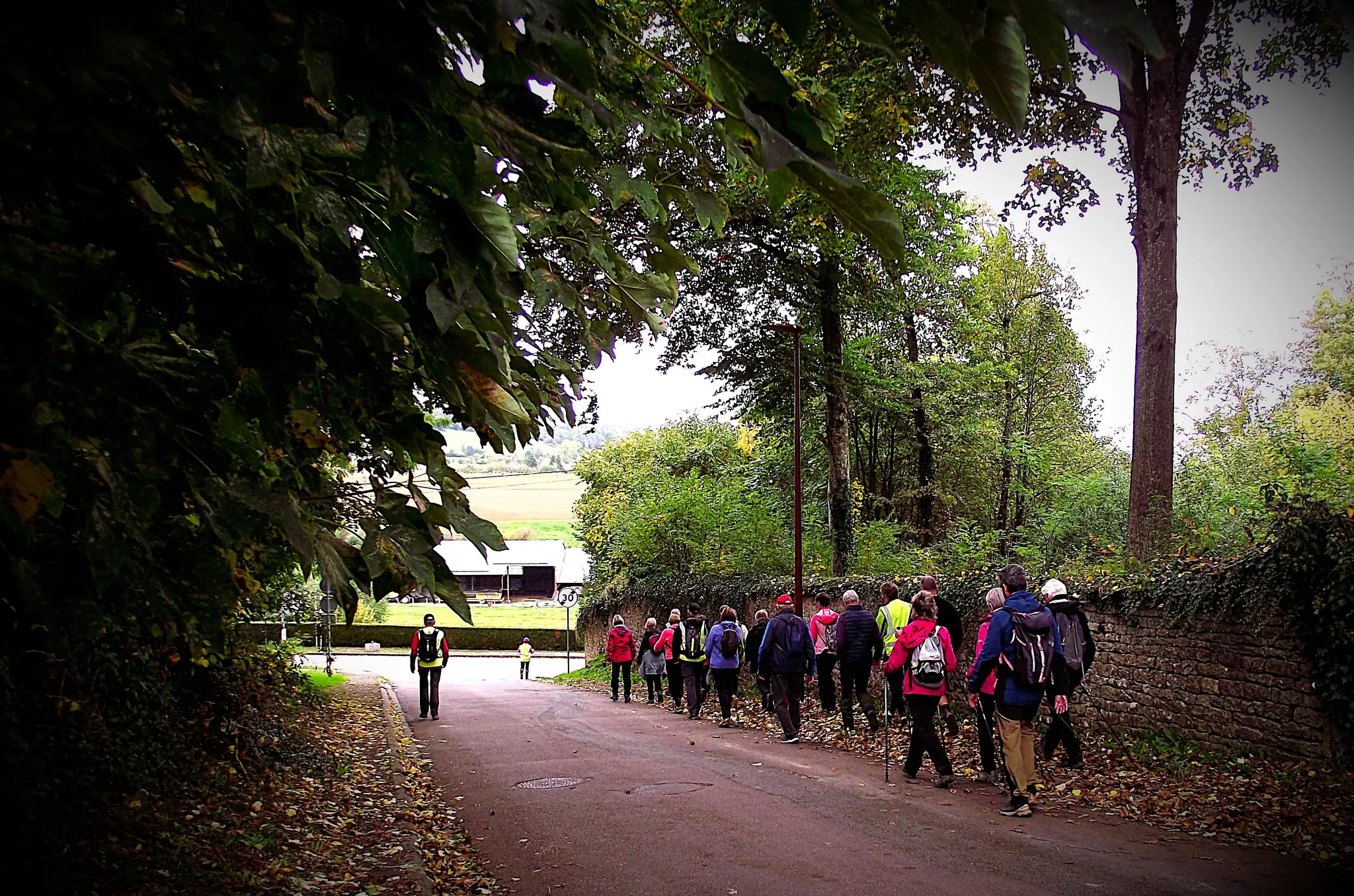 Le départ de cette marche tonique s’est fait sous un ciel bien gris et… une forte odeur venue d’ailleurs qui n’a laissé personne indifférent ! Heureusement, les 29 marcheurs, fidèles et courageux, ont vite trouvé leur rythme et laissé derrière eux ces effluves « champêtres » pour profiter pleinement du parcours.