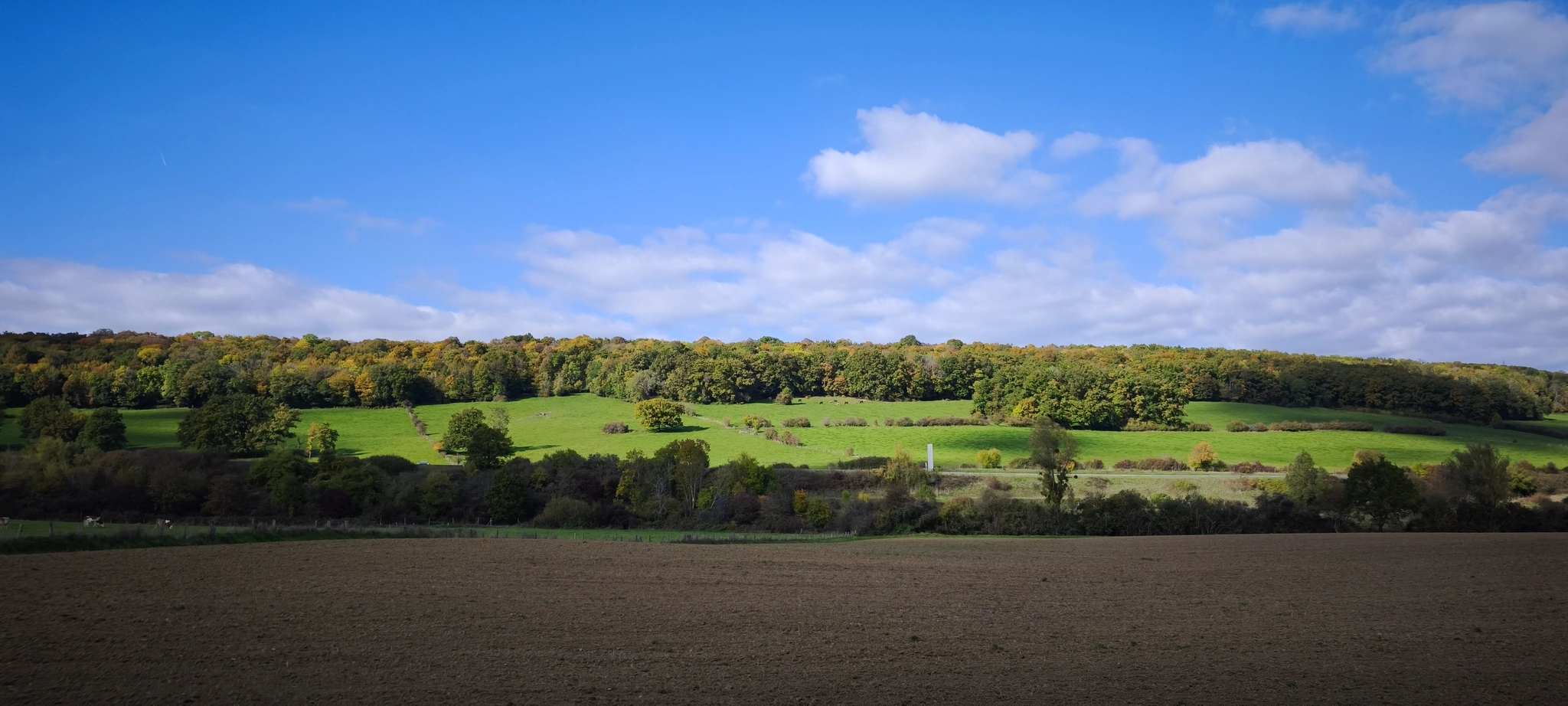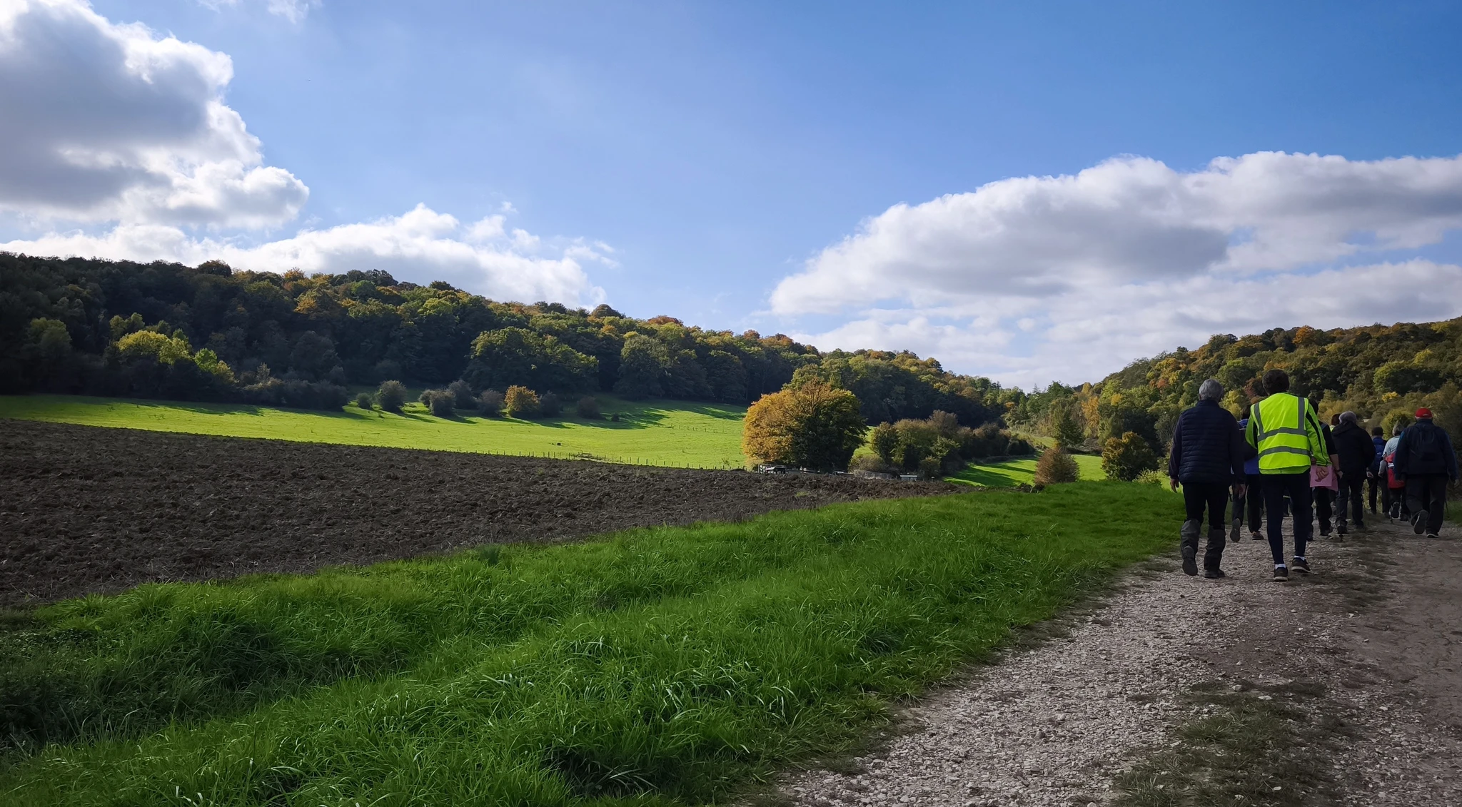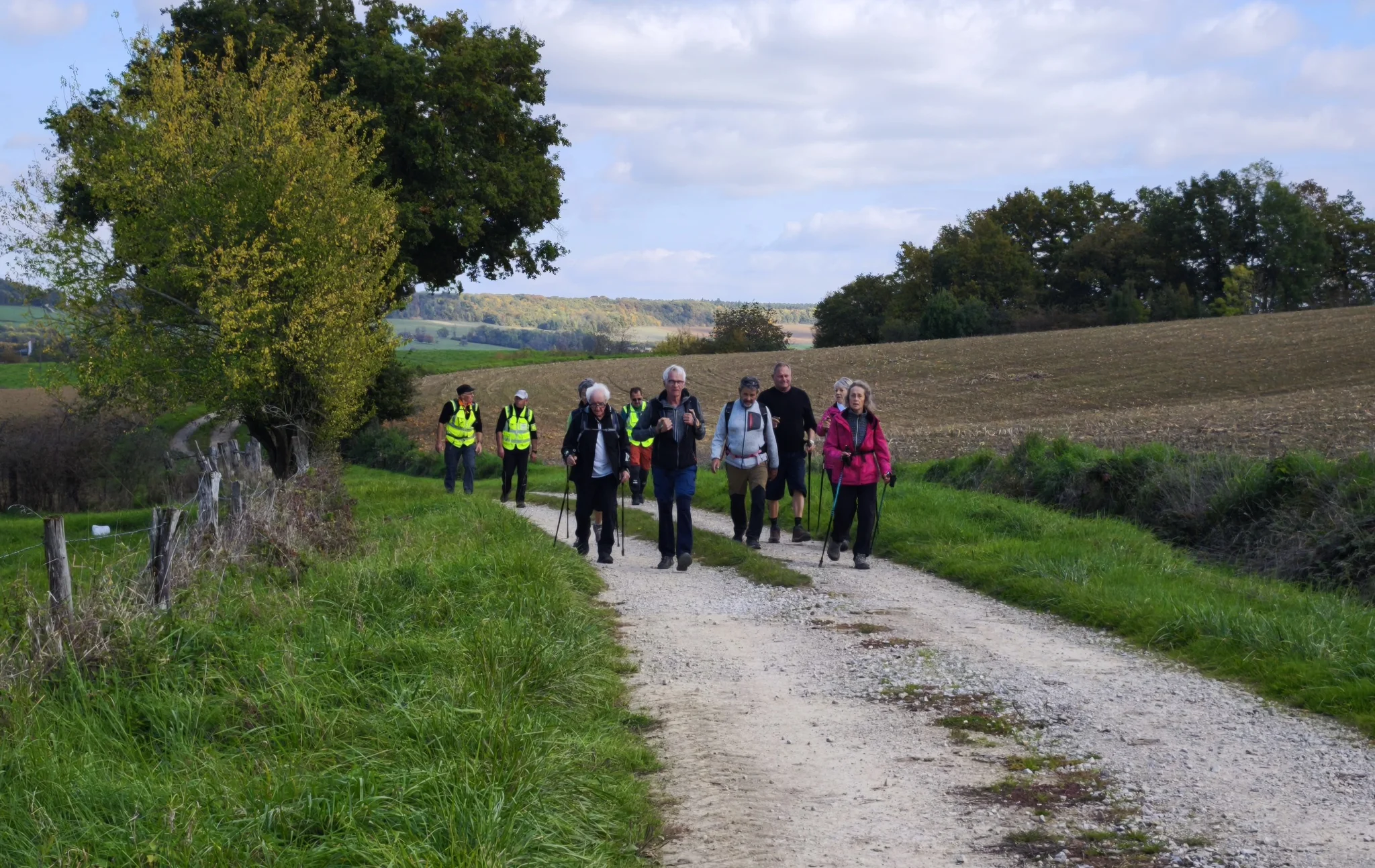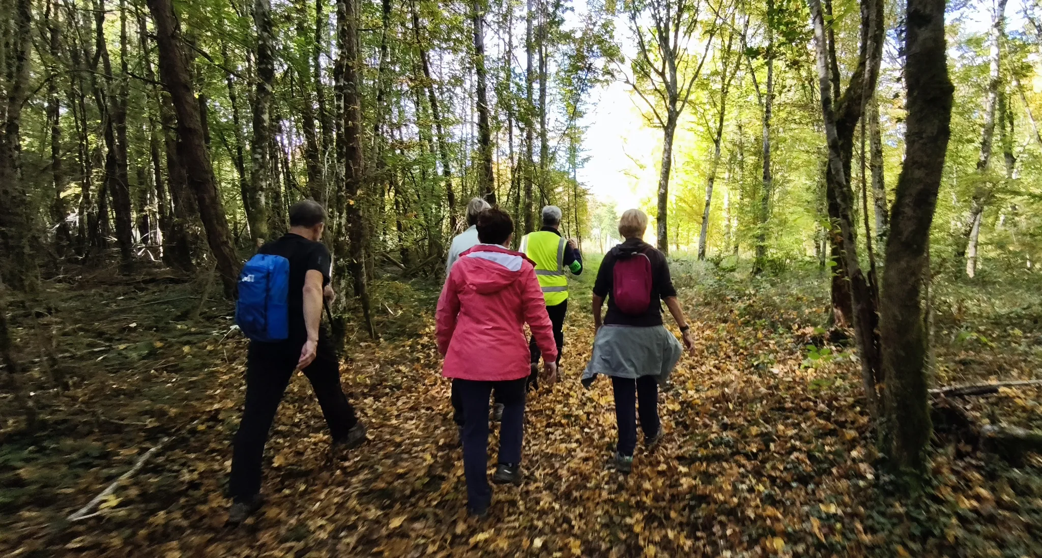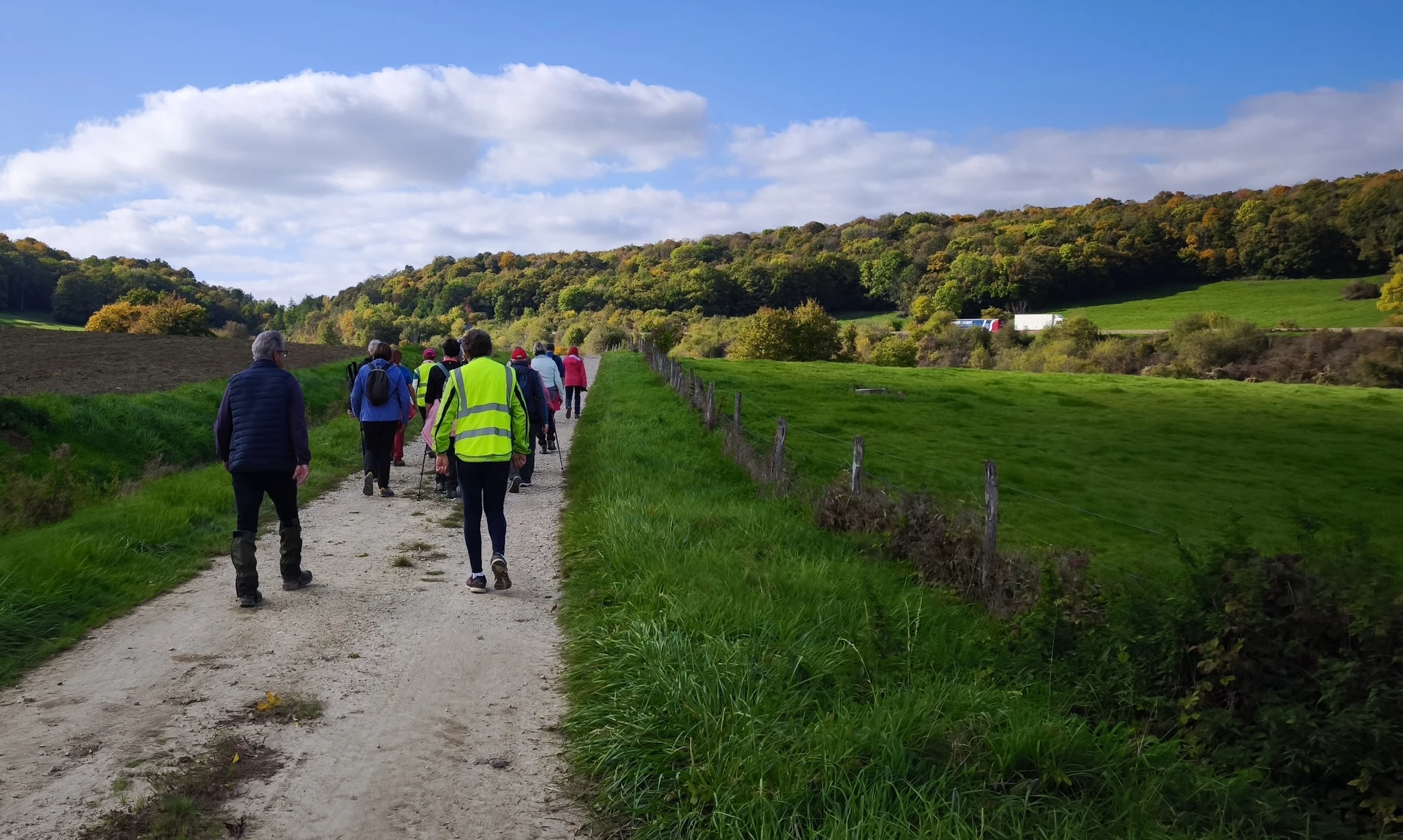 Au fil des kilomètres, le ciel s’est peu à peu éclairci, laissant apparaître de belles éclaircies puis un soleil généreux qui a accompagné la seconde partie de la sortie. Les sentiers forestiers et chemins de campagne, baignés d’une douce lumière automnale, ont révélé toute la beauté des paysages du moment : feuillages dorés, tapis de feuilles, et cette ambiance paisible typique d’octobre.