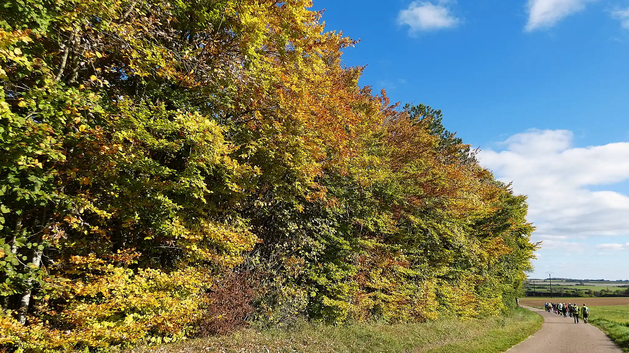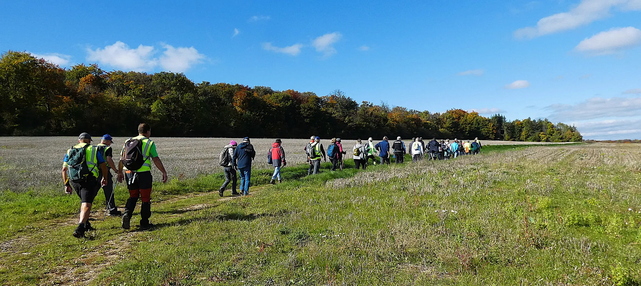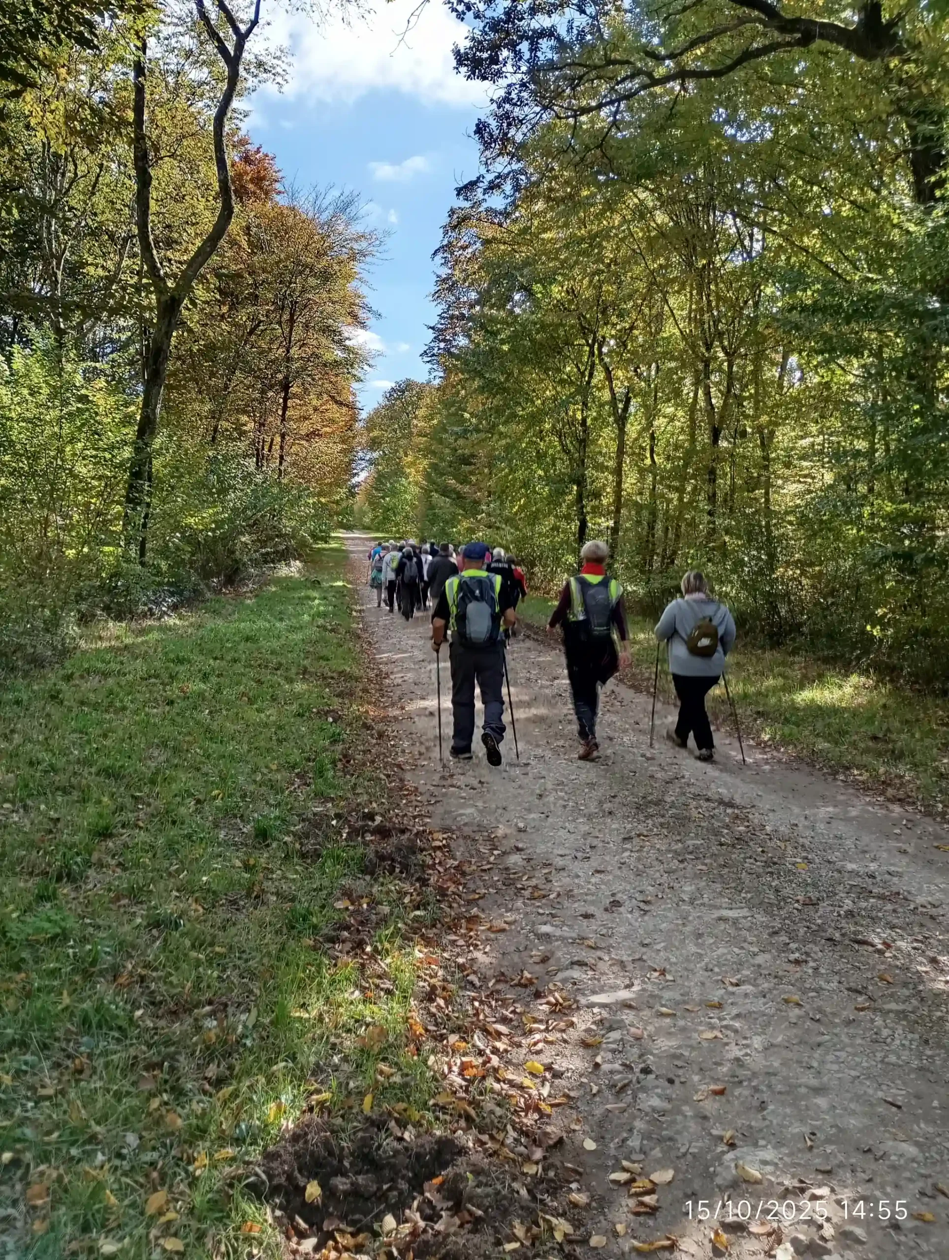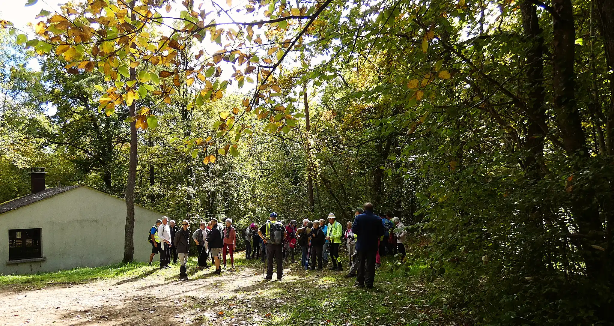 Le soleil et les bois environnants se sont parés de leurs plus beaux atouts pour notre sortie champêtre. Le panel de couleurs différentes des feuilles donne un superbe tableau auquel on ne se lasse pas, et nous incite à la méditation. On constate déjà la chute des feuilles dans les bois, il faut admettre que nous sommes à la mi-octobre et que nous n’avons pas encore subit de gelées matinales sauf peut-être dans certains vallons comme à Noidant par exemple……