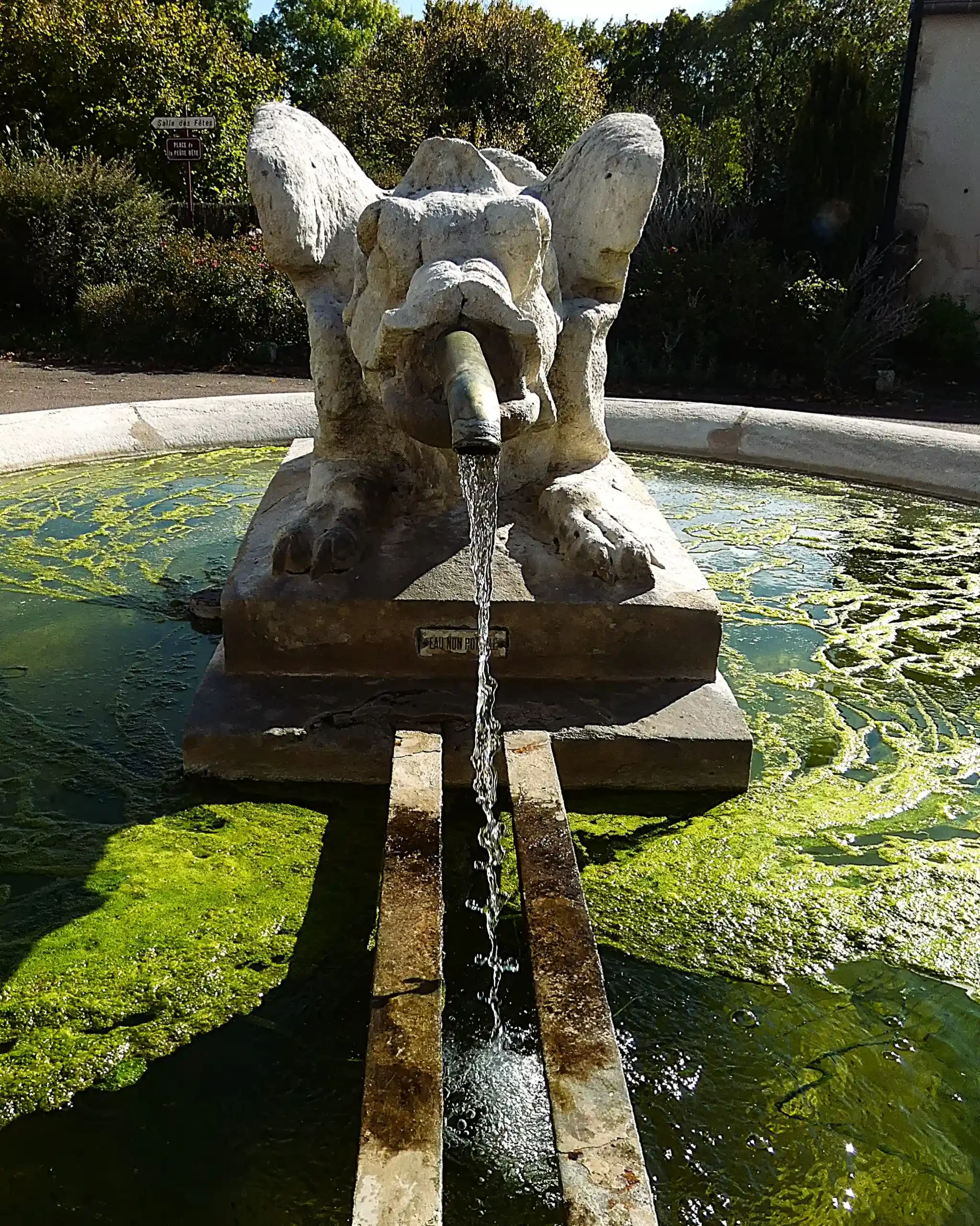Aujourd’hui rassurons-nous de la « peûte bête » ne subsiste que la sculpture qui orne la fontaine au centre du village pratiquement au pied de l’église Saint Didier.