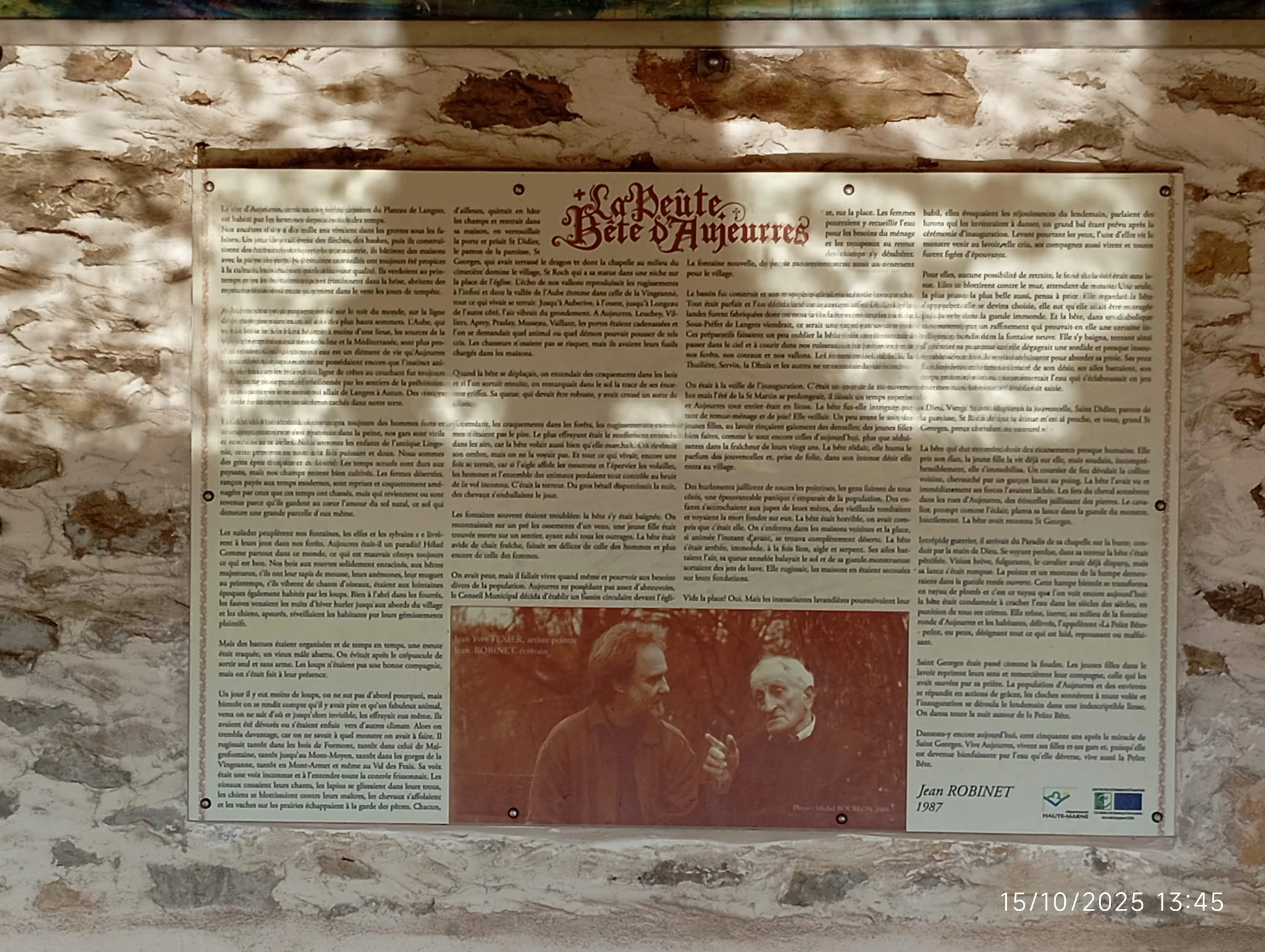 Dès que l’on prononce le nom d’Aujeurres automatiquement on fait le rapprochement avec la « Peûte bête » légende qui a été transmise aux différentes générations et qui a véhiculé des peurs justifiées ou non, à chacun sa croyance.