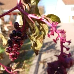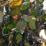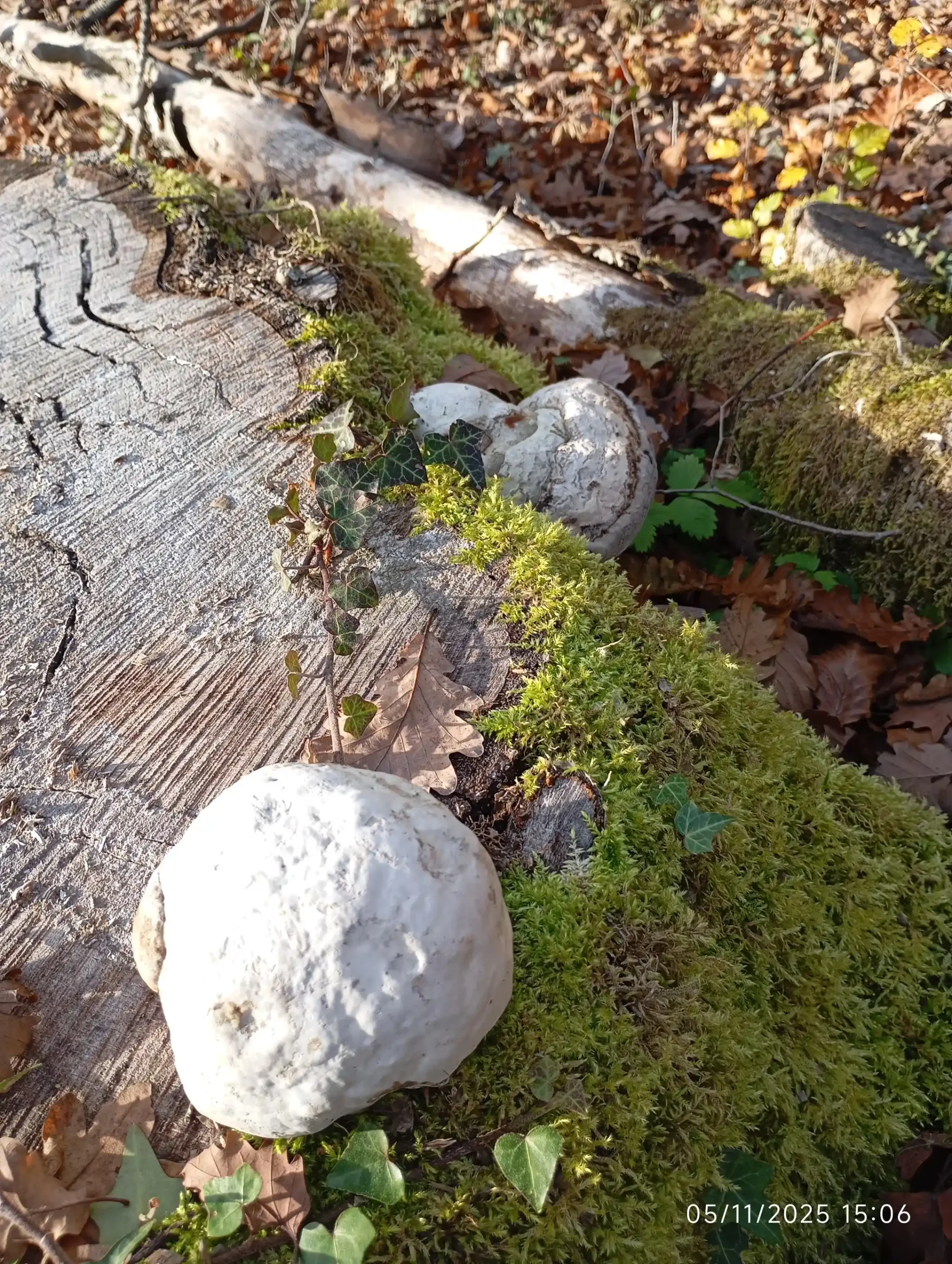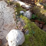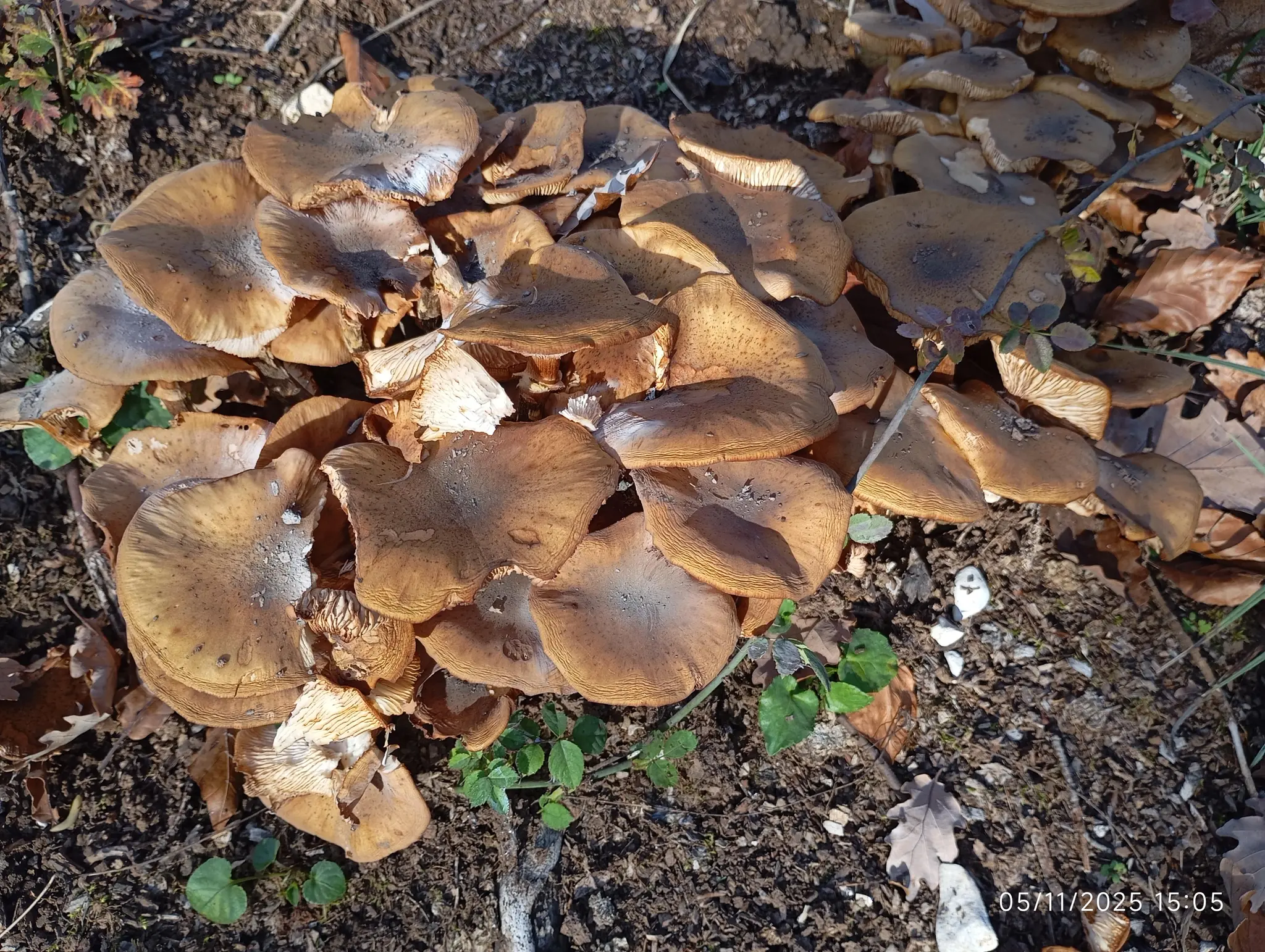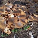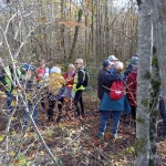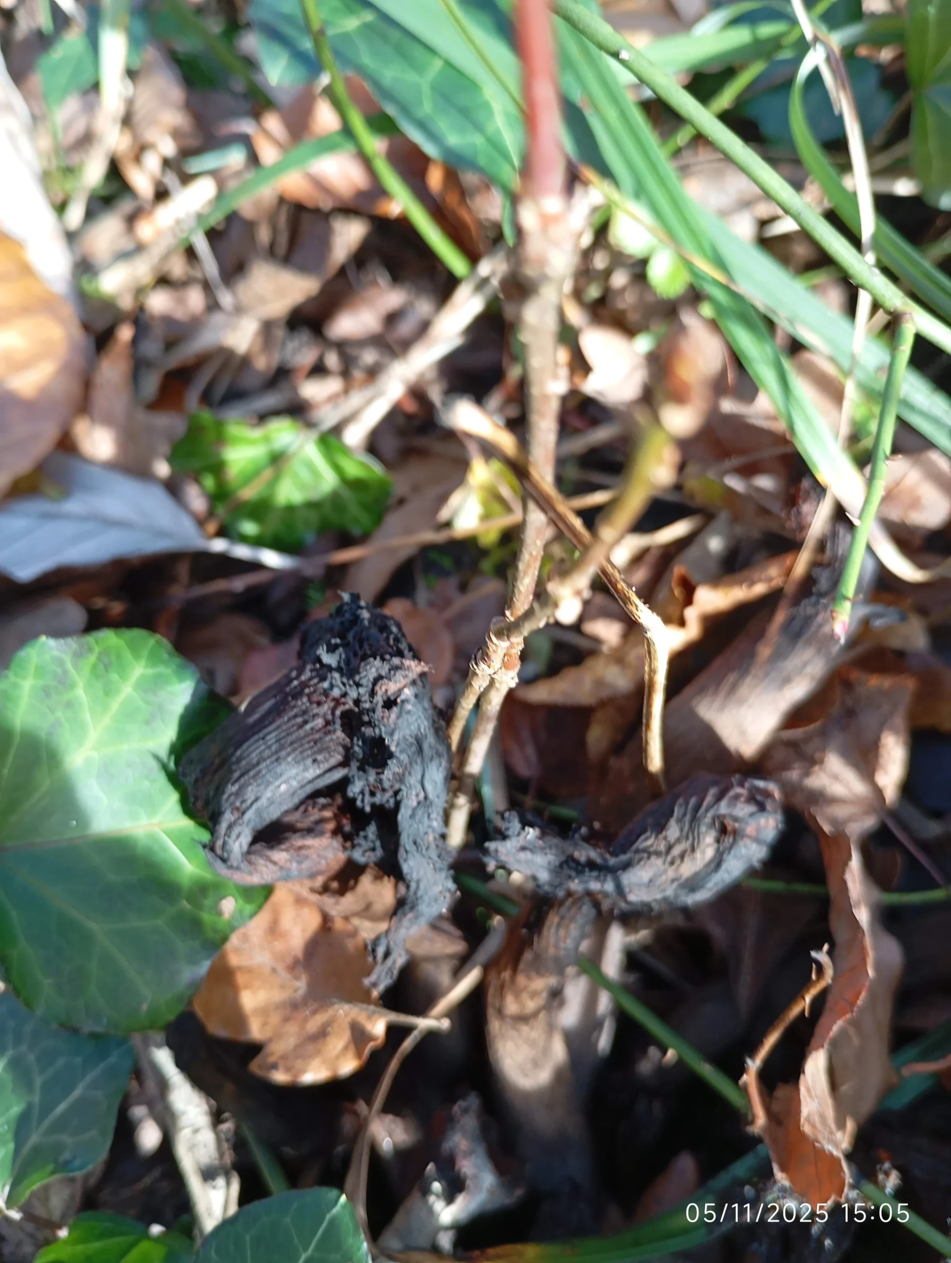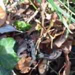Lors de notre déambulation Mireille découvre des champignons, des trompettes de la mort.
