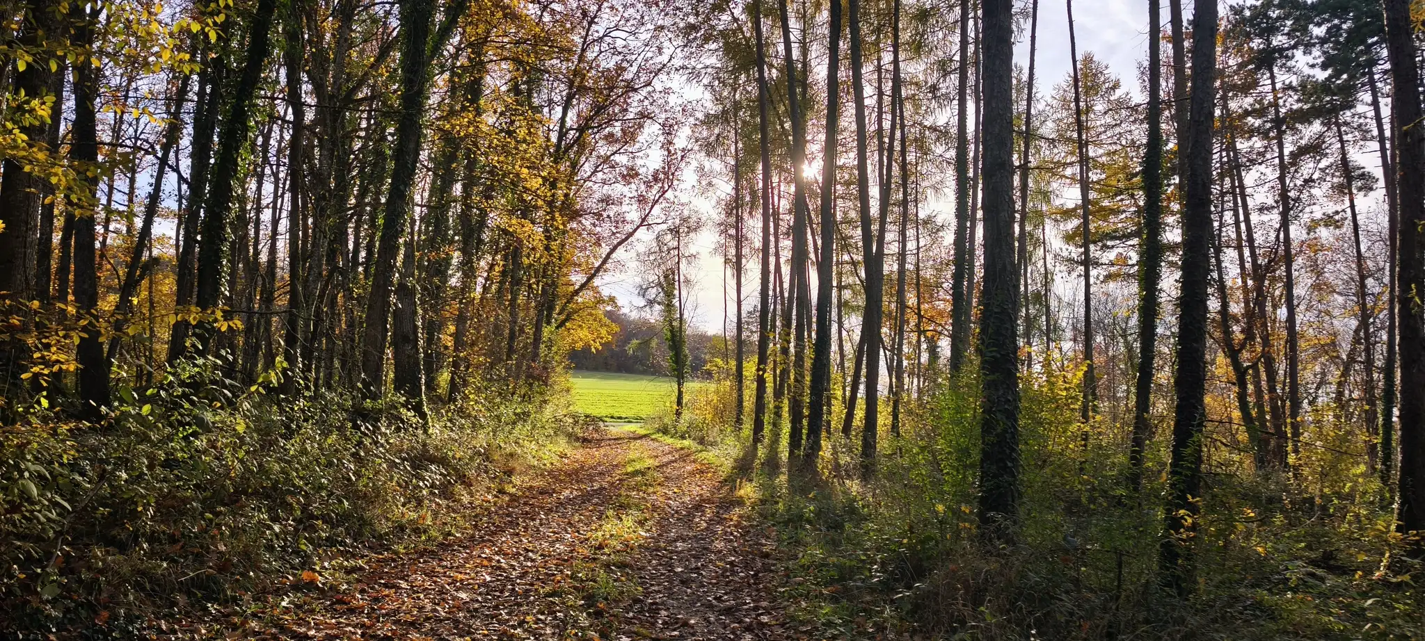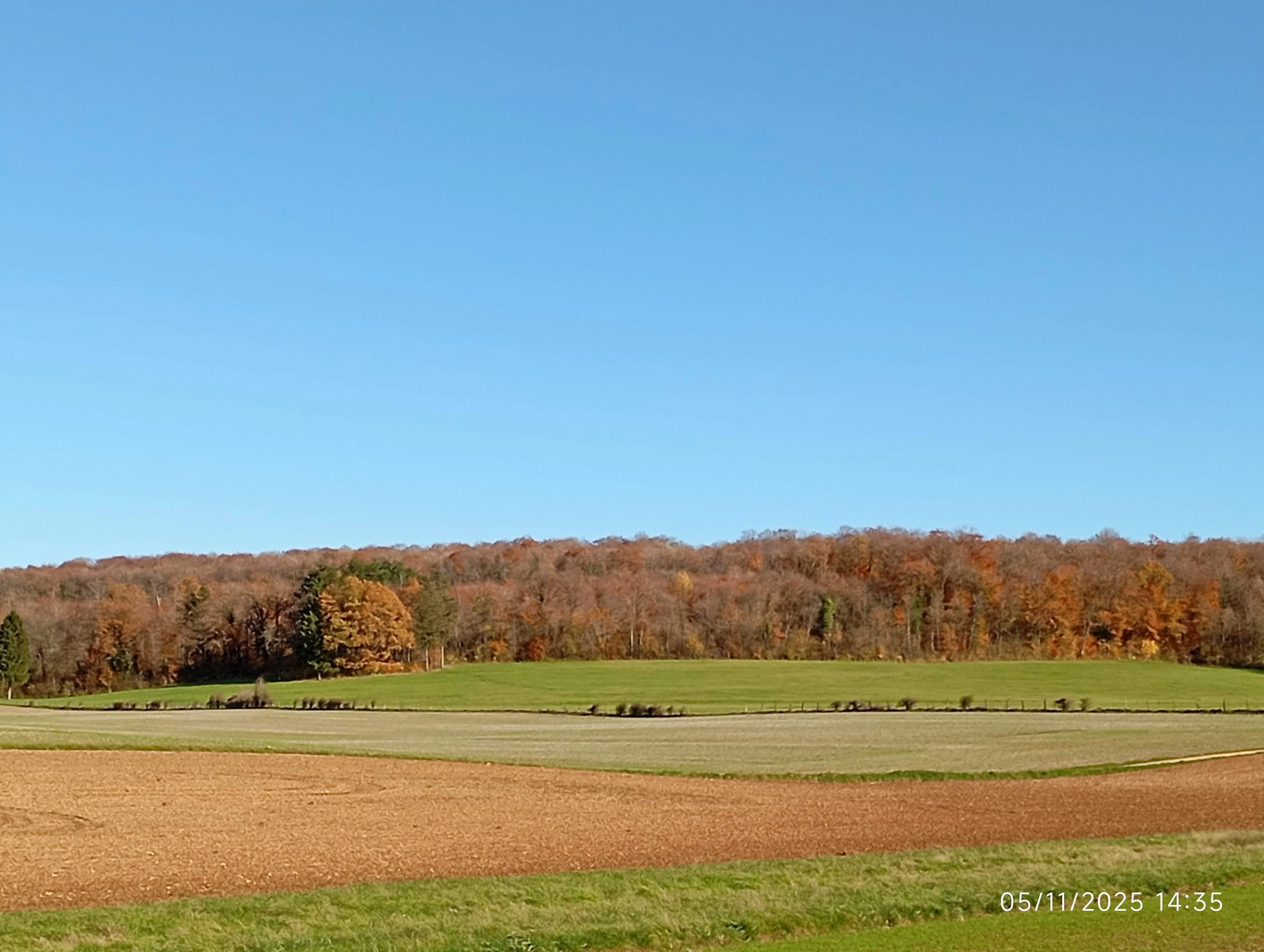 Après avoir traversé une partie du bois de Montgessey, nous nous retrouvons sur le plateau de Faverolles pour bénéficier d’un beau point de vue en direction du nord-ouest et surtout des dernières couleurs chatoyantes des forêts.