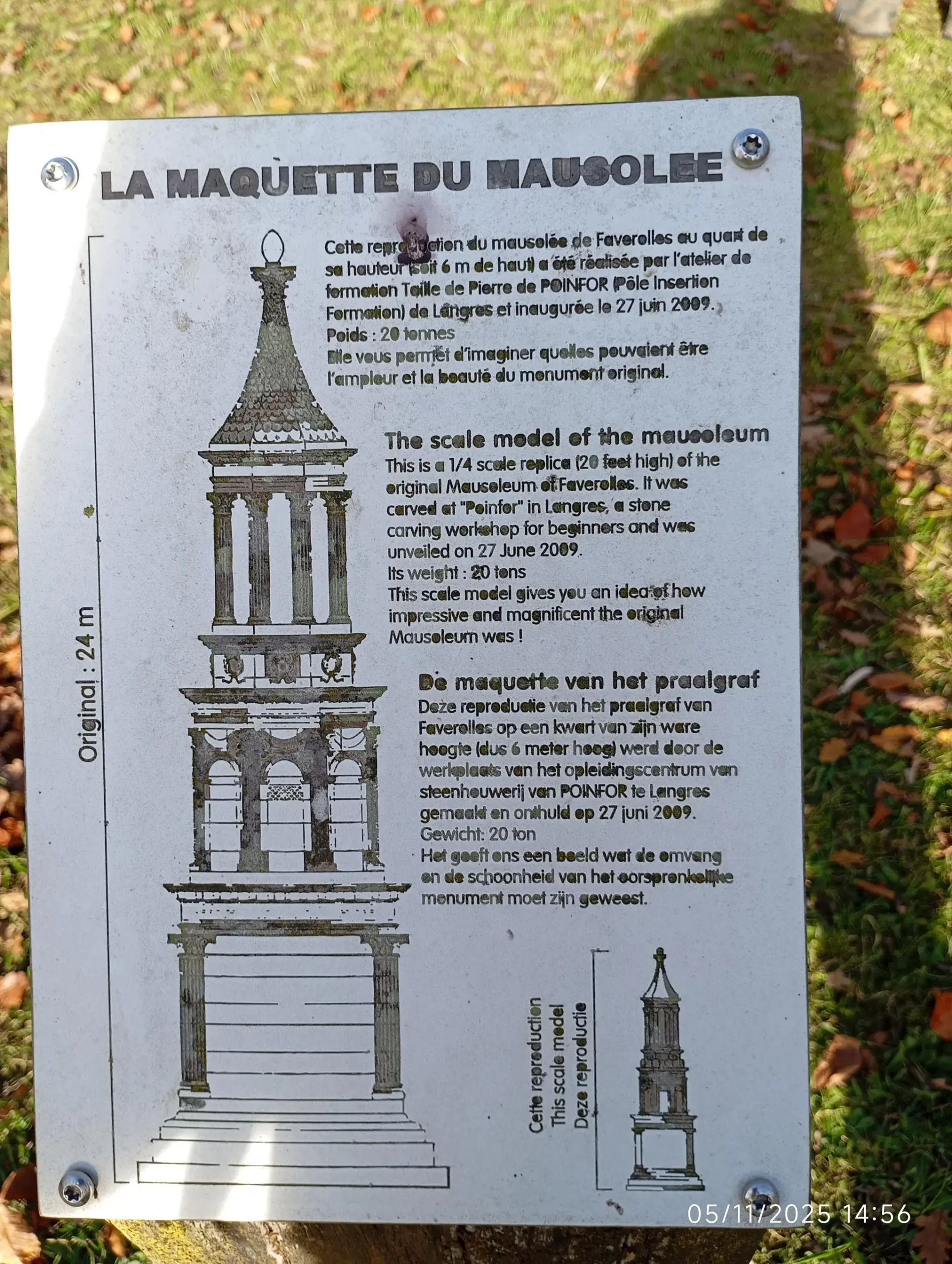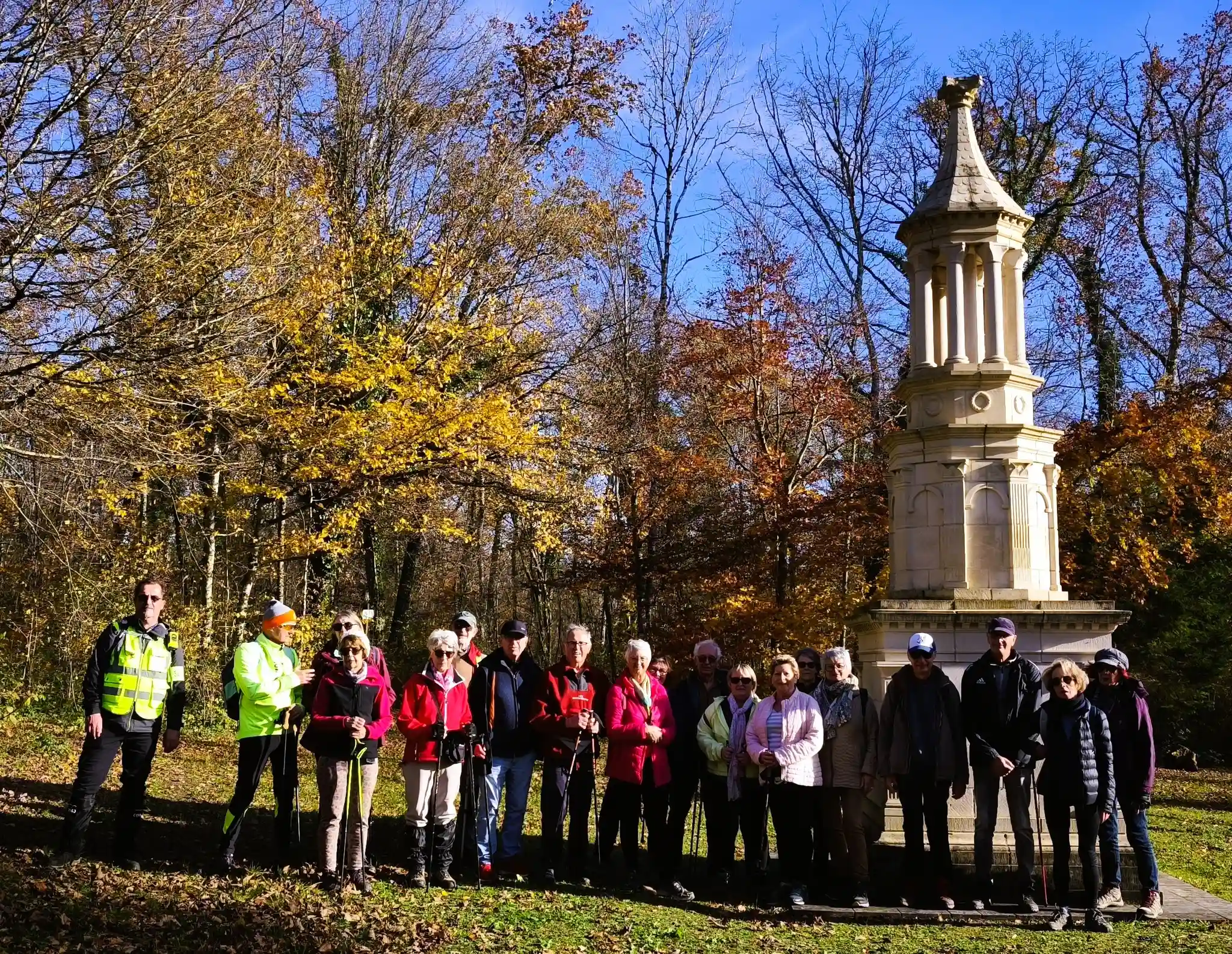 Malgré le vent soutenu, le soleil d’automne nous réchauffe, c’est par une température de 16 degrés que nous nous dirigeons vers le mausolée de Faverolles.