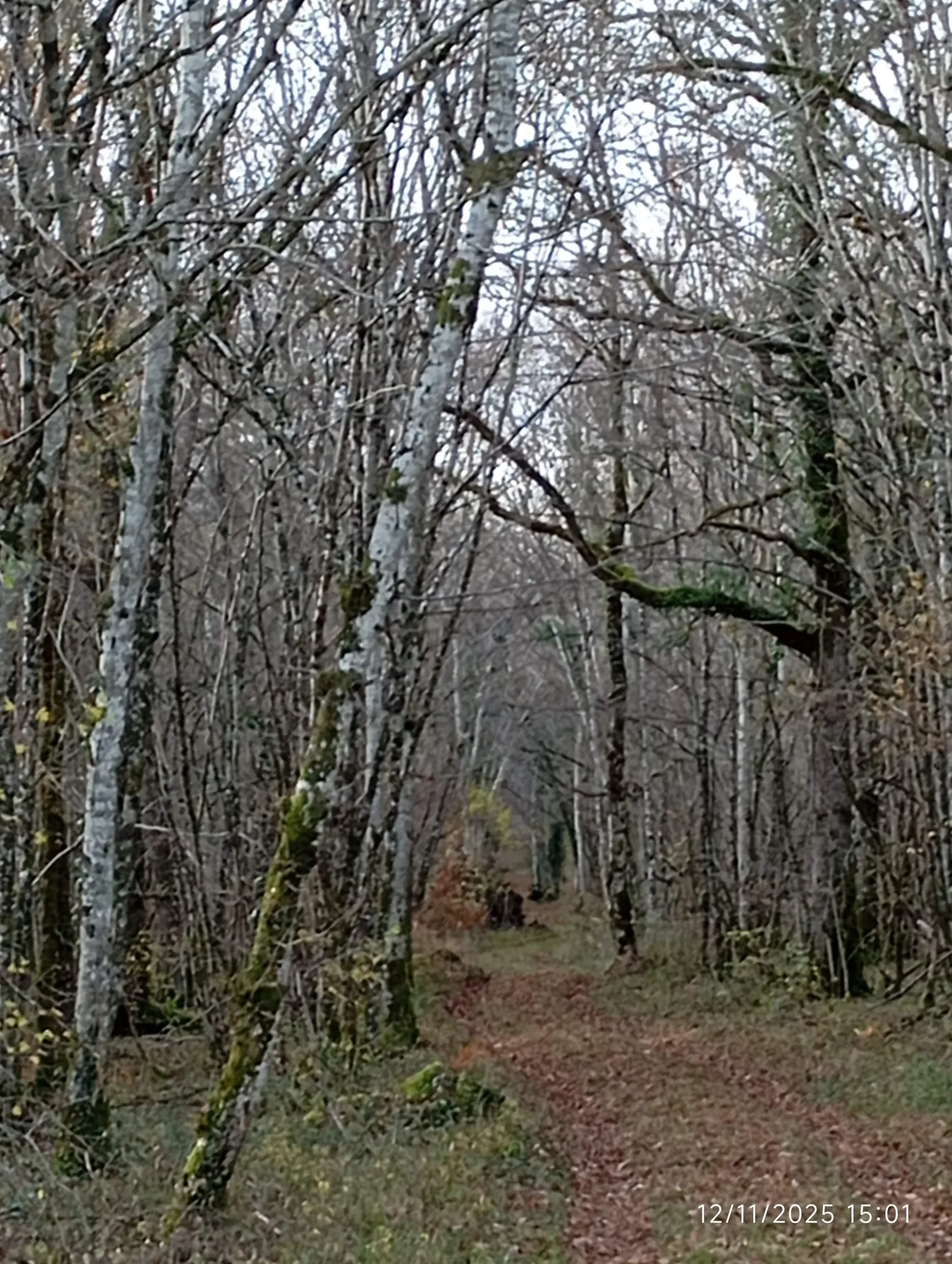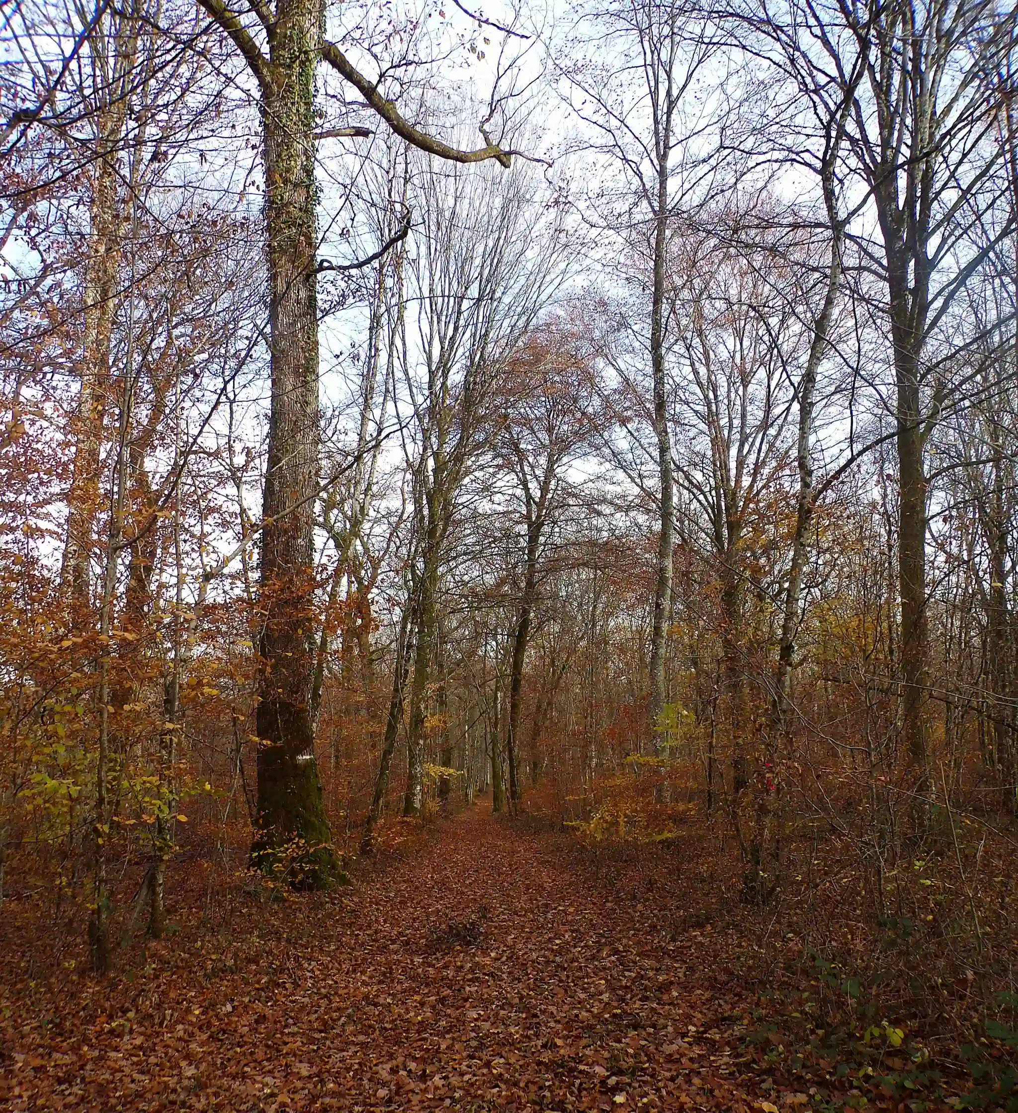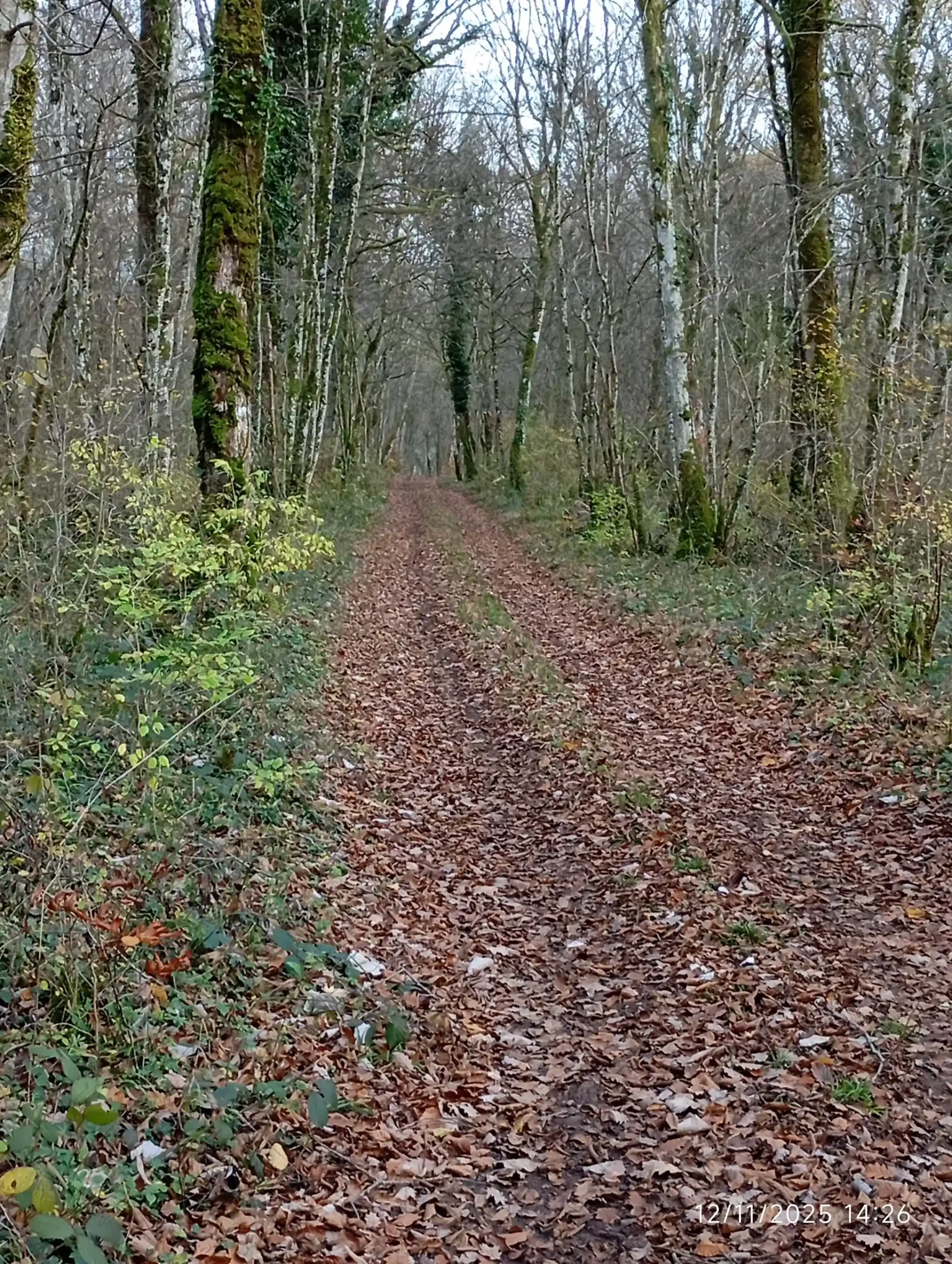 Aujourd’hui nous nous déplaçons sur un tapis de feuilles, qui amorti le ressenti sur le sol mais cache les roches de surface et peut entraîner des chutes, la prudence de chacun a évité les chutes seules quelques embardées dans les passages humides ont mis en évidence des zones humides.